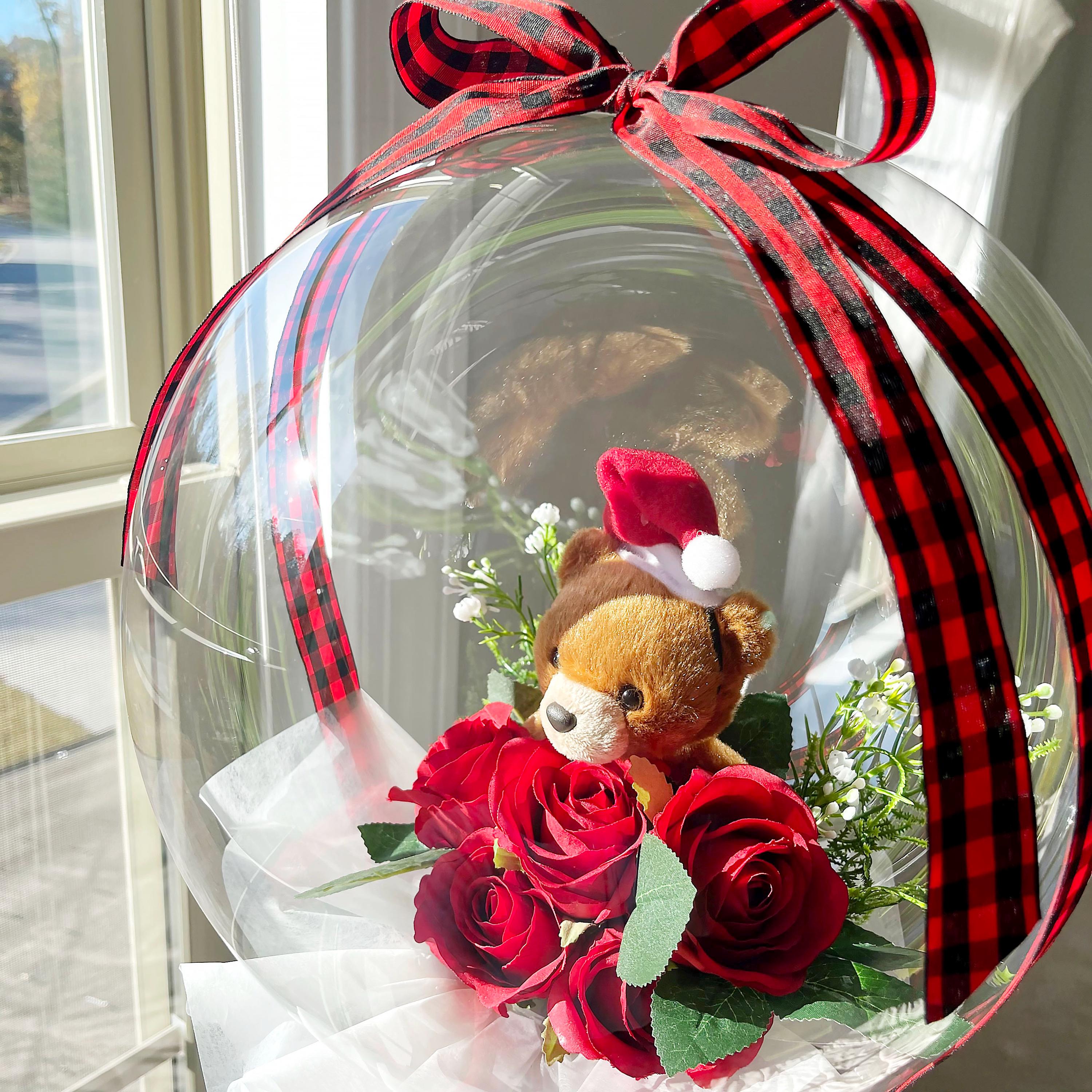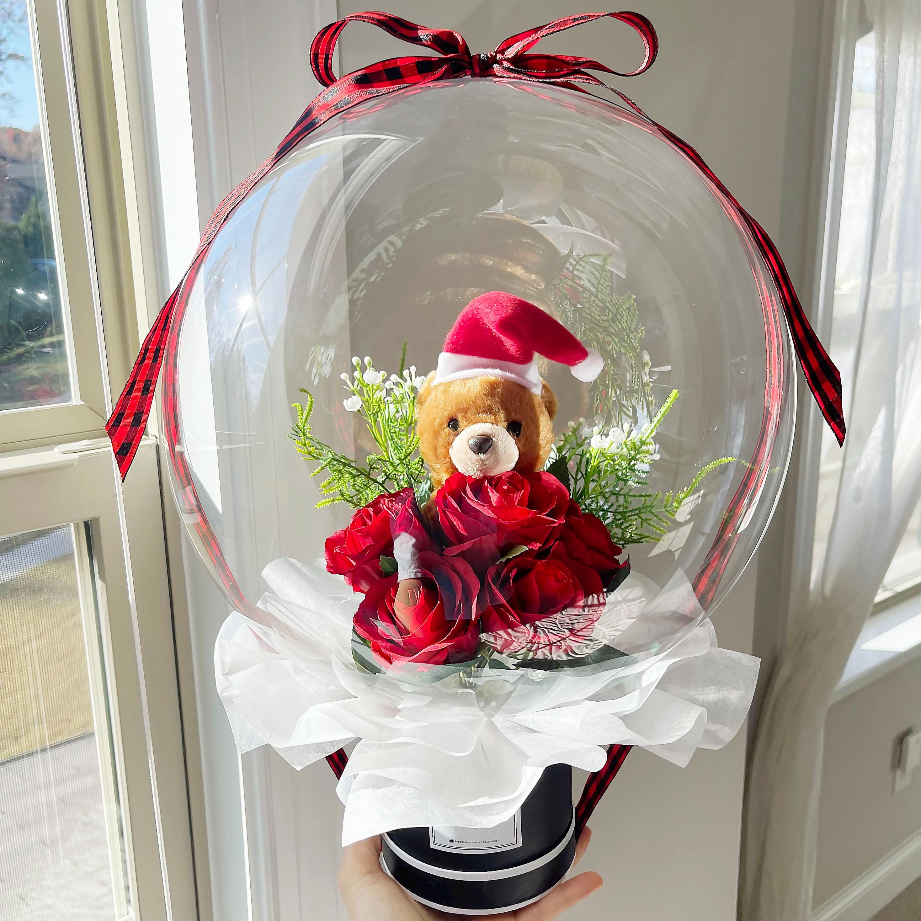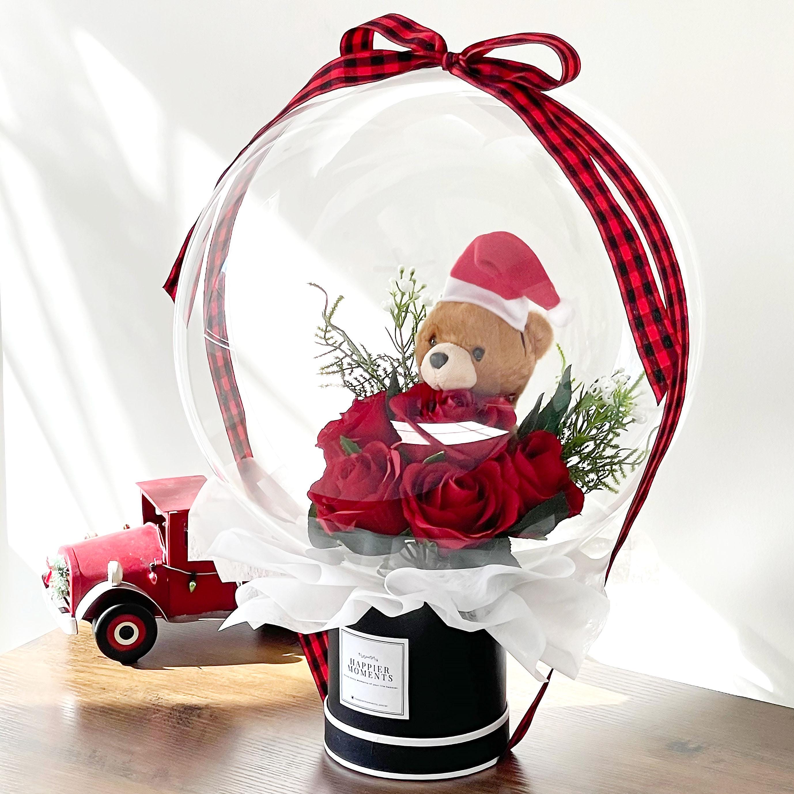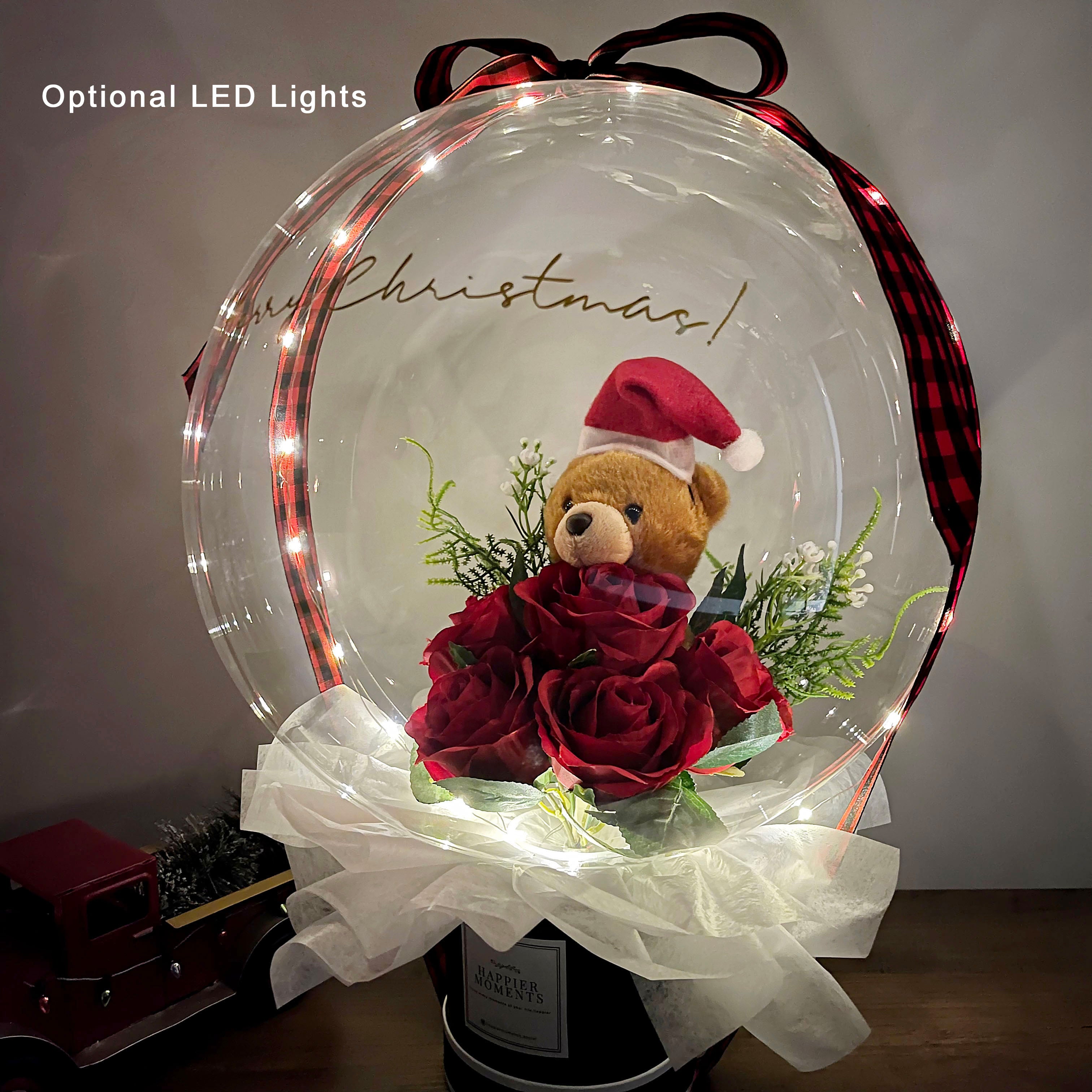 Christmas Teddy Bear Rose Flower Bobo Balloon Bouquet White Box | Christmas Gift, Personalized Gift