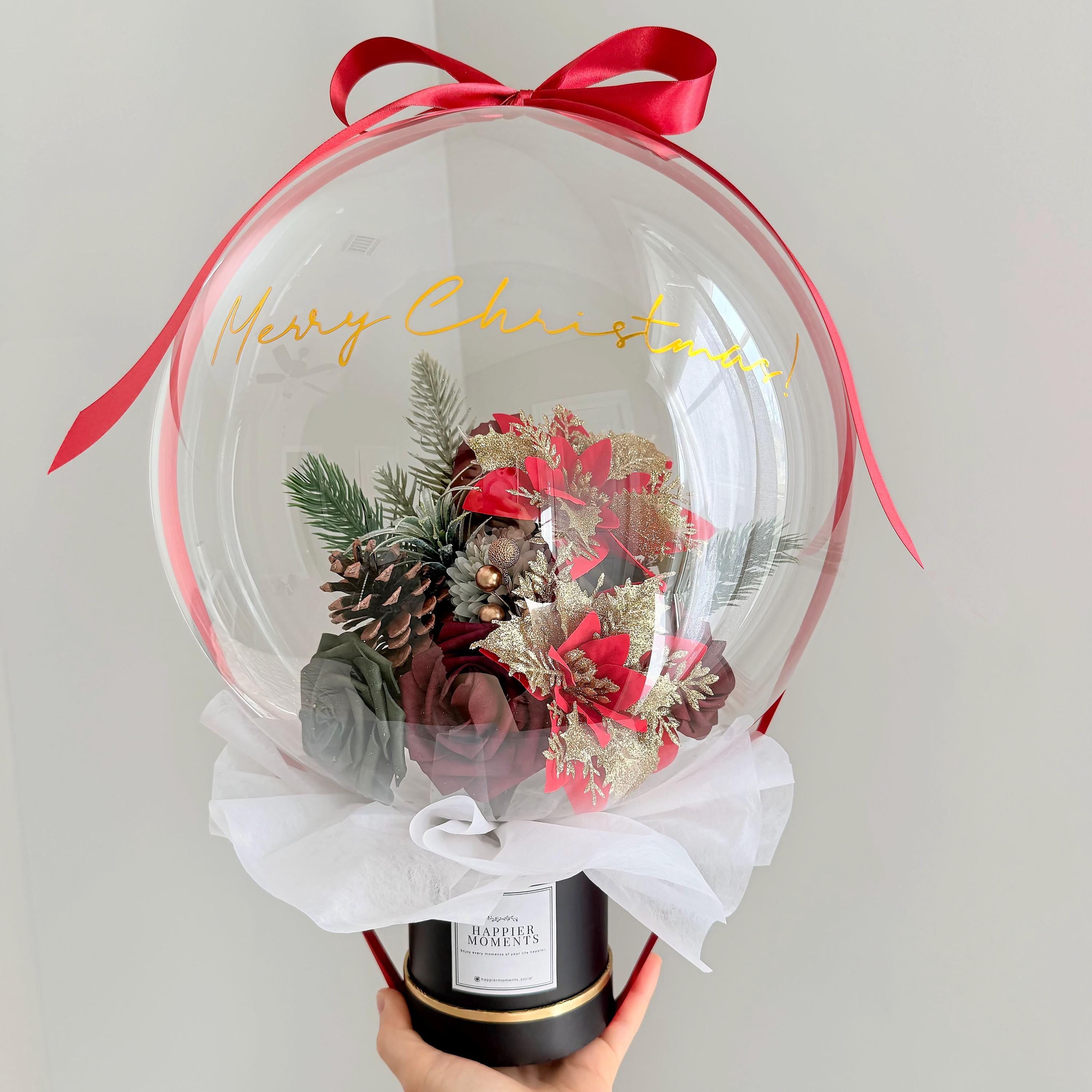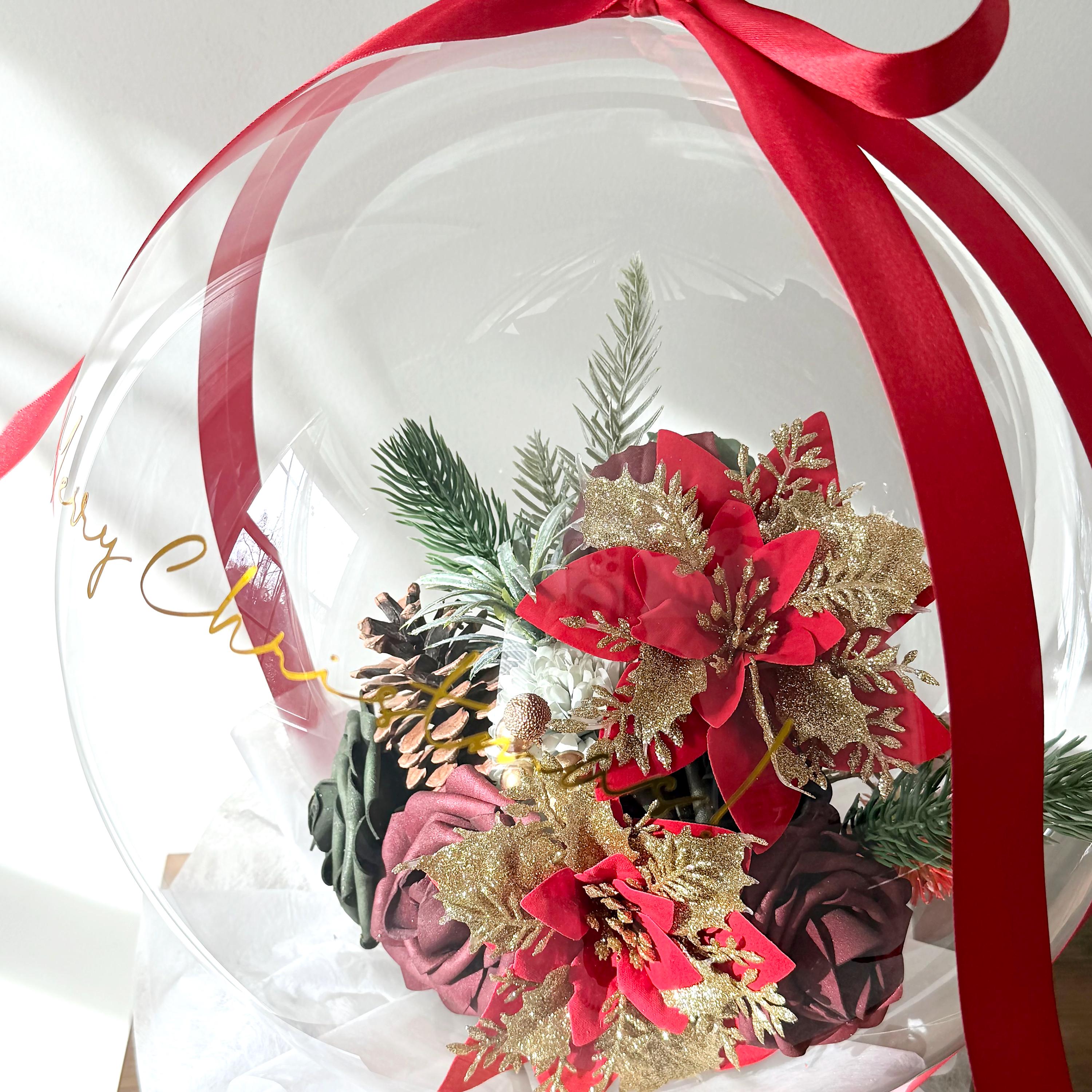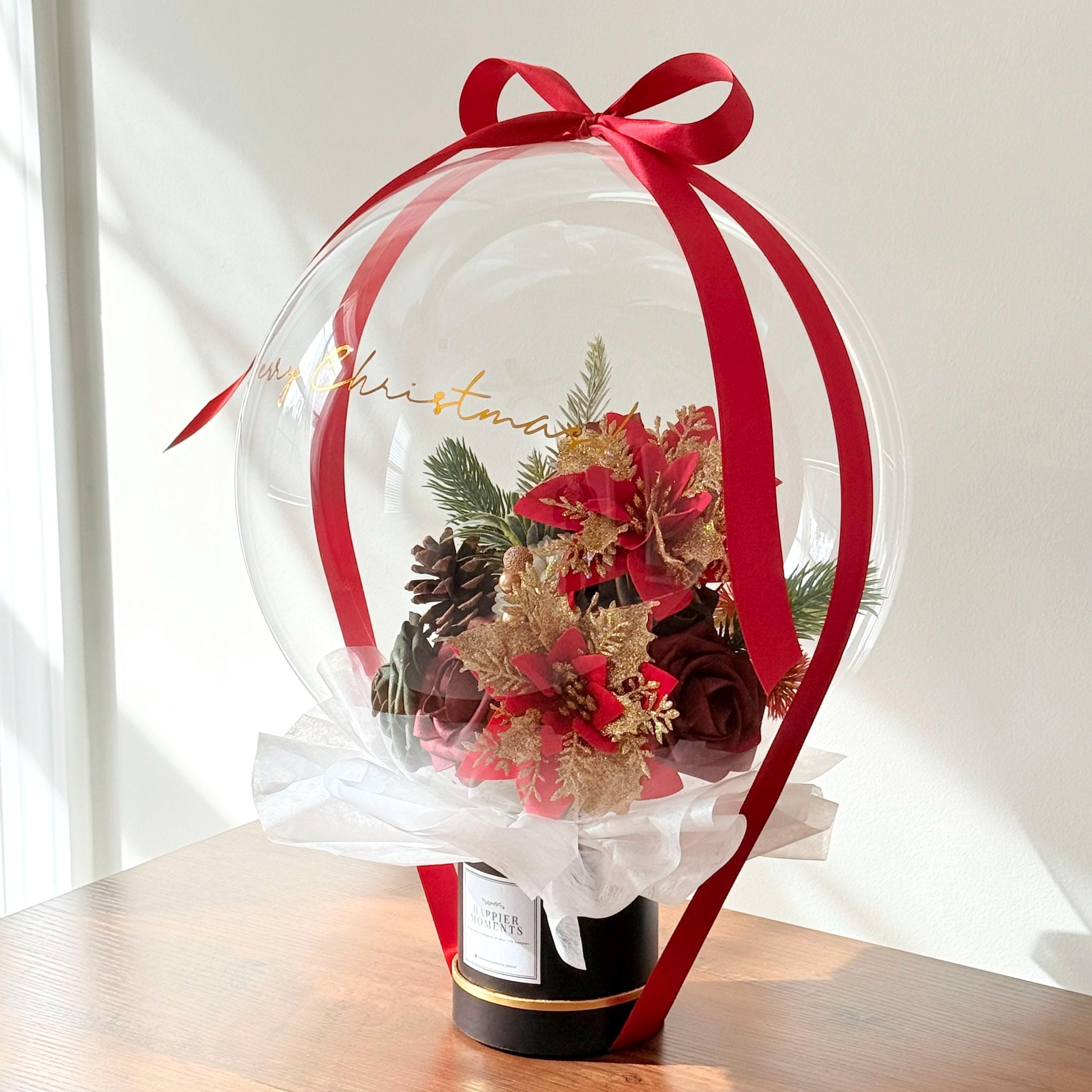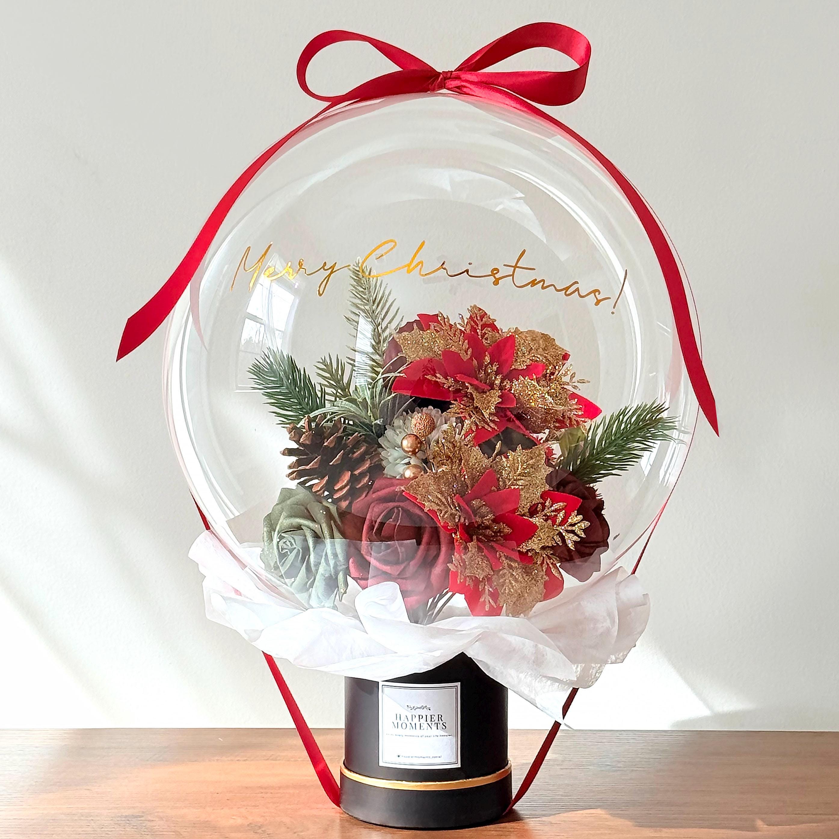 Christmas Red Assorted Flower Balloon Bouquet Gift Box | Birthday Mother's Day Valentine's Day Bridal Shower Baby Shower Anniversary Gift