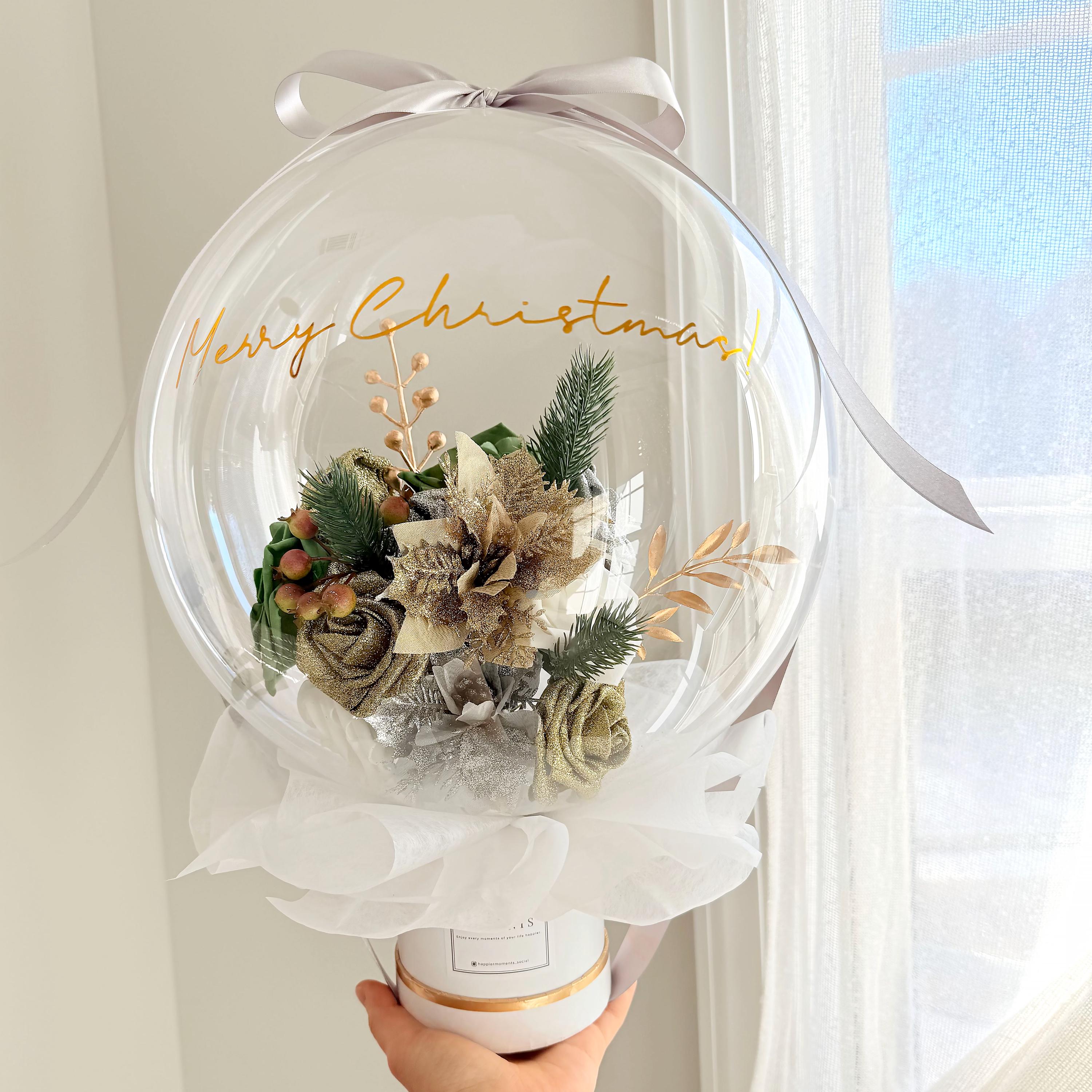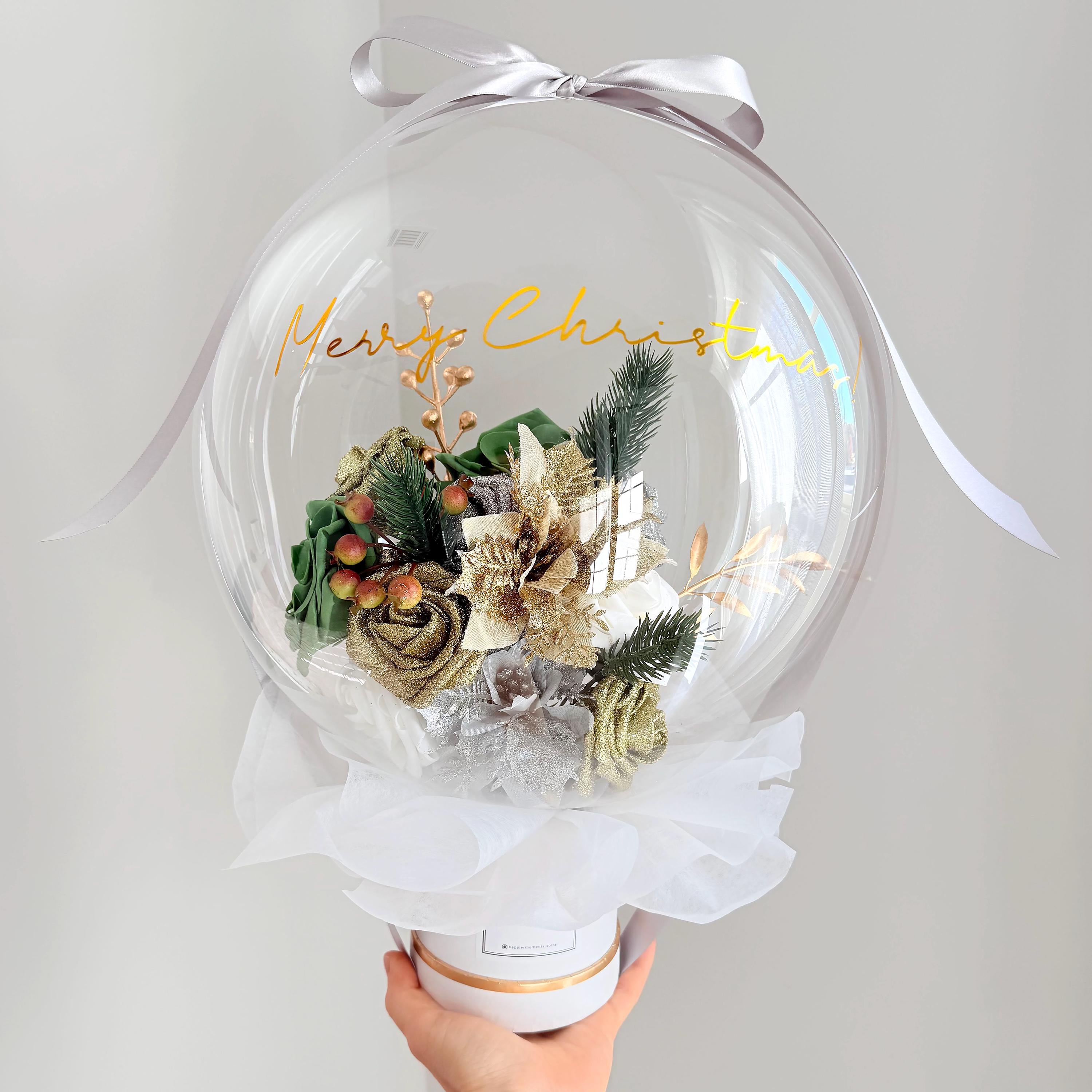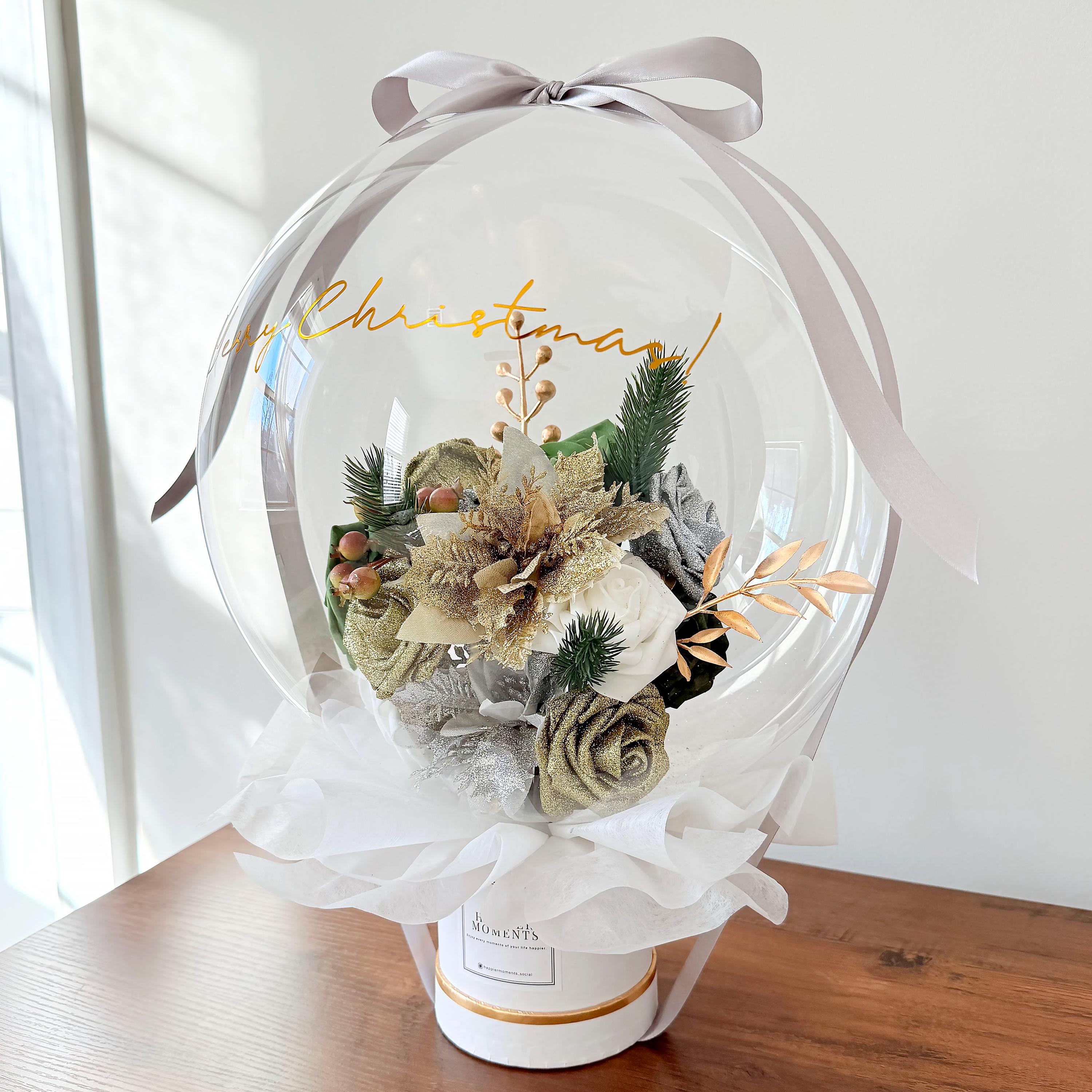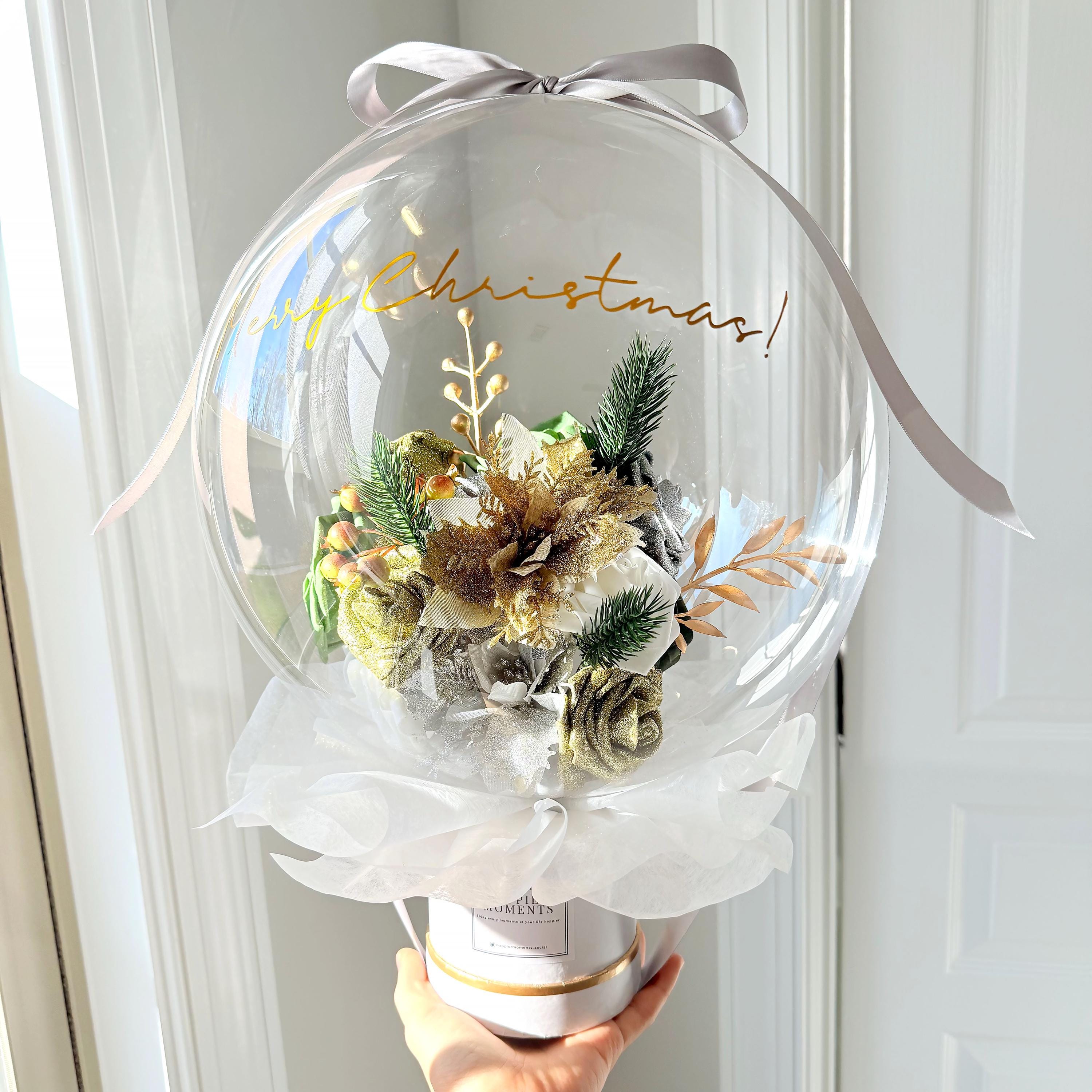 Christmas Silver Assorted Flower Balloon Bouquet Gift Box | Birthday Mother's Day Valentine's Day Bridal Shower Baby Shower Anniversary Gift