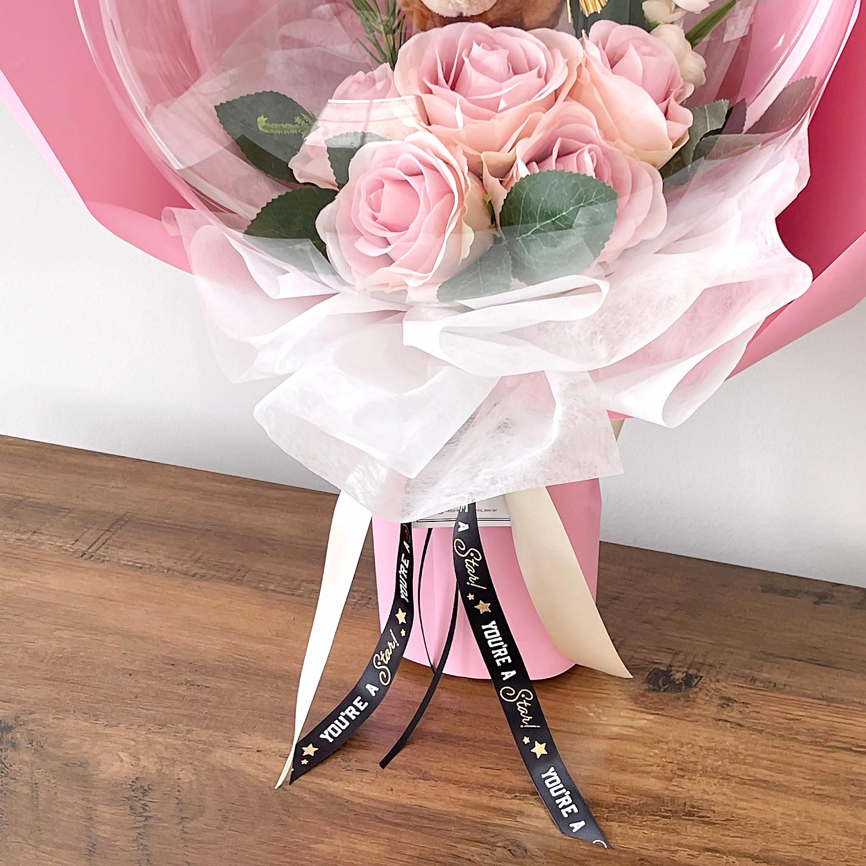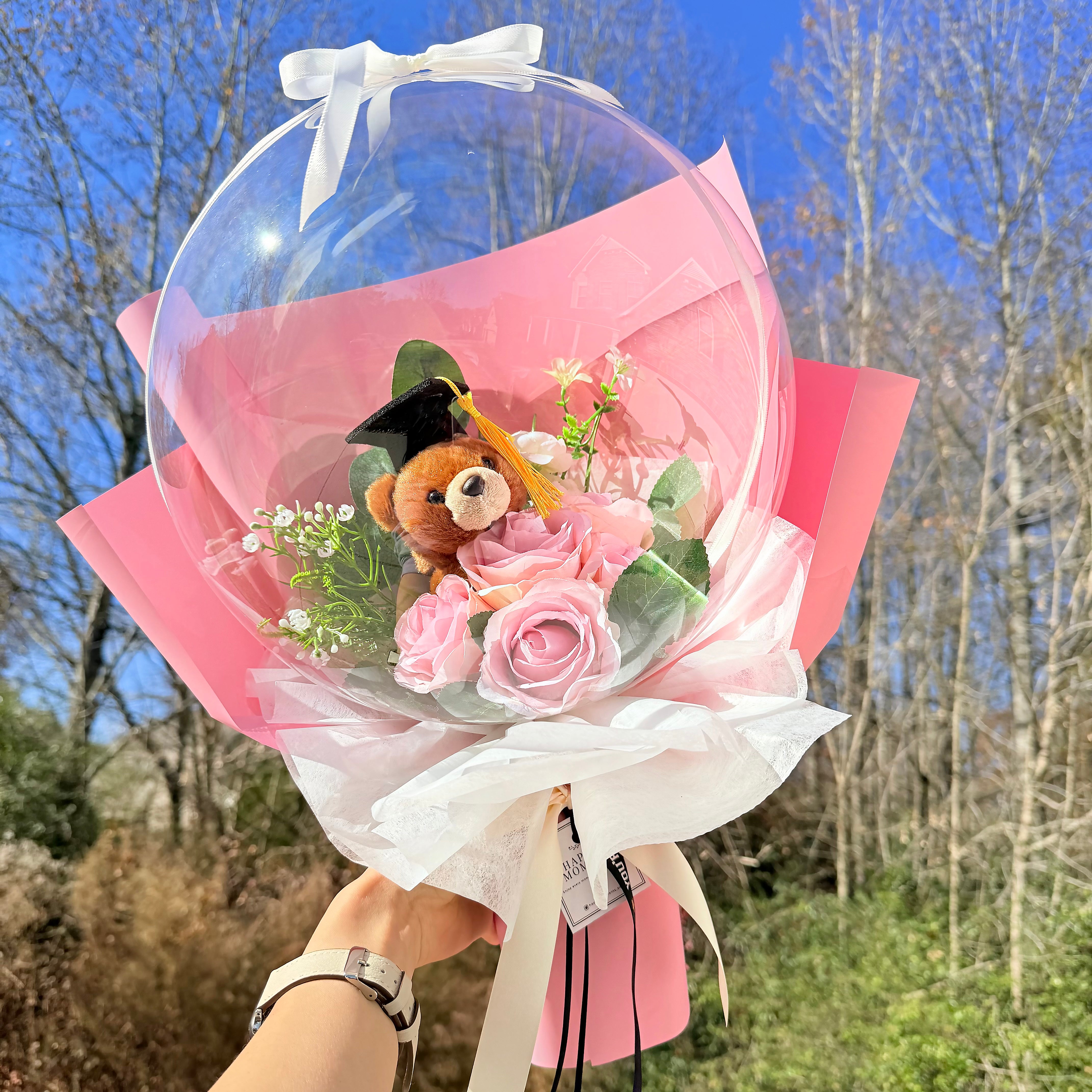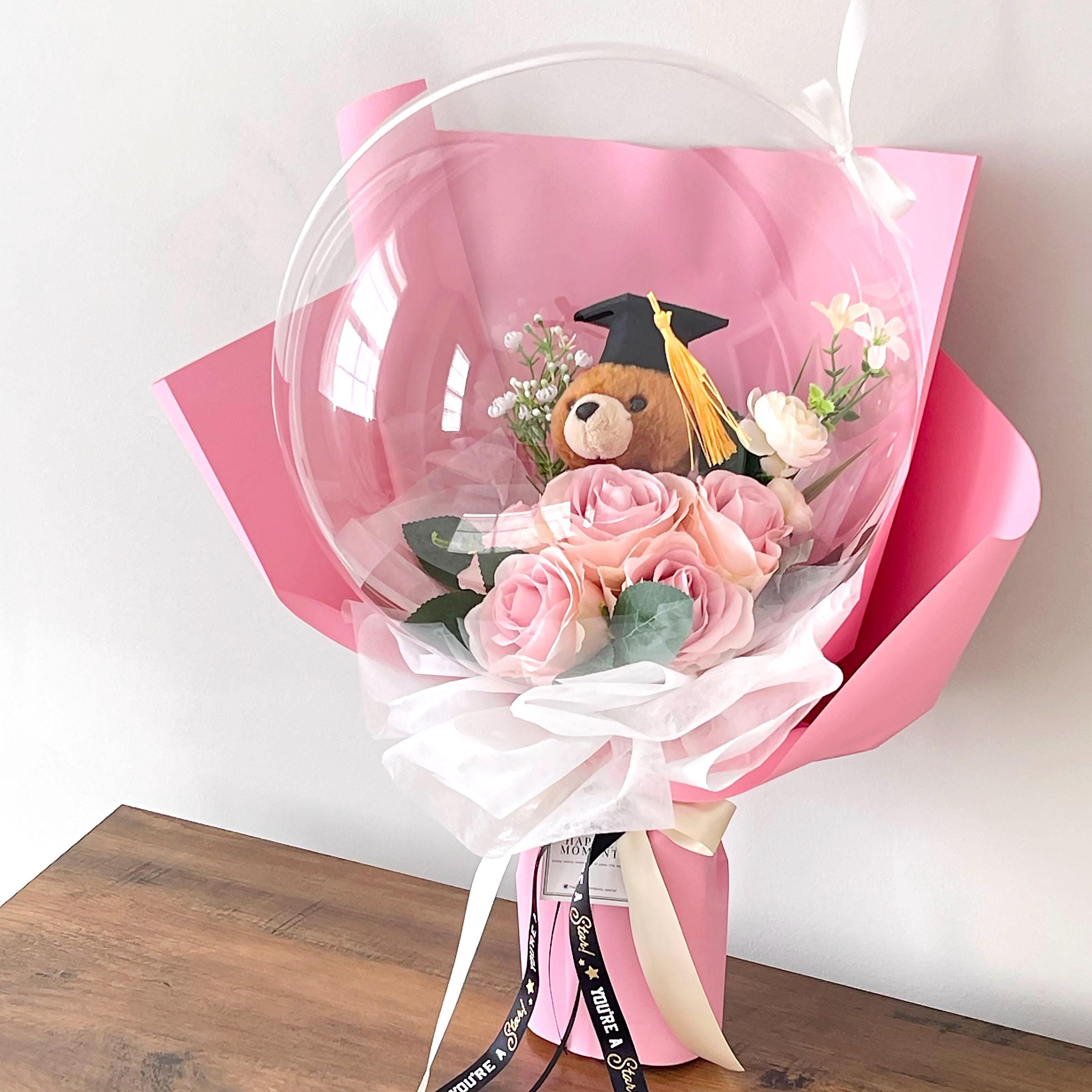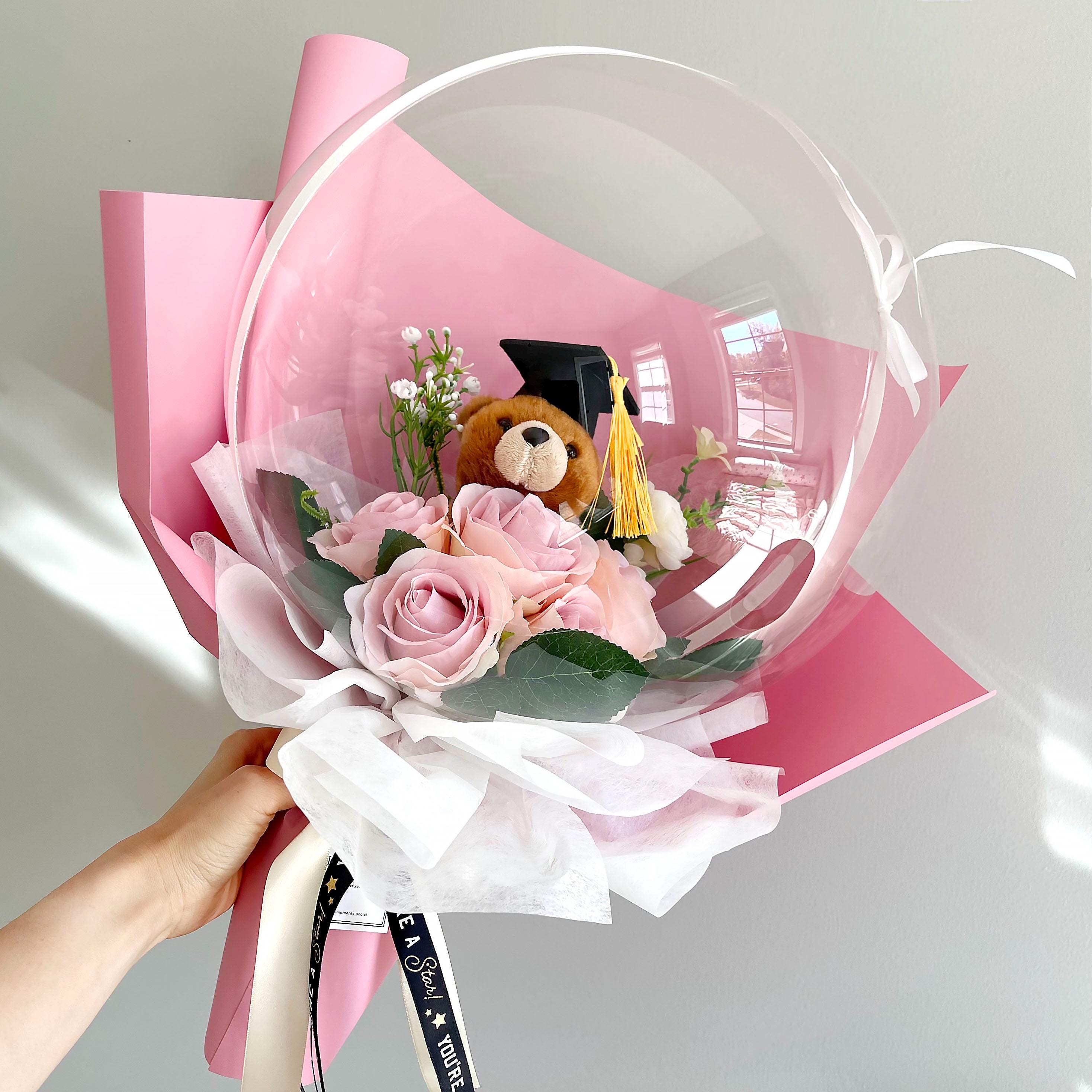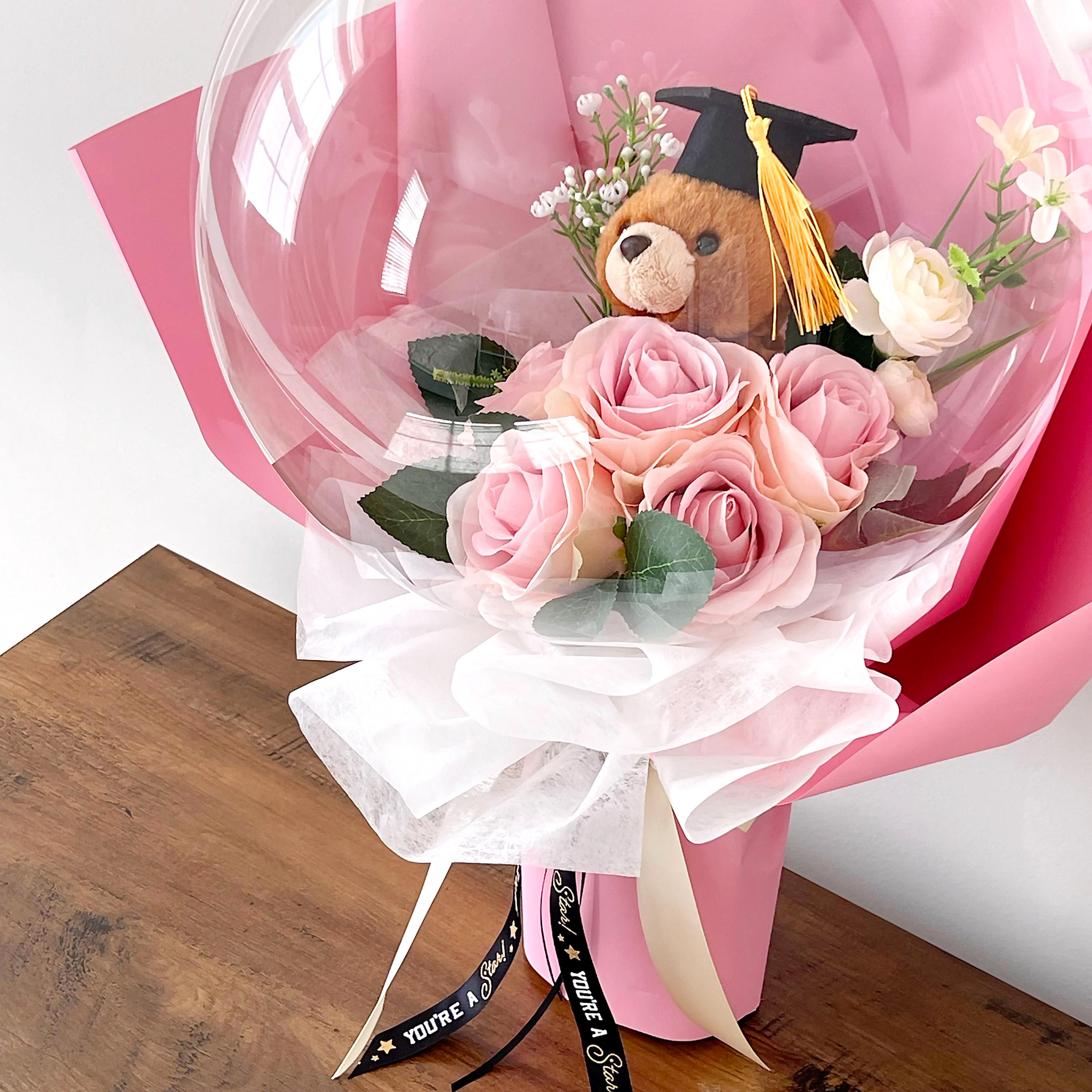 Graduation Teddy Bear Pink Rose Flower Balloon Bouquet Pink Wrapping paper | Birthday, Mother's Day, Valentine's Day, Anniversary Gift