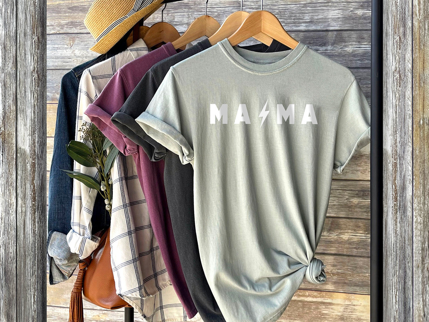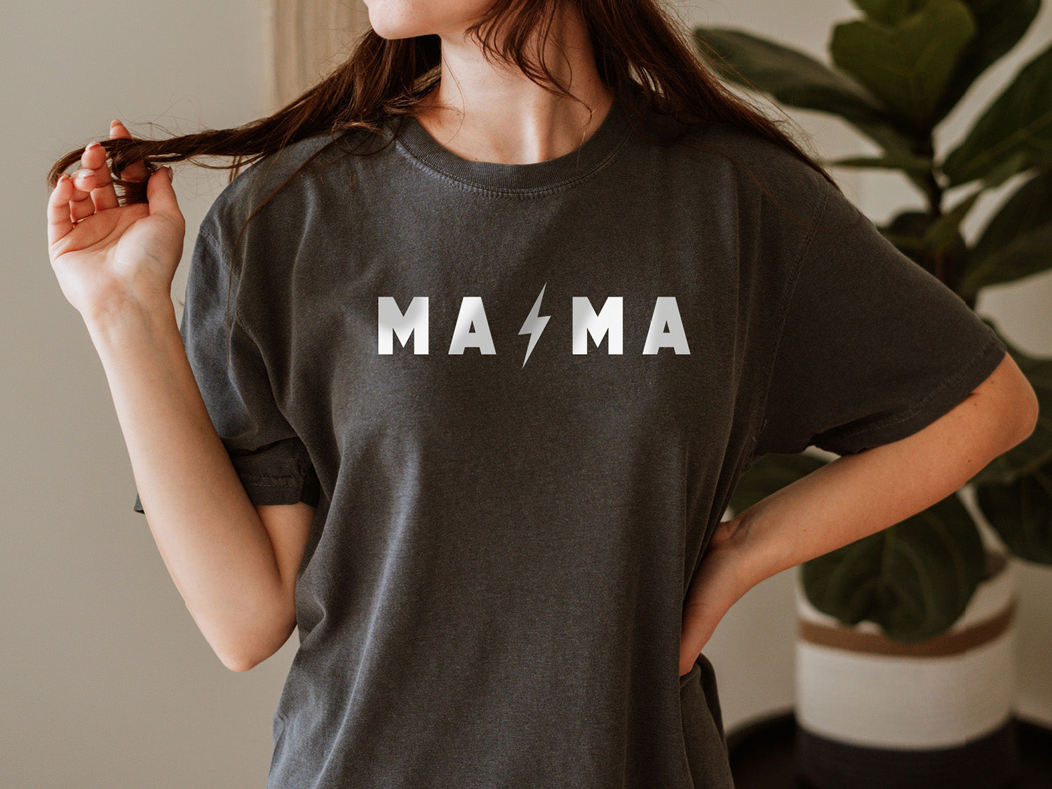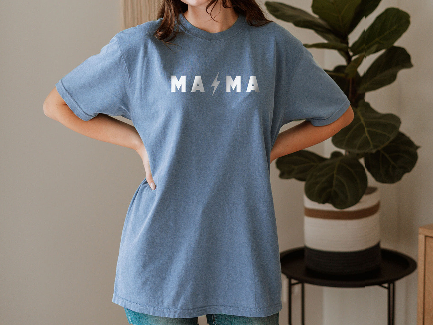 Mama Lightning Bolt T-Shirt - Minimalistic Mother Design Printed Garment Dyed Heavyweight Short Sleeve T-Shirt