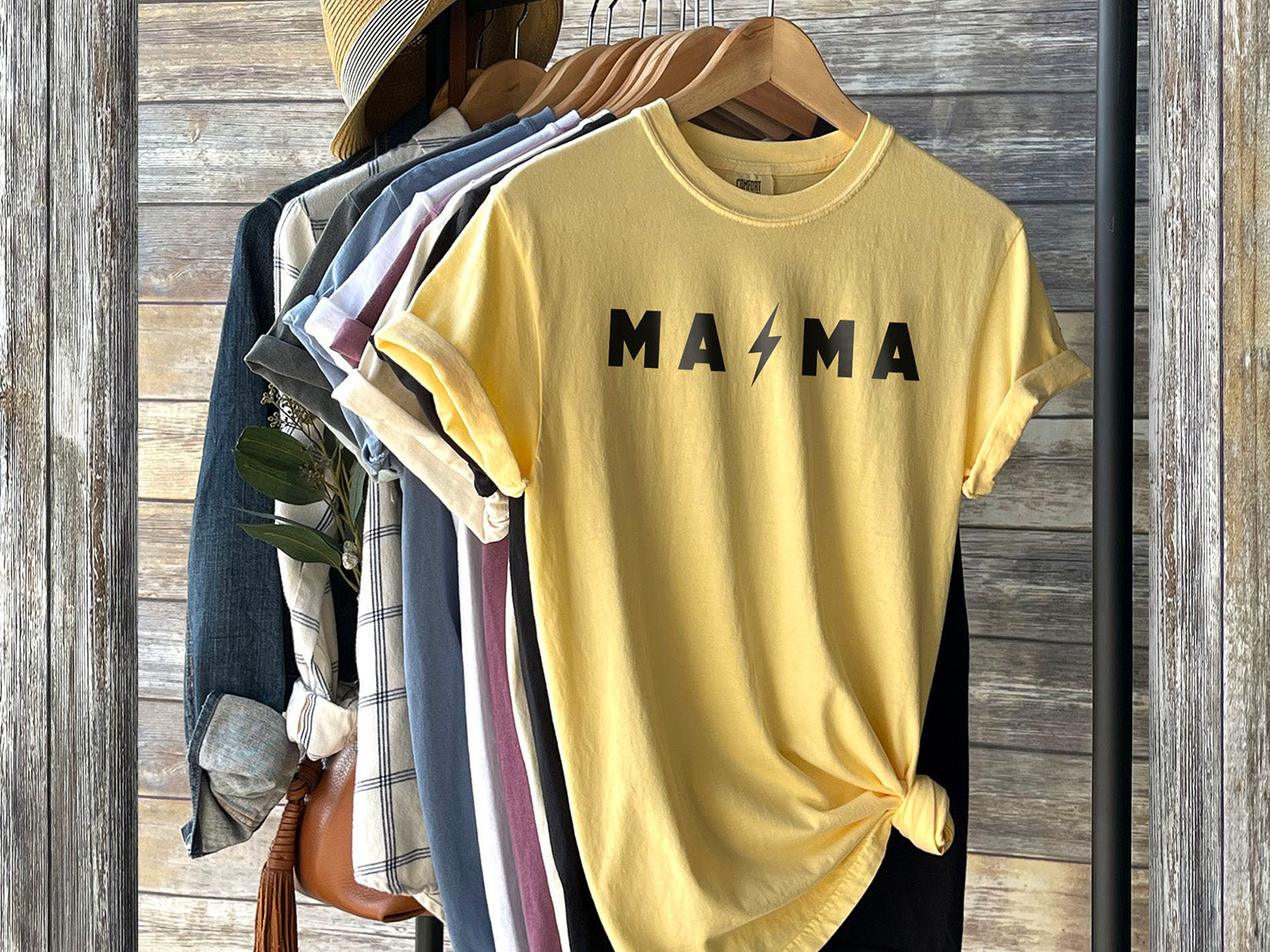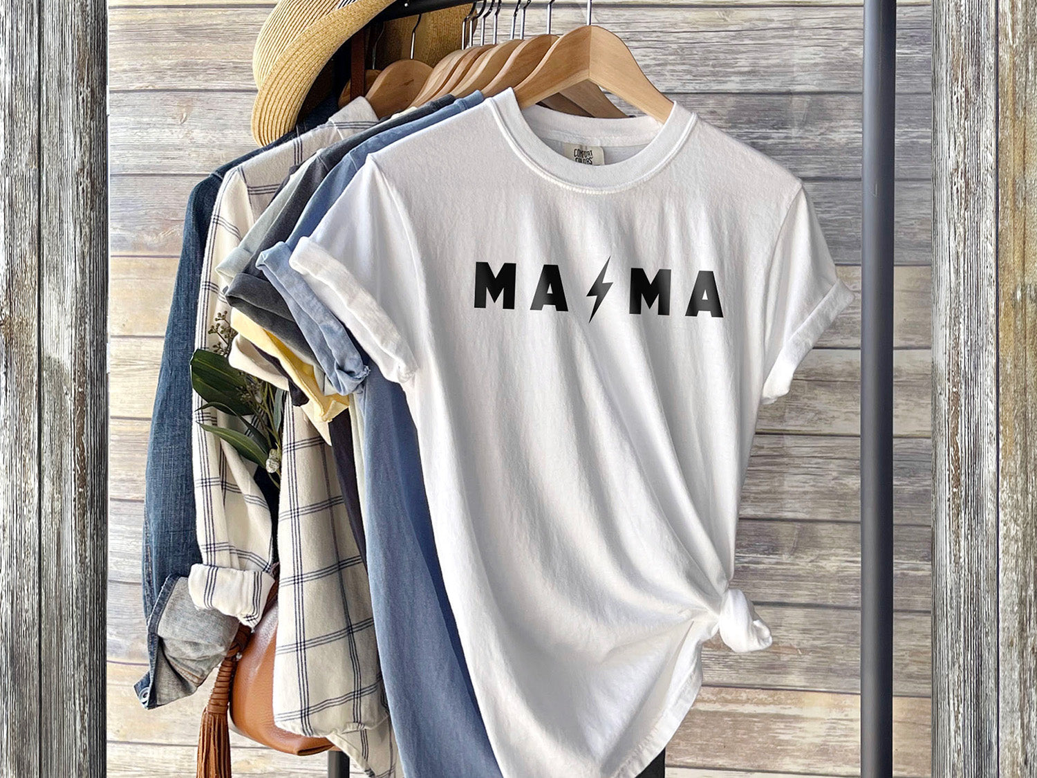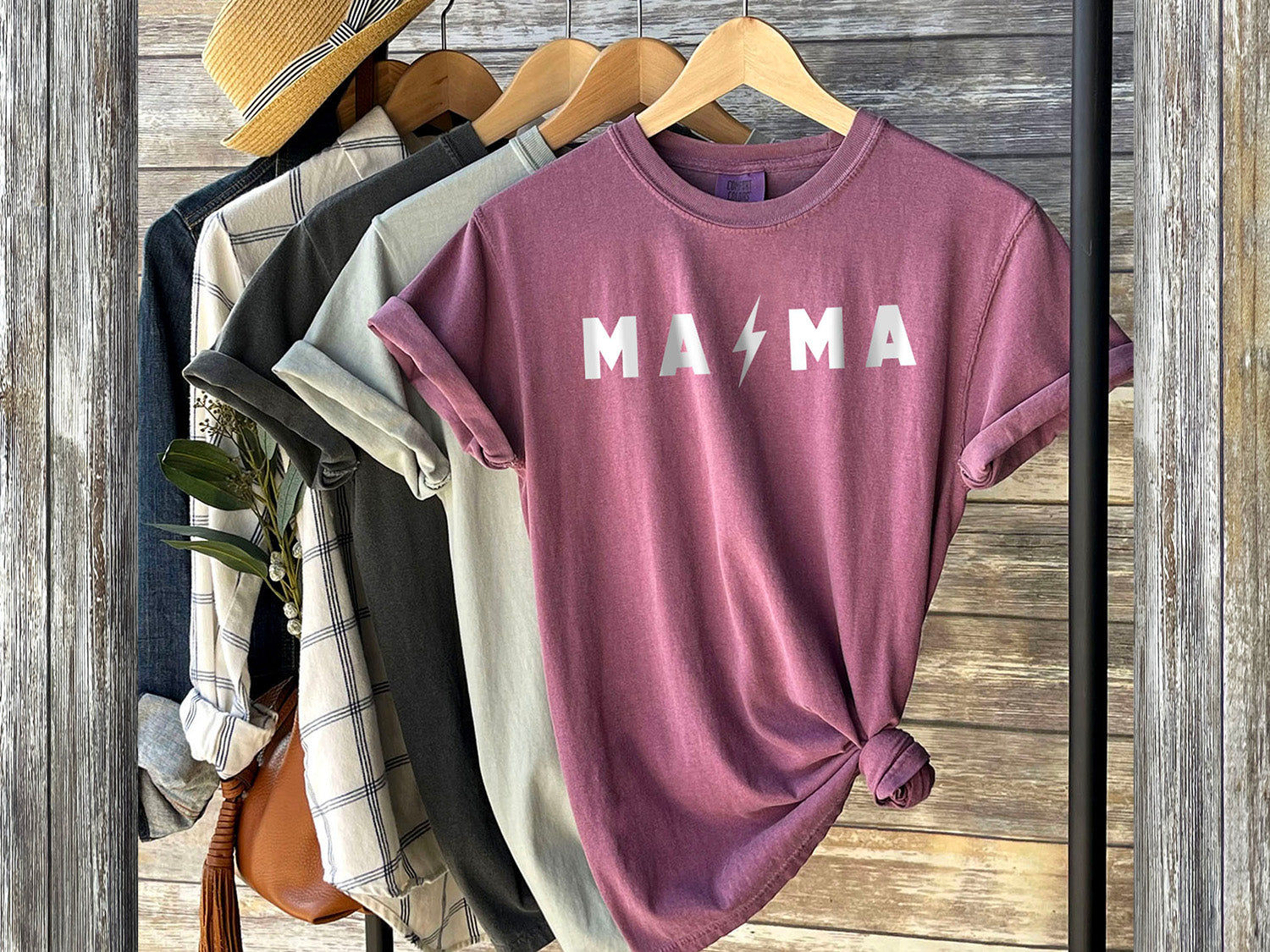 Mama Lightning Bolt T-Shirt - Minimalistic Mother Design Printed Garment Dyed Heavyweight Short Sleeve T-Shirt