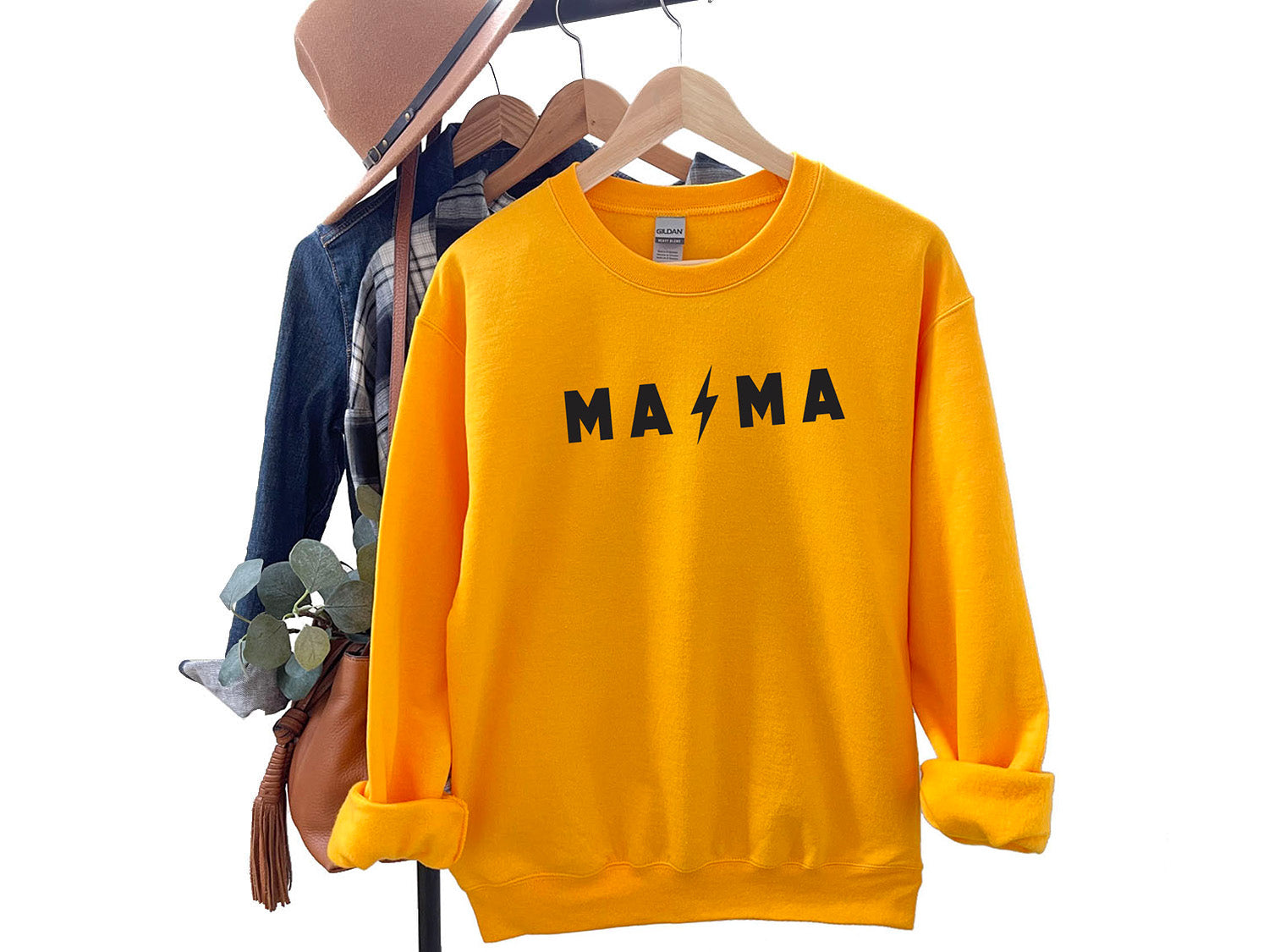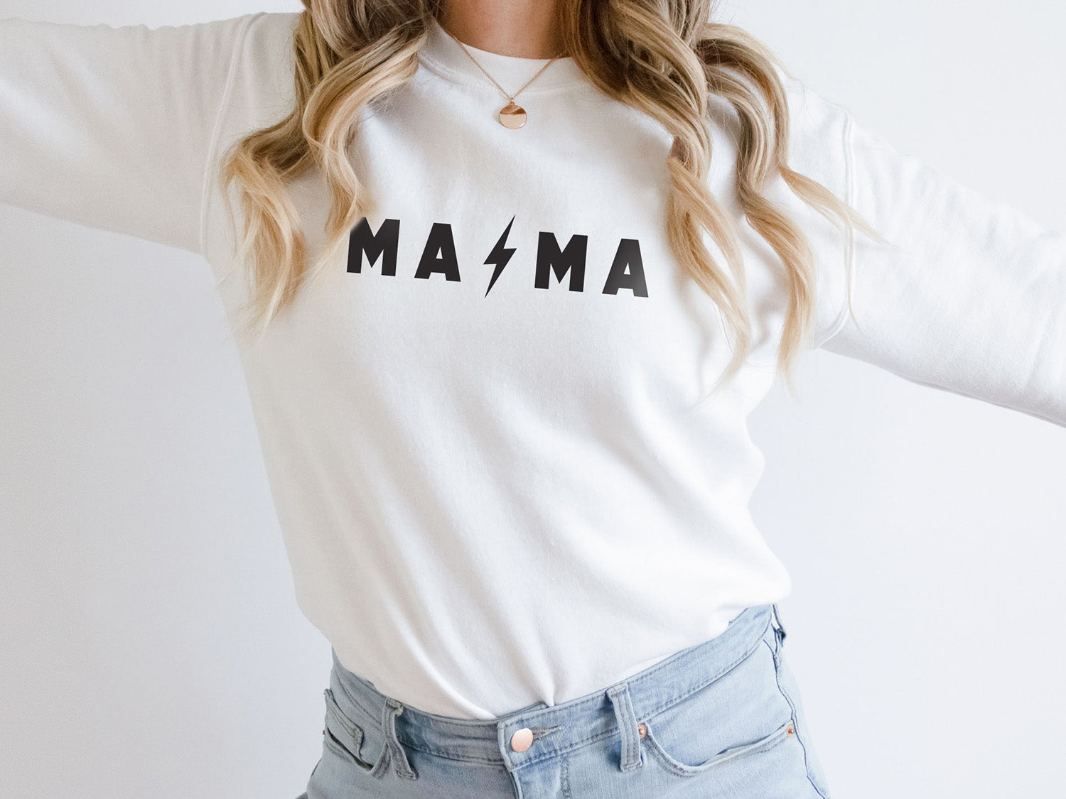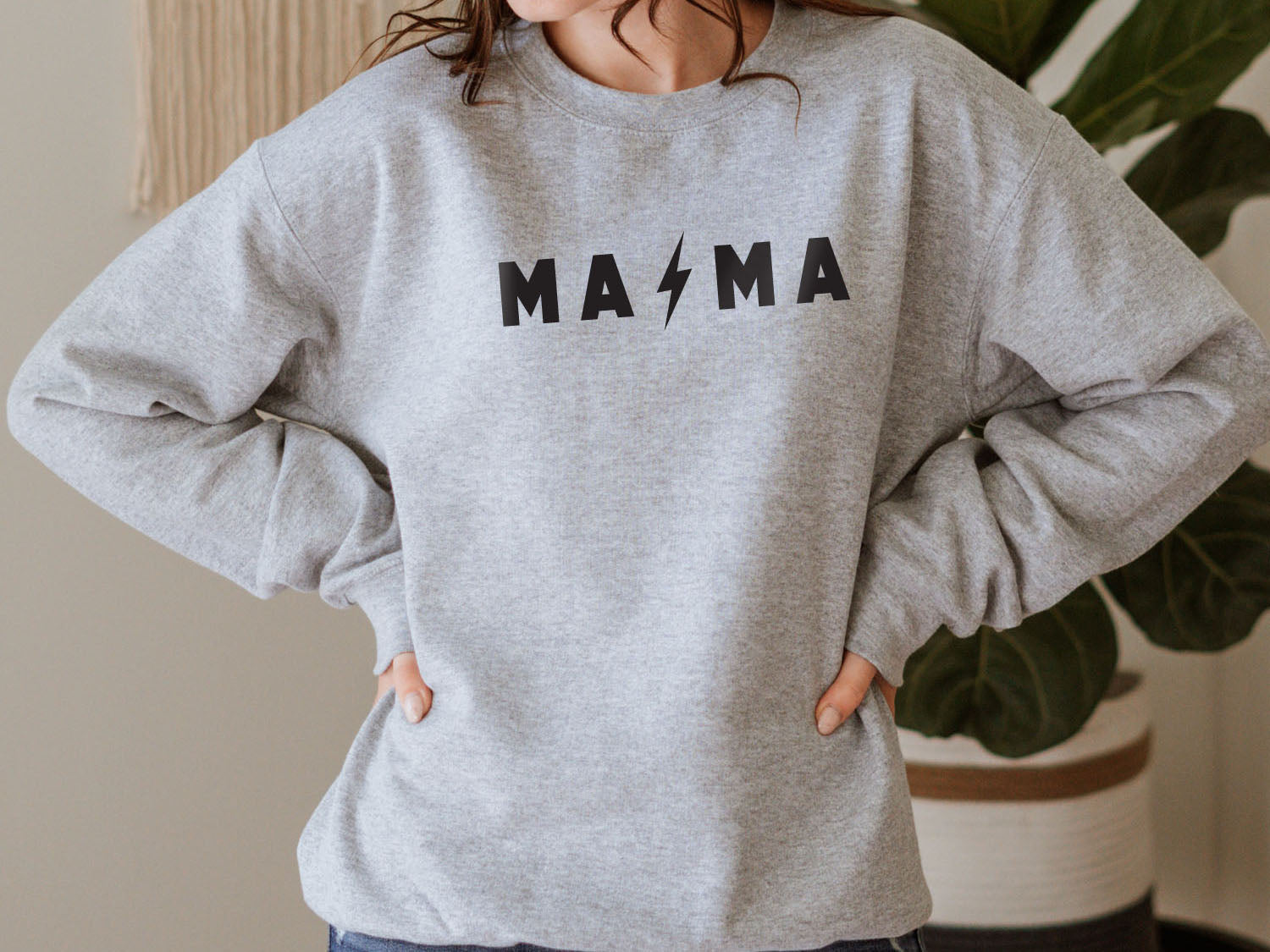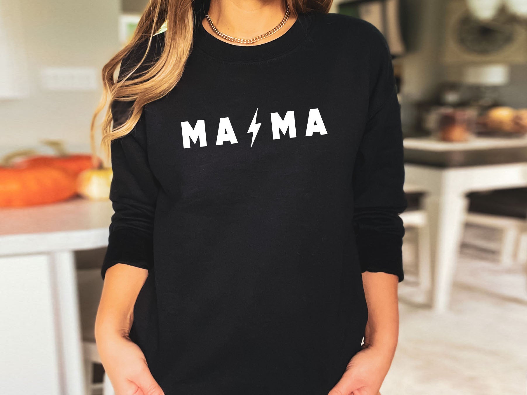 Mama Lightning Bolt Sweatshirt - Funny MOM Design Printed Sweatshirt