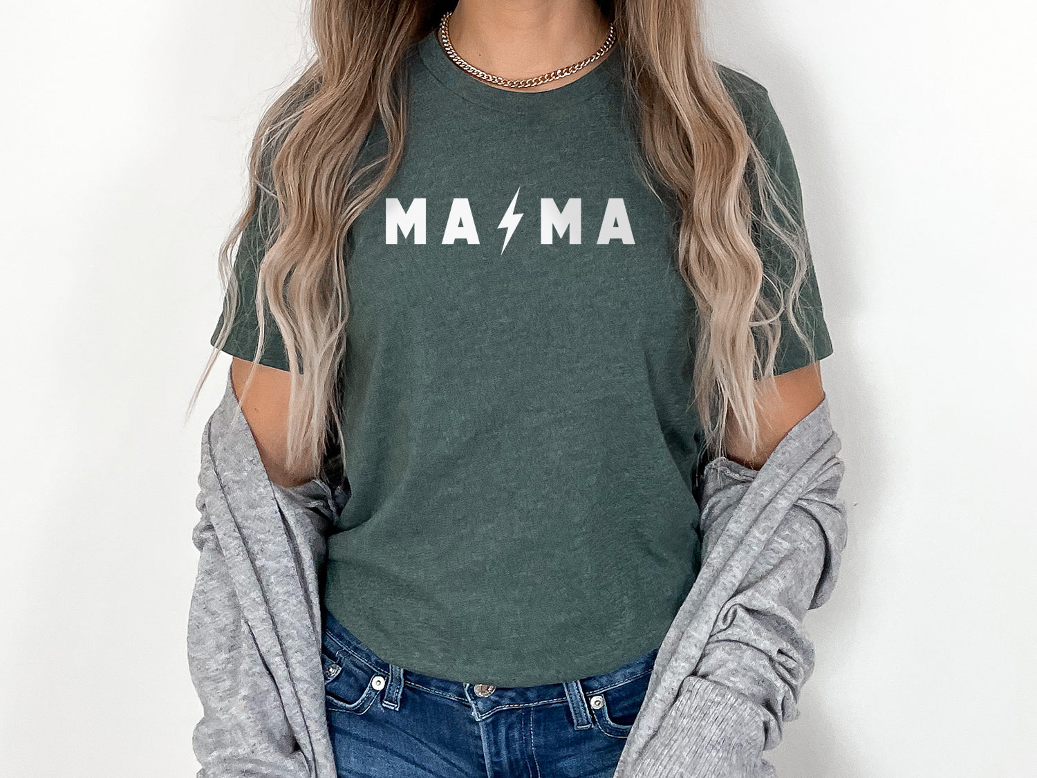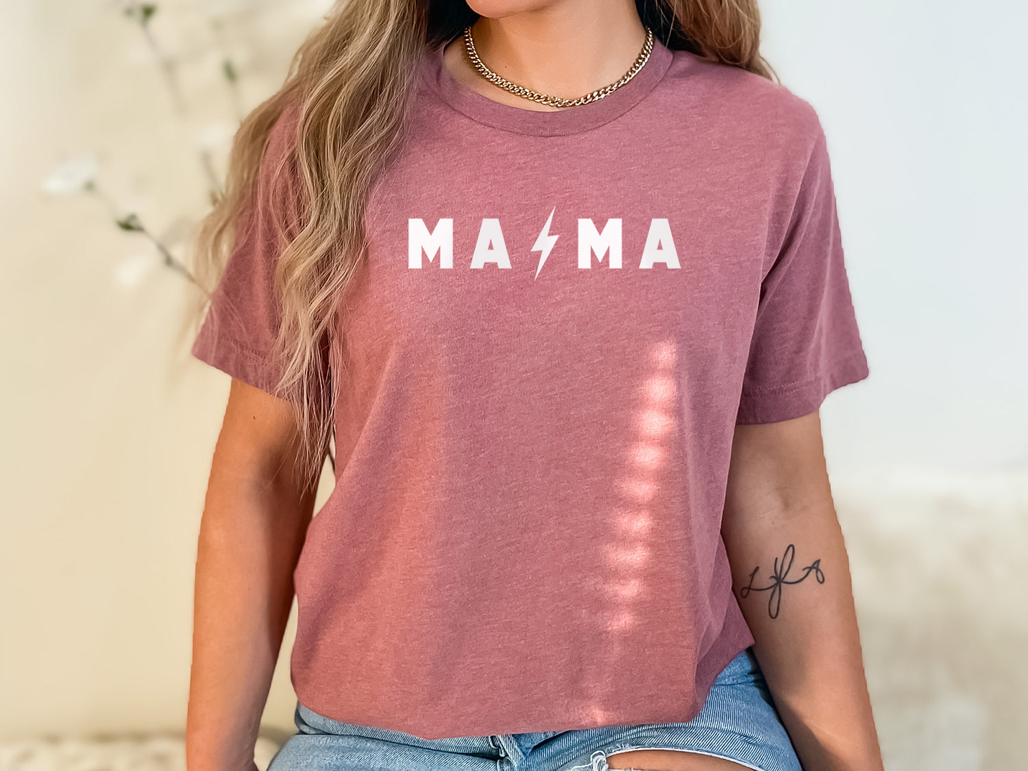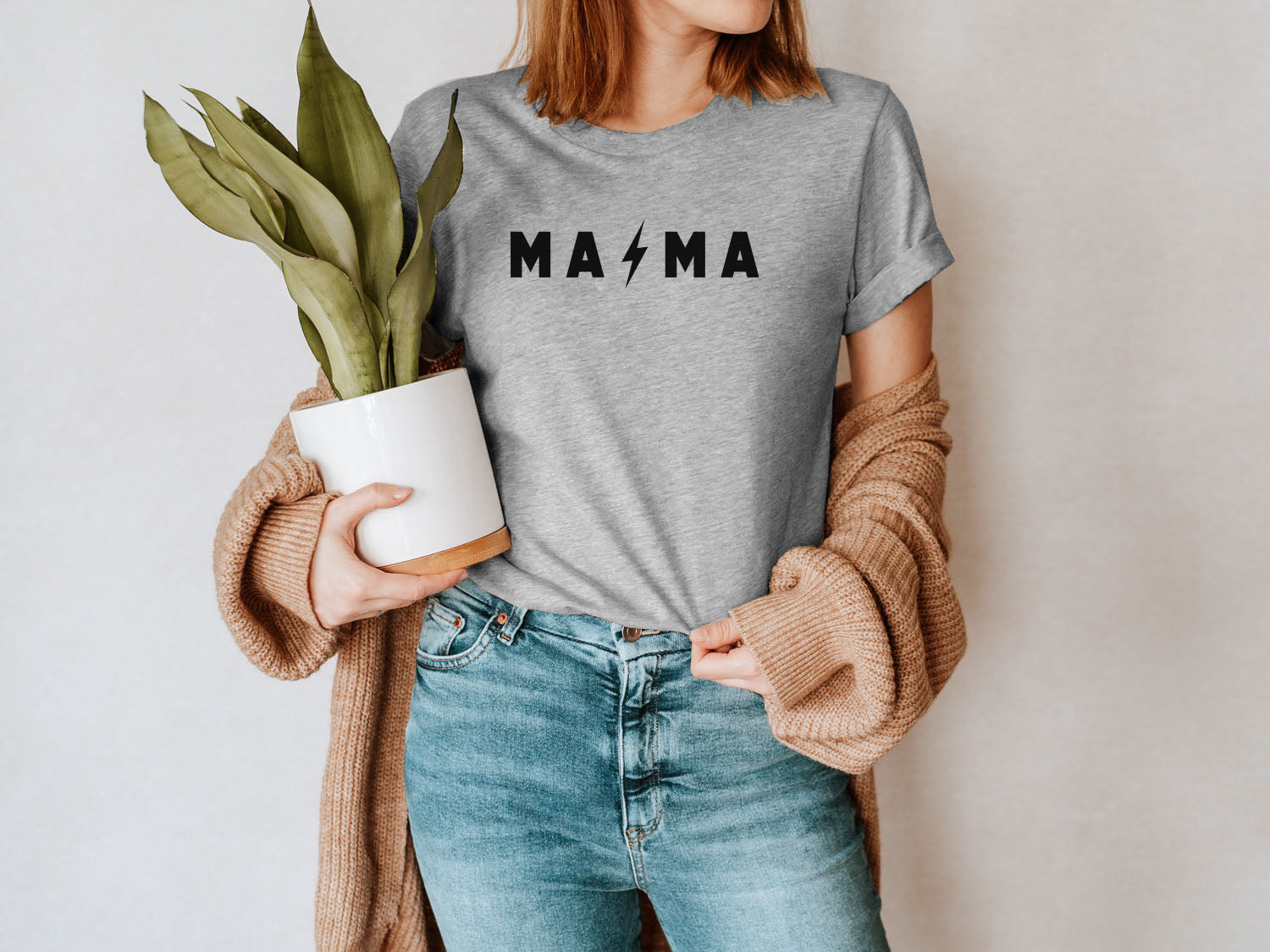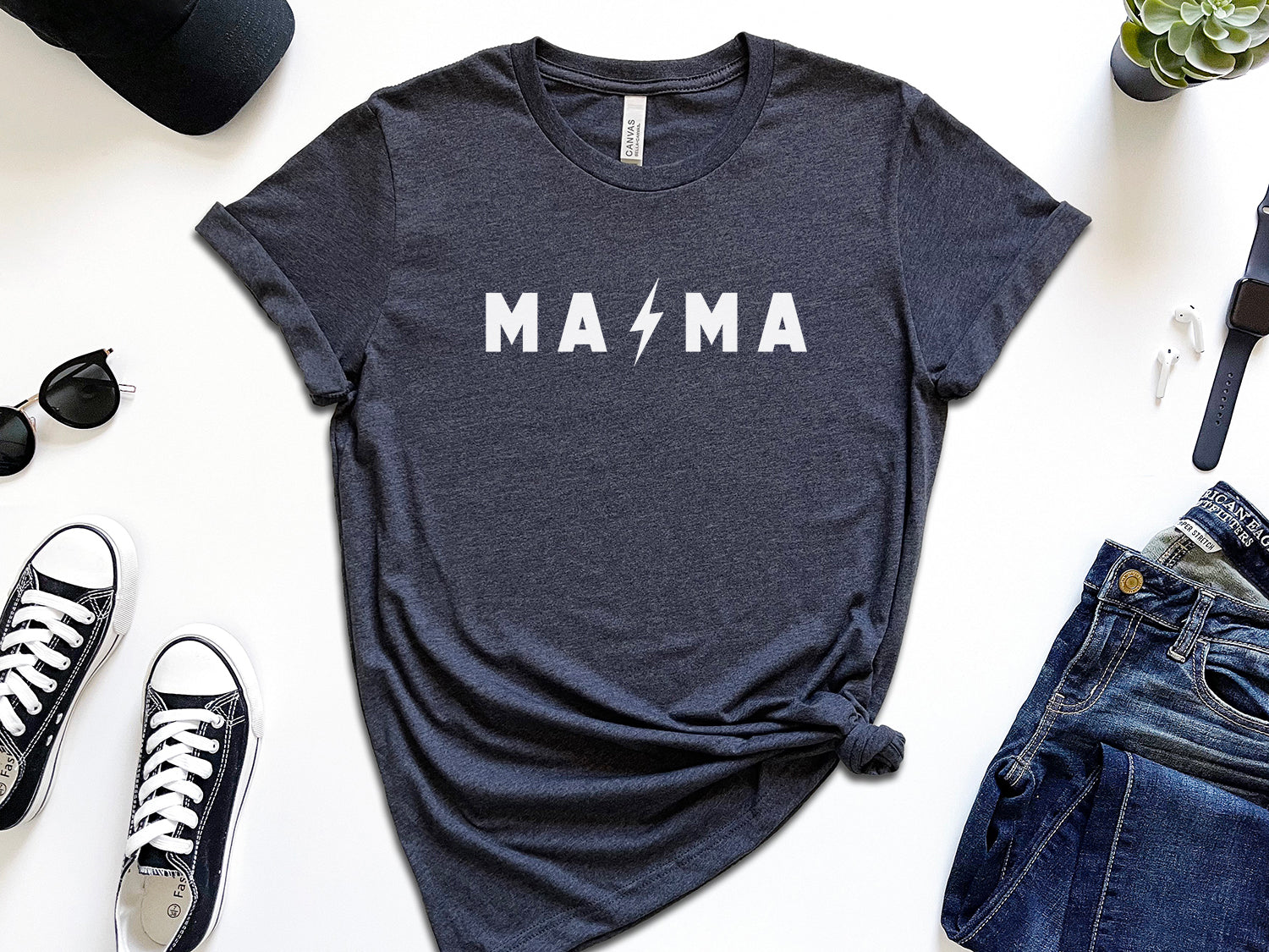 Mama Lightning Bolt T-Shirt - Minimalistic Mother Design Printed Short Sleeve T-Shirt