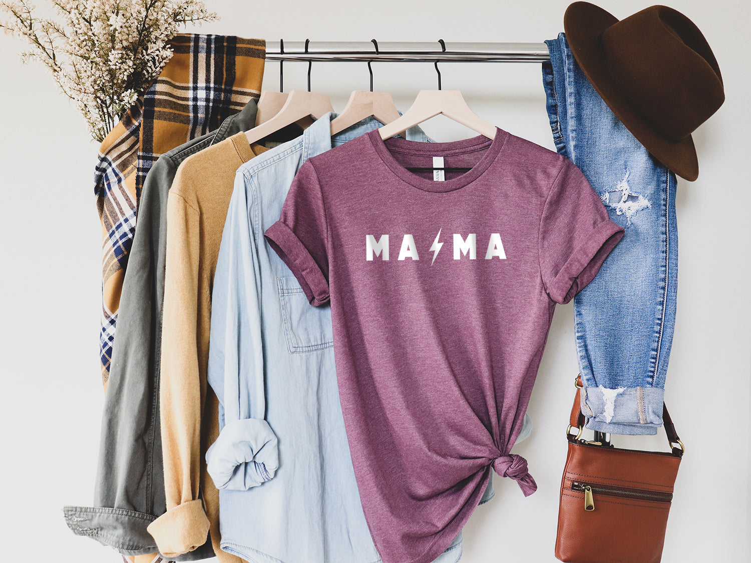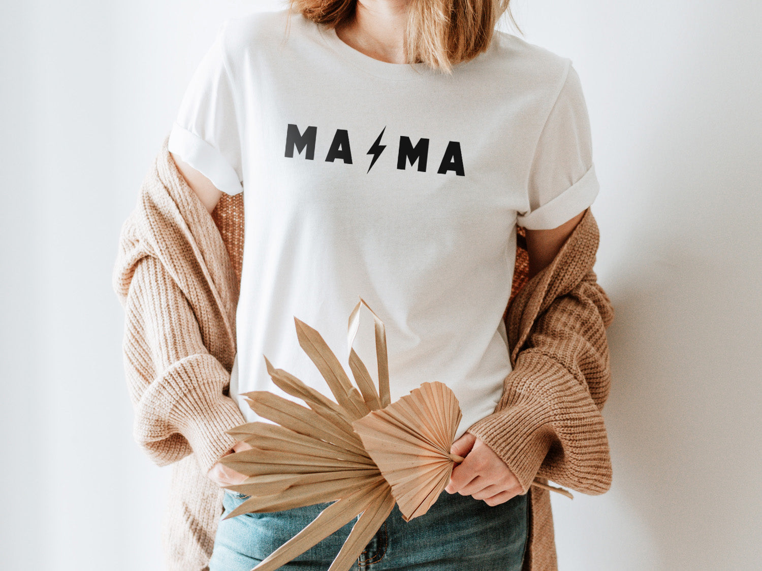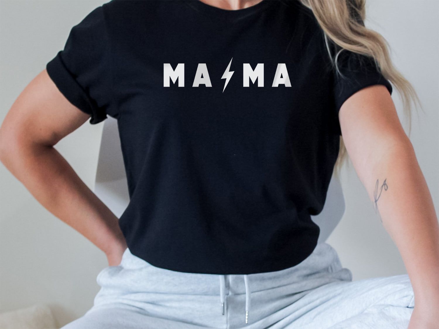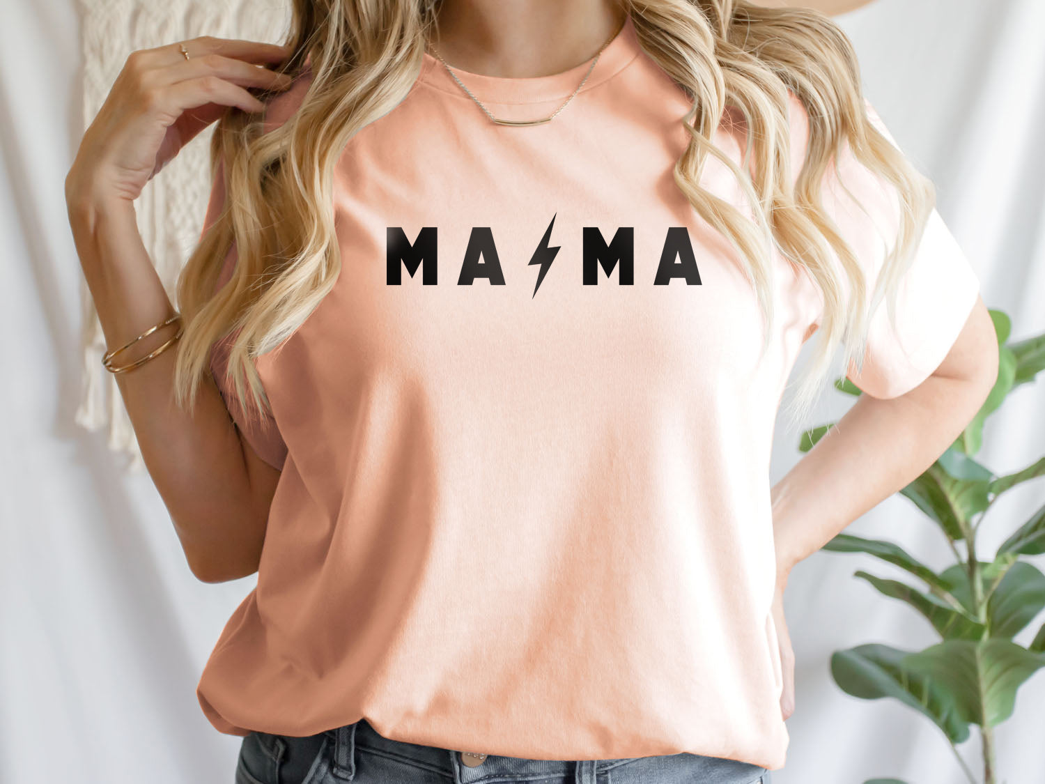 Mama Lightning Bolt T-Shirt - Minimalistic Mother Design Printed Short Sleeve T-Shirt