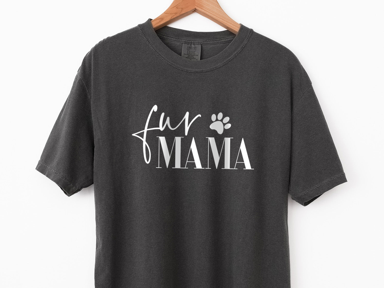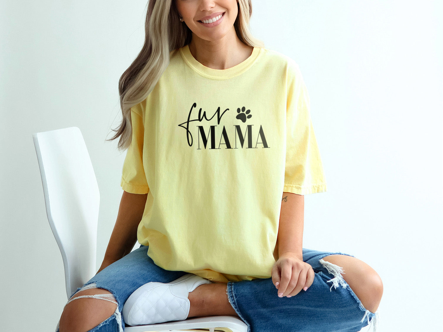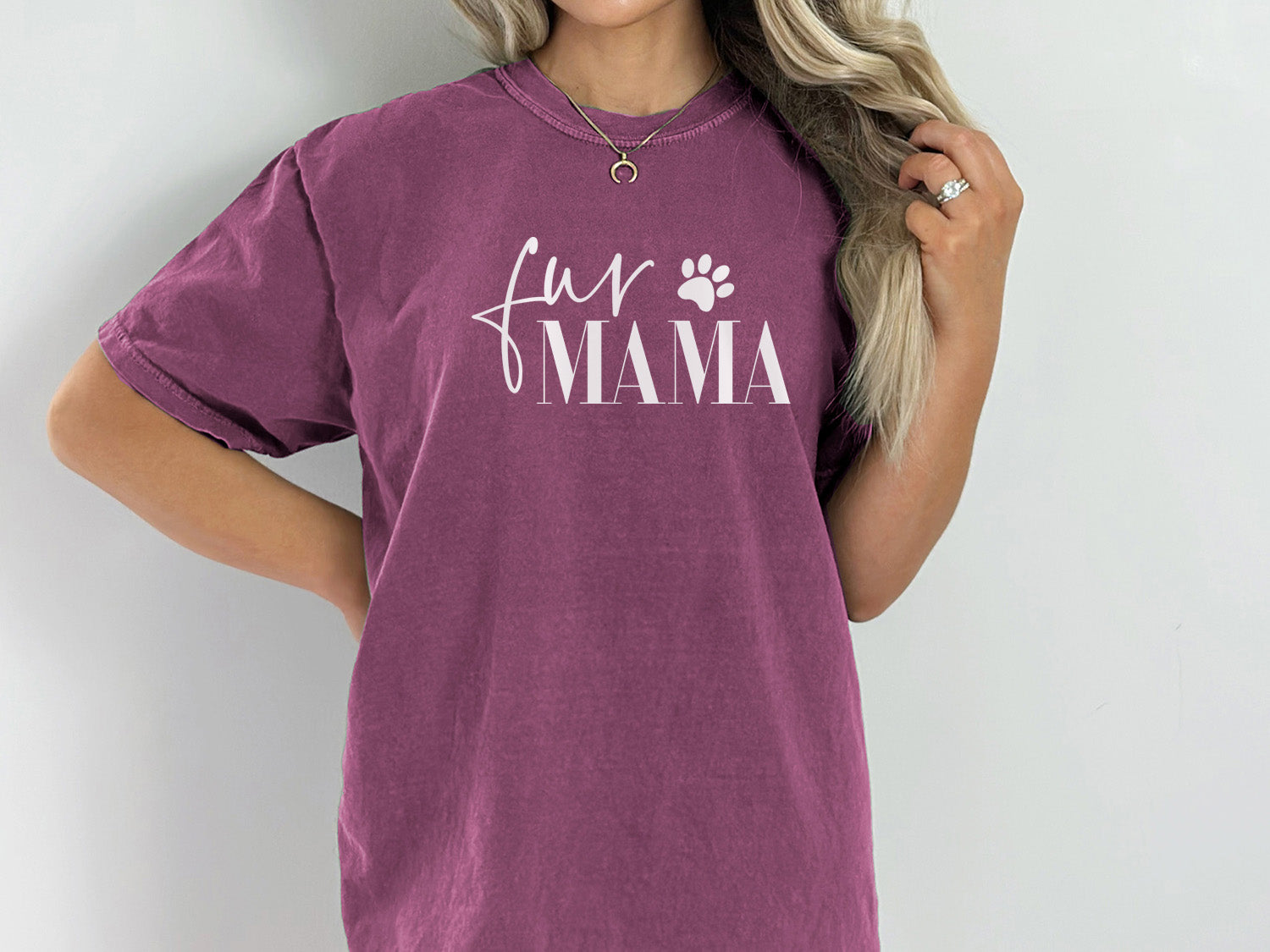Fur Mama With Paw T-shirt - Fun Pet Love Minimal Design Printed Garment Dyed Heavyweight Short Sleeve T-Shirt