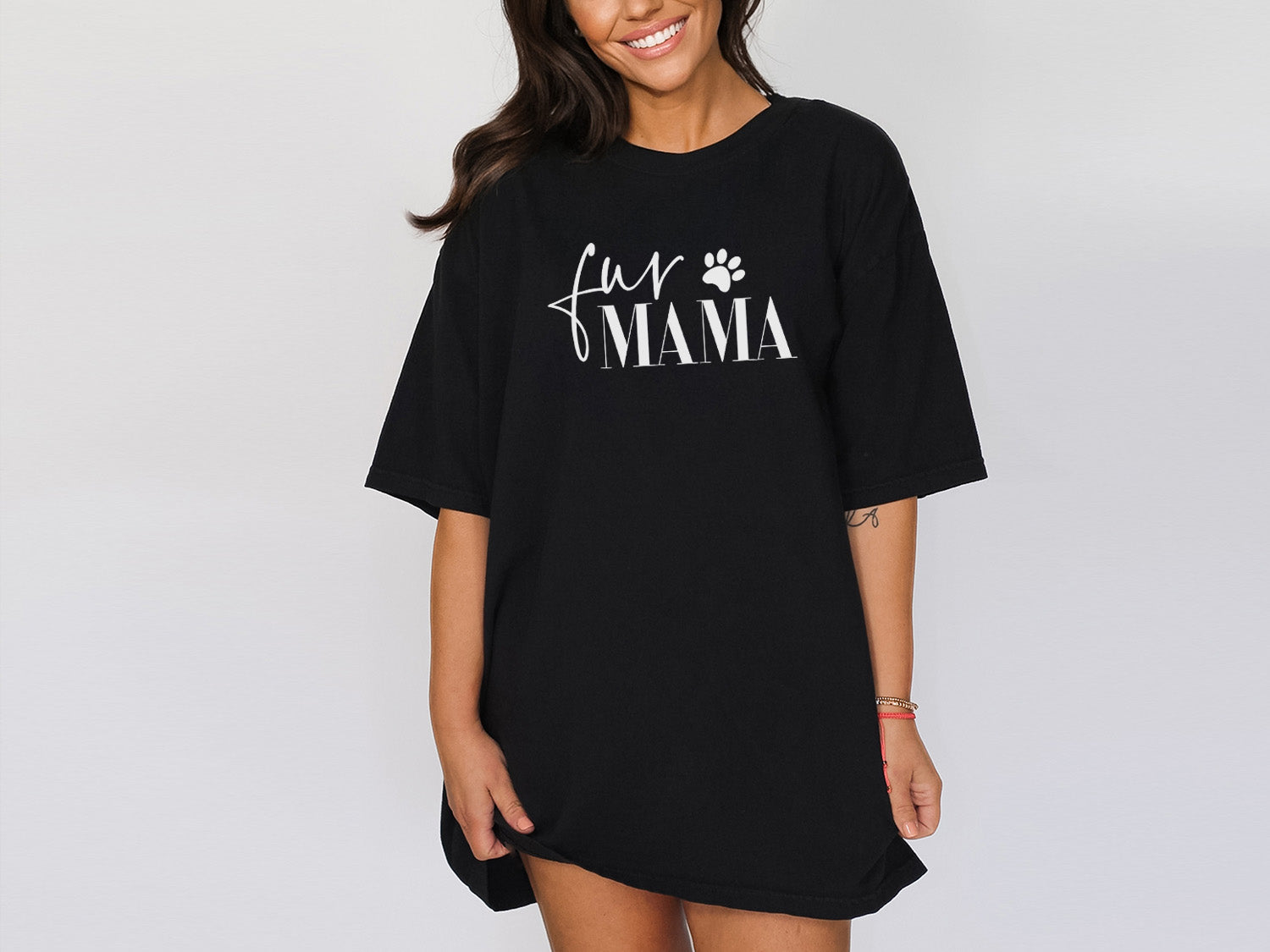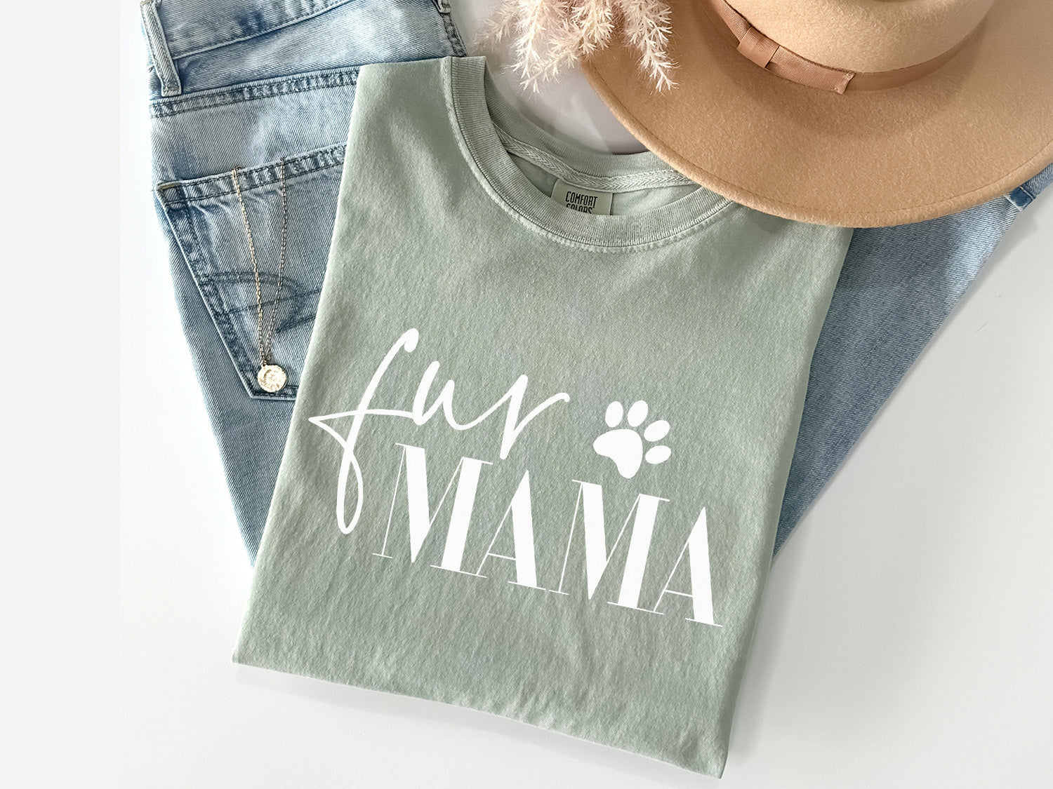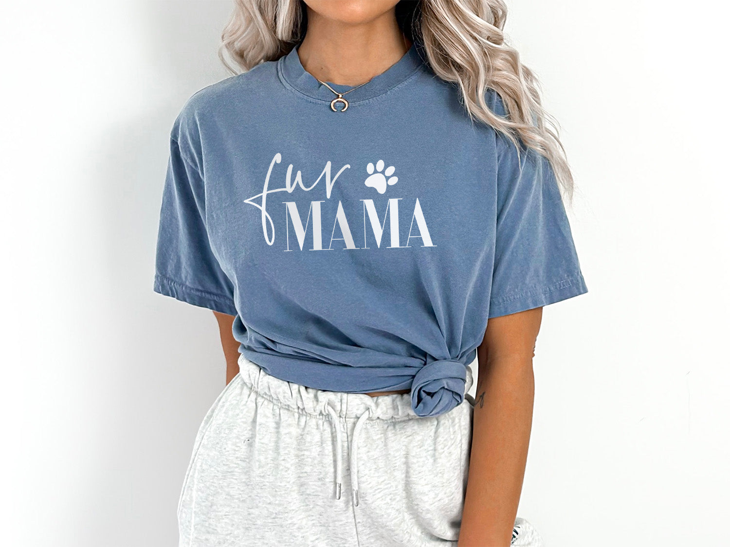 Fur Mama With Paw T-shirt - Fun Pet Love Minimal Design Printed Garment Dyed Heavyweight Short Sleeve T-Shirt