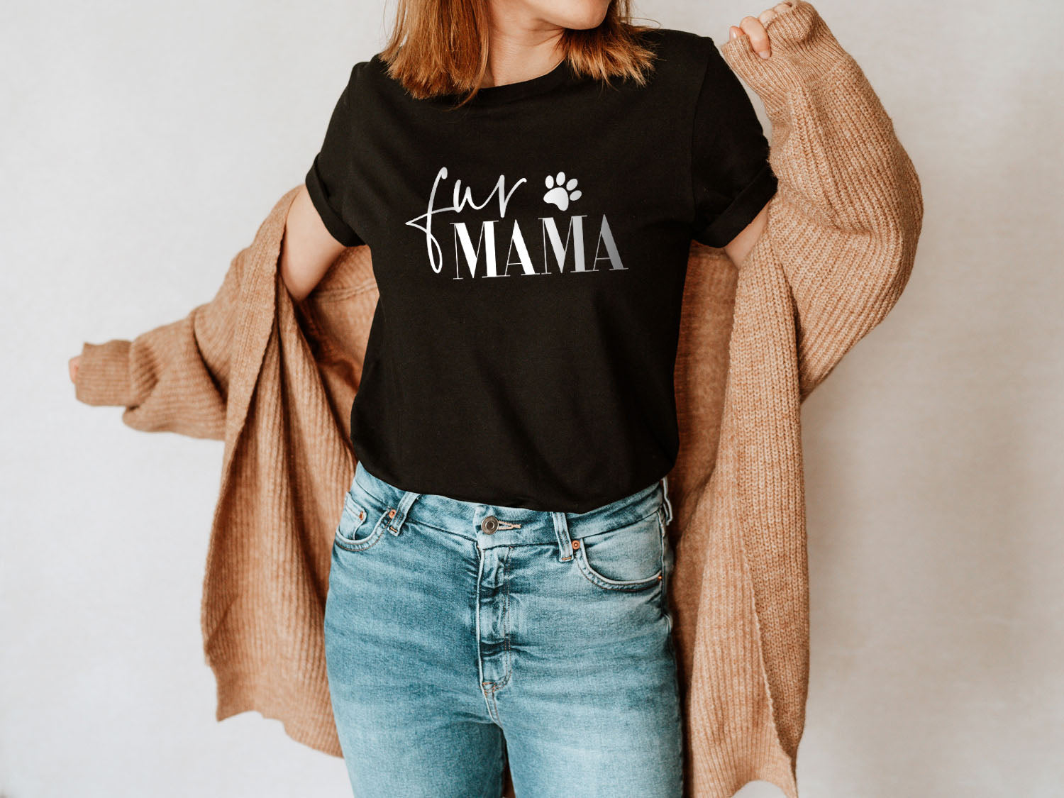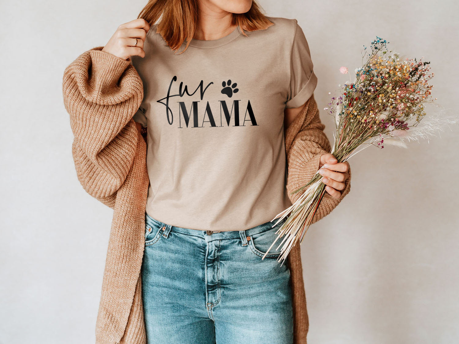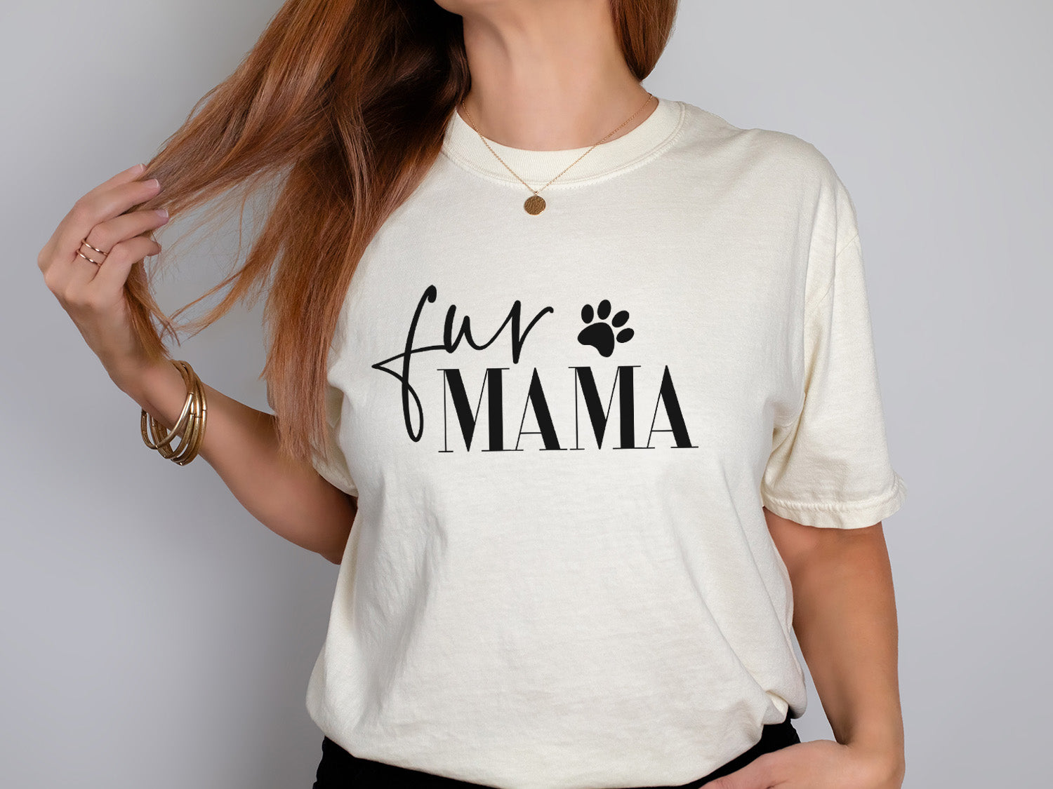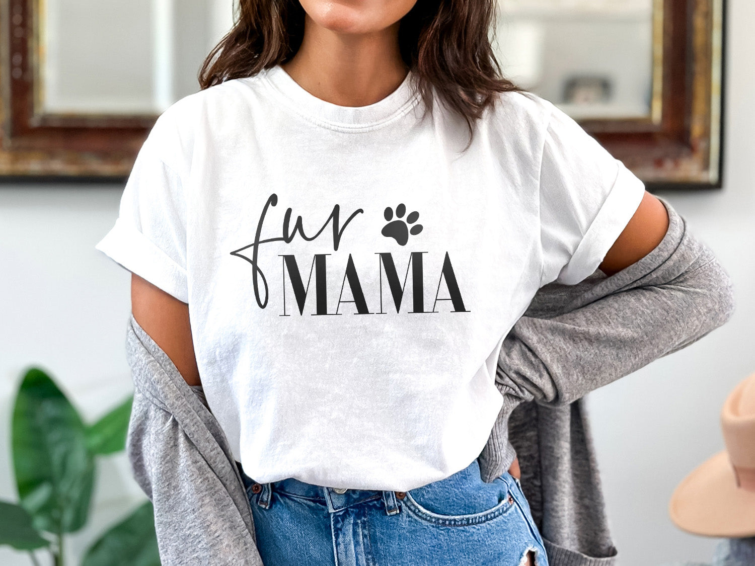 Fur Mama With Paw T-shirt - Fun Pet Love Minimal Design Printed Tee Shirt