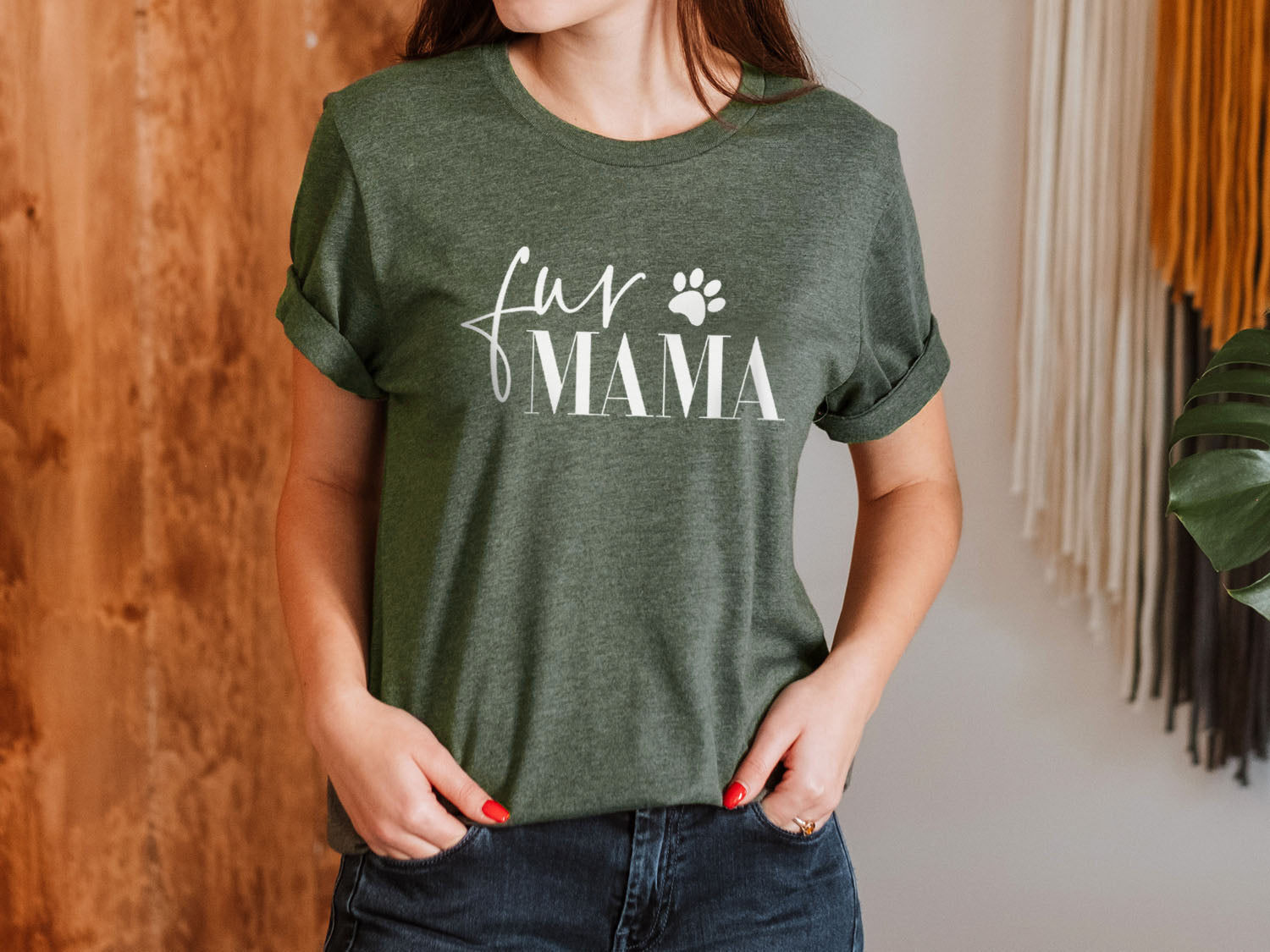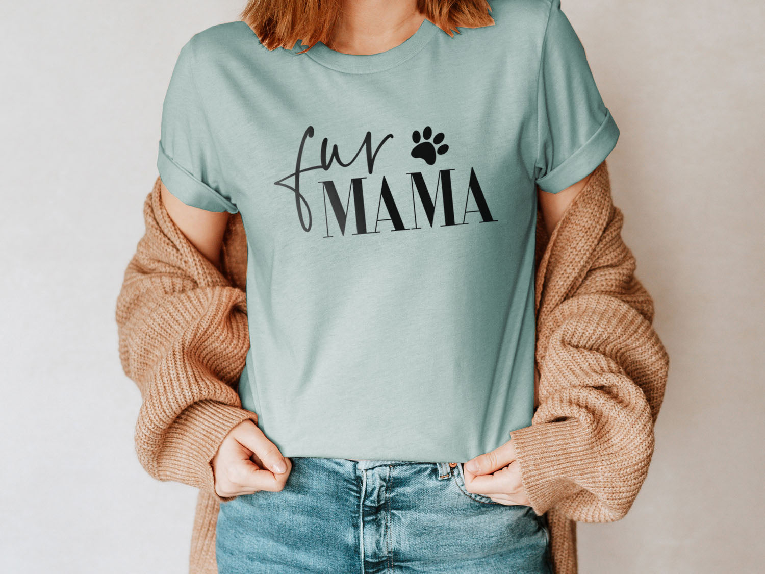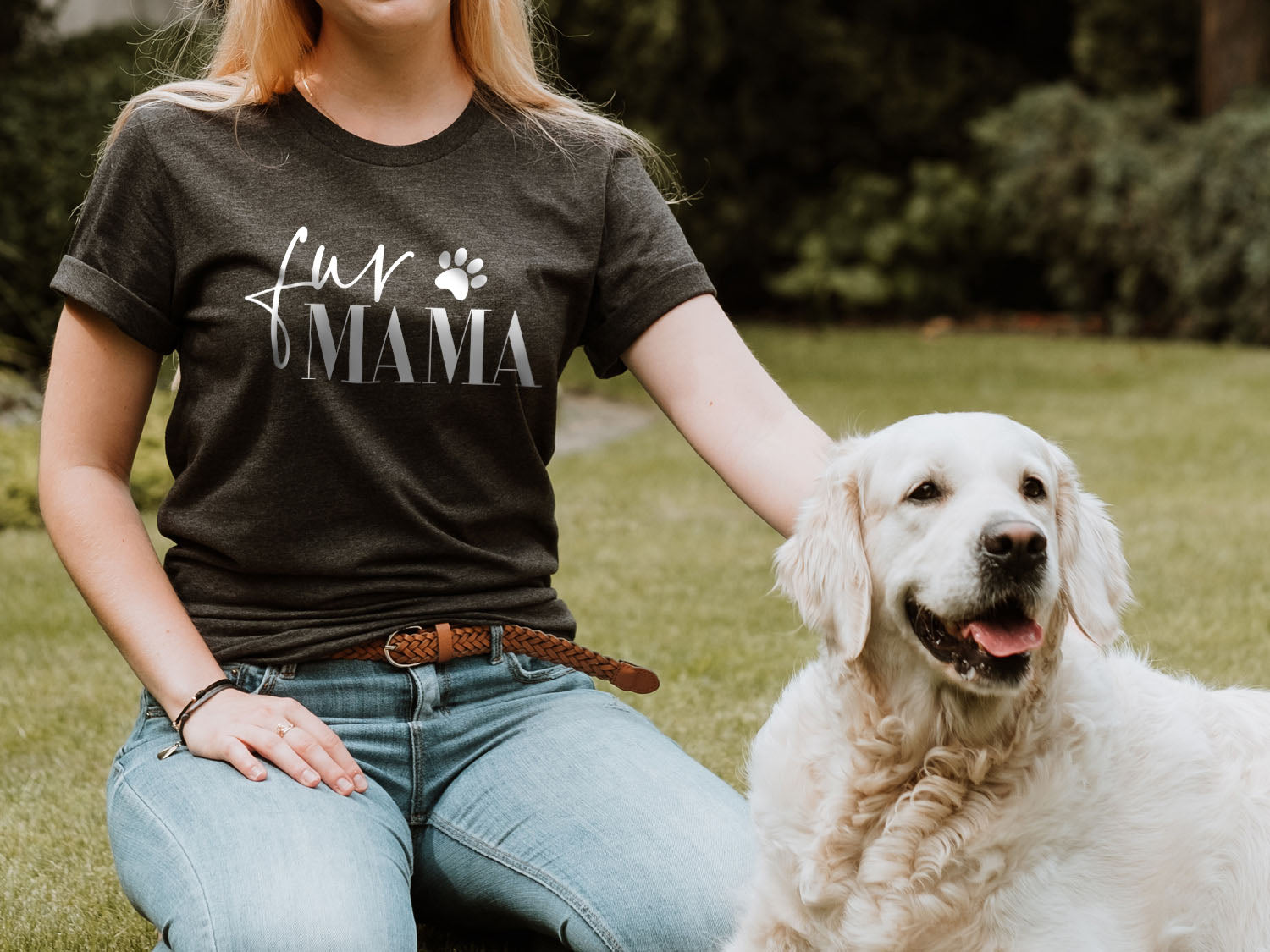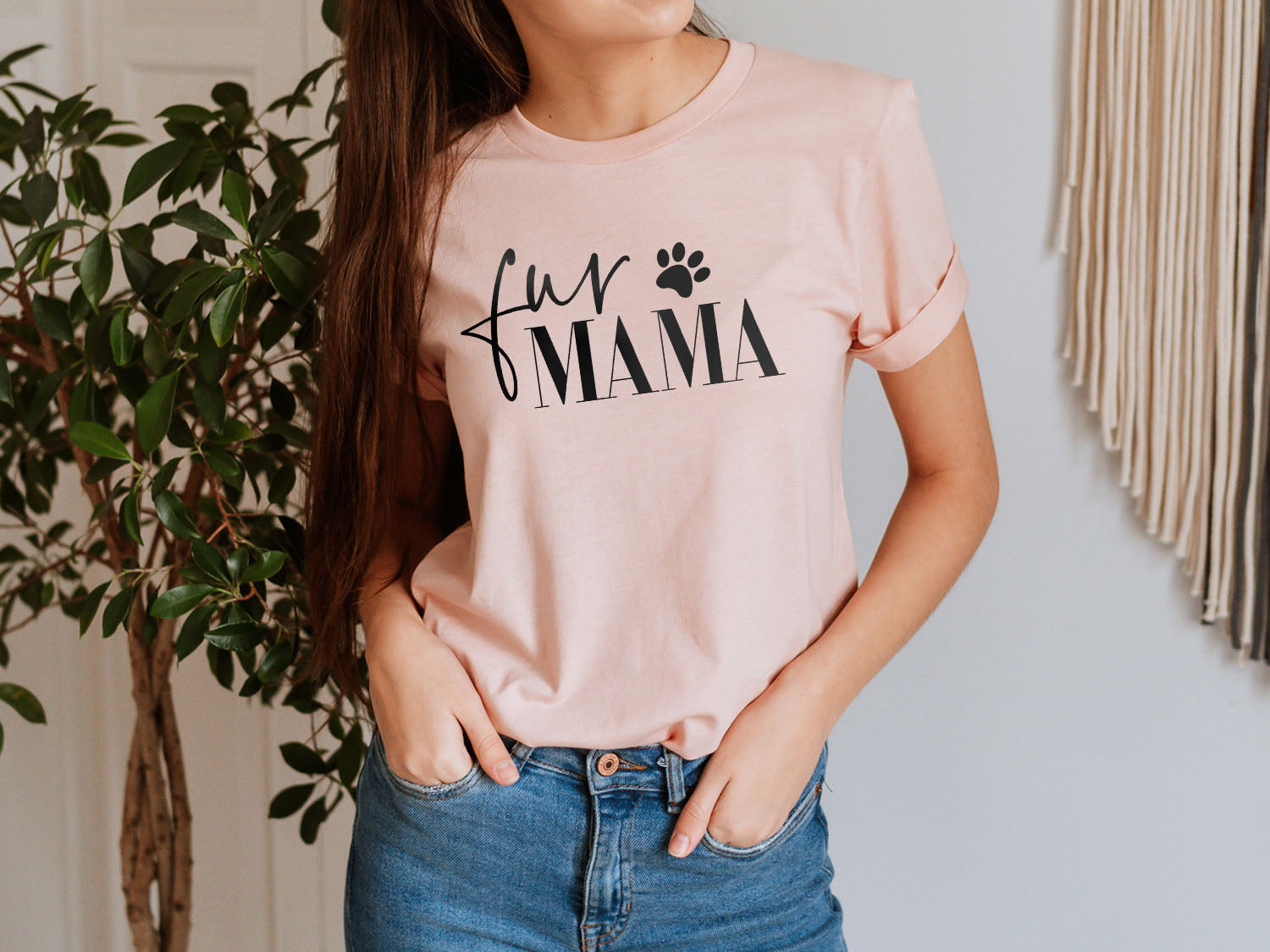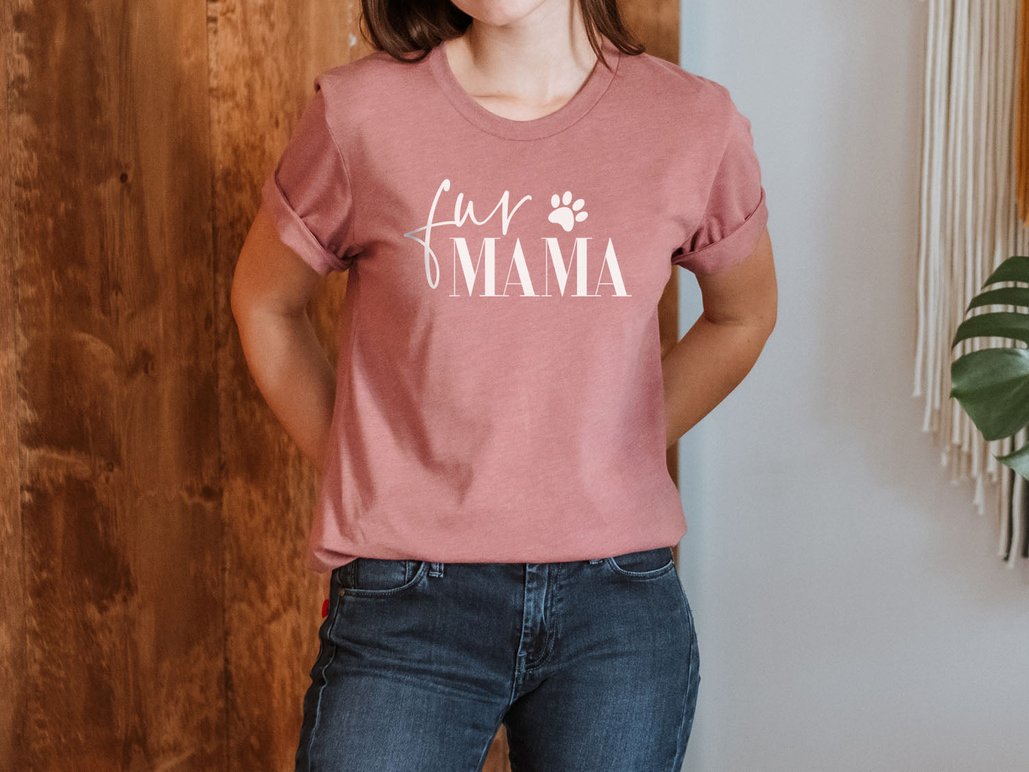 Fur Mama With Paw T-shirt - Fun Pet Love Minimal Design Printed Tee Shirt