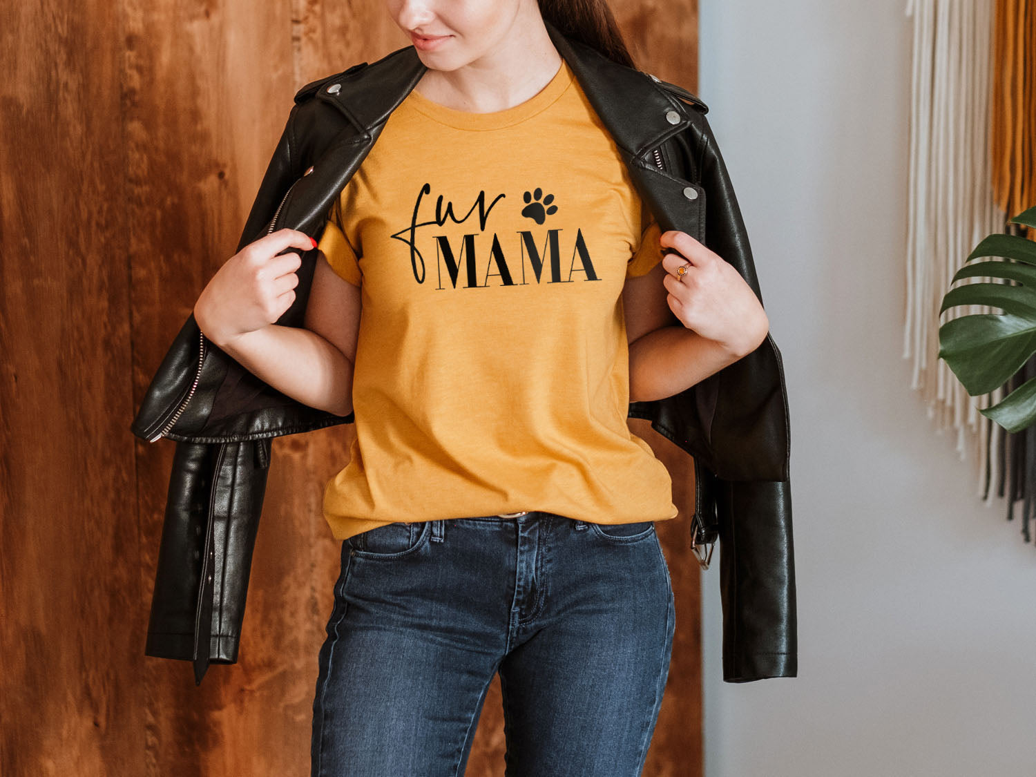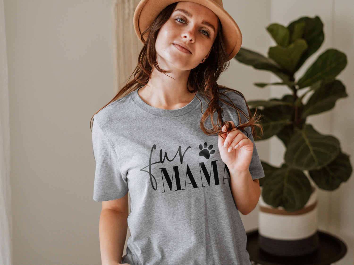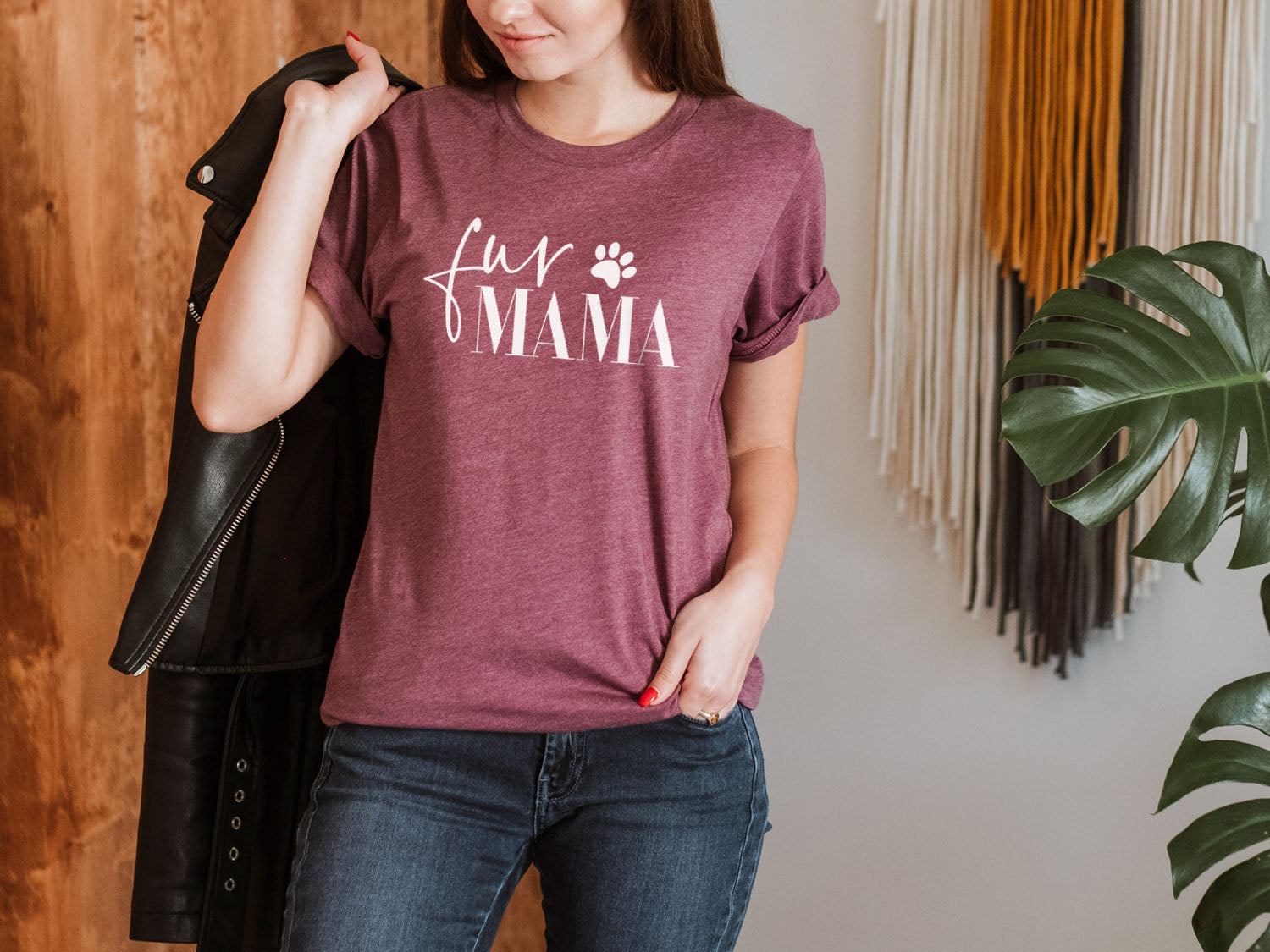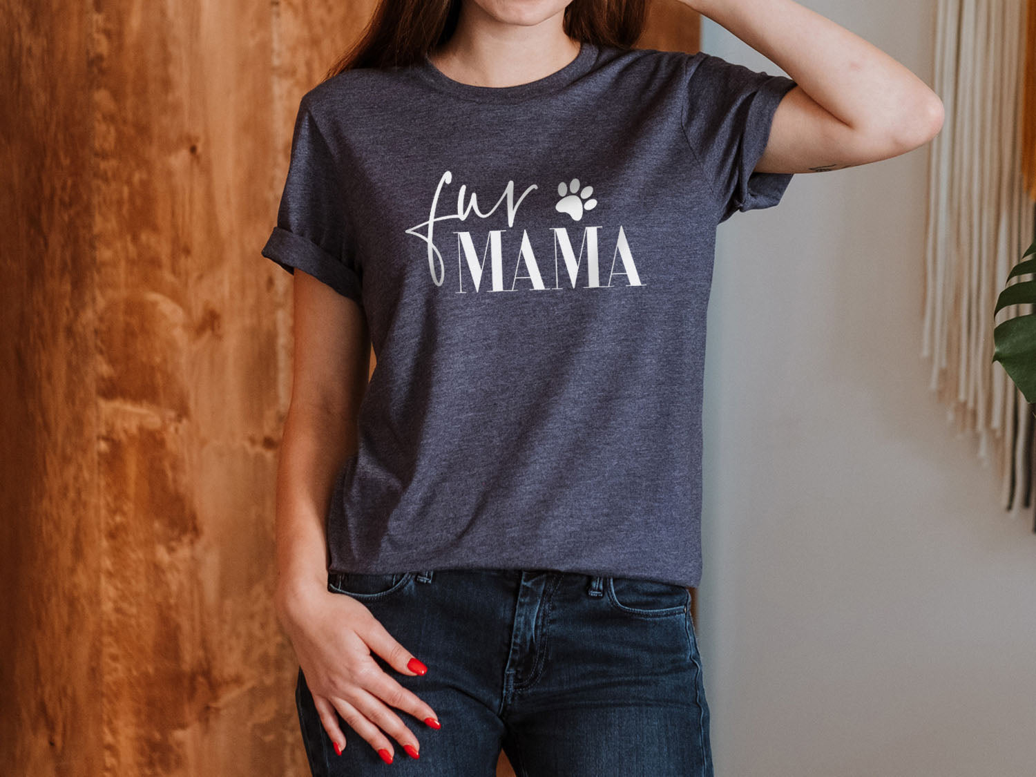 Fur Mama With Paw T-shirt - Fun Pet Love Minimal Design Printed Tee Shirt