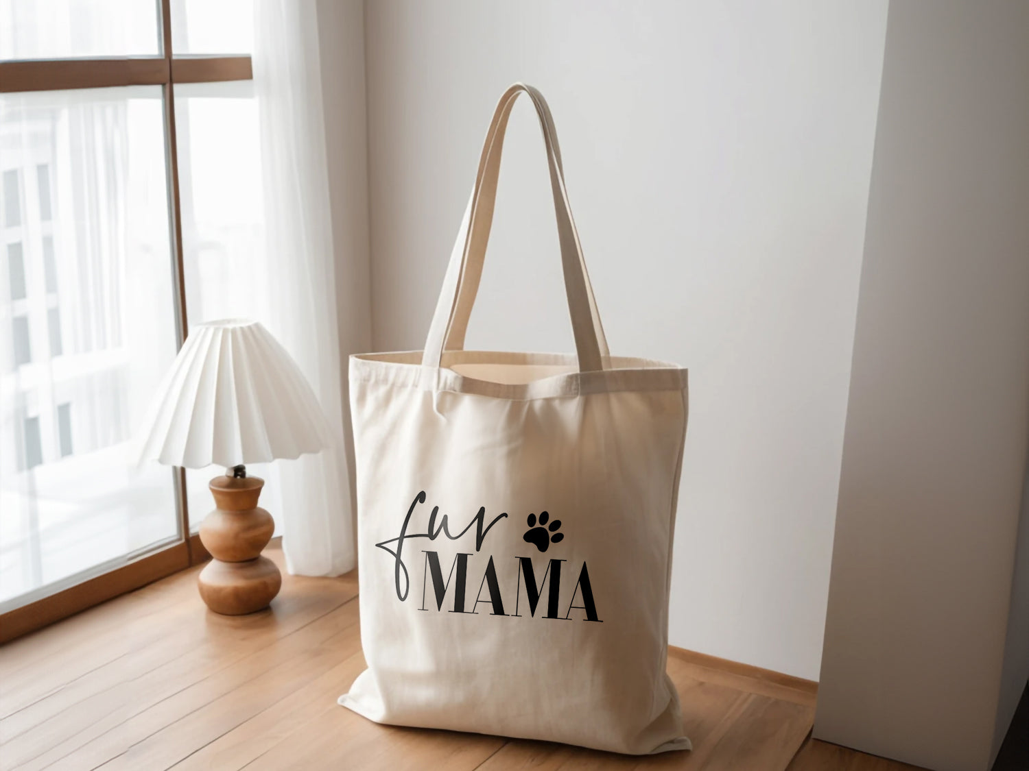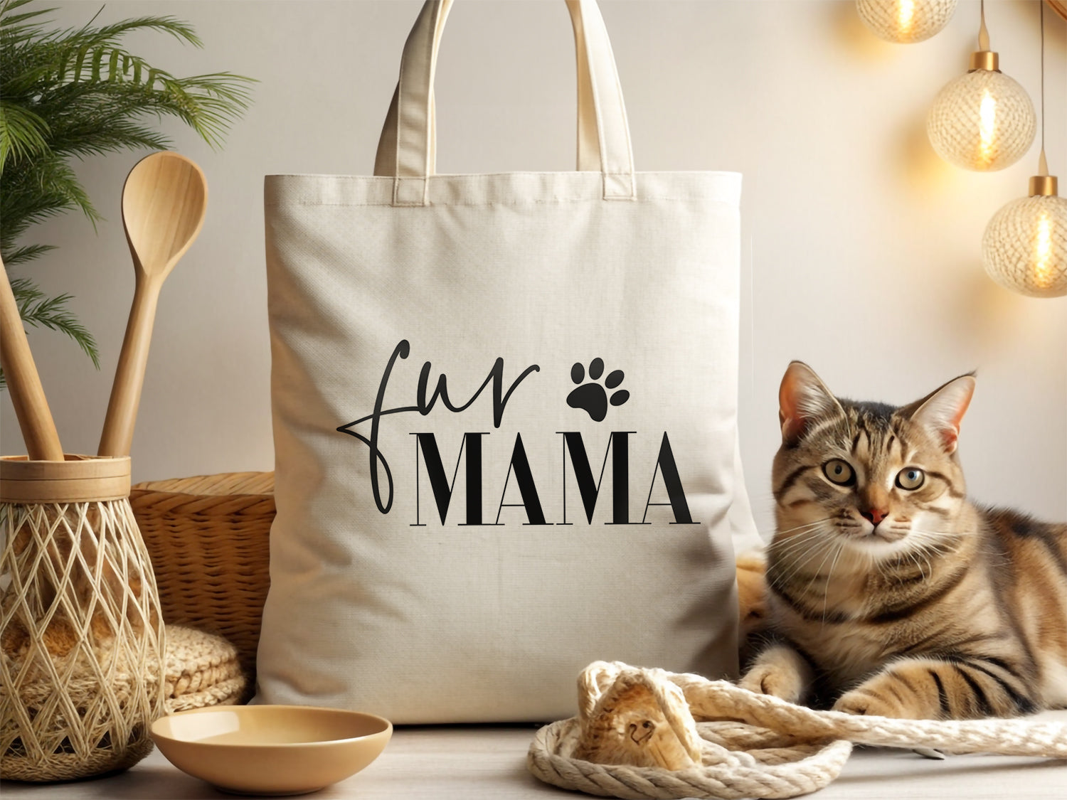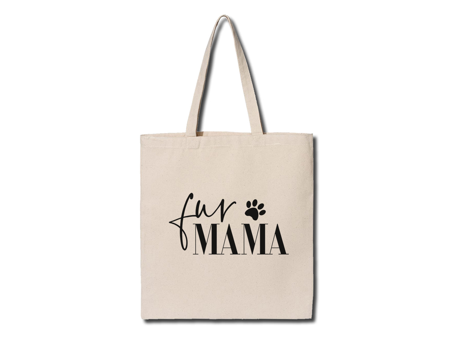 Fur Mama With Paw Cotton Natural Canvas Tote Bag - Fun Pet Love Minimal Design Printed Tote Bag