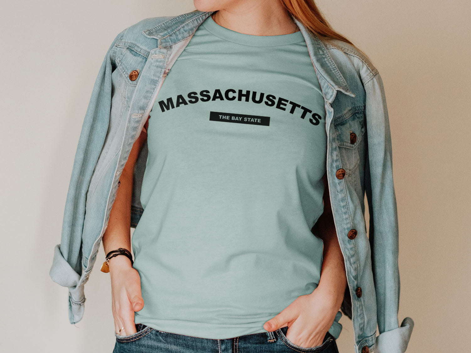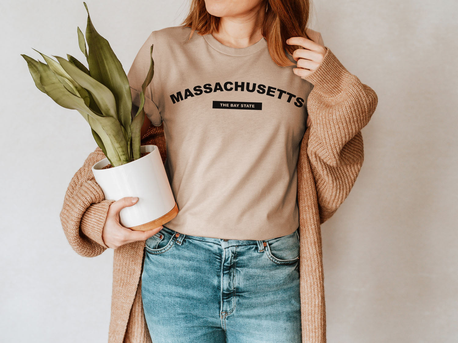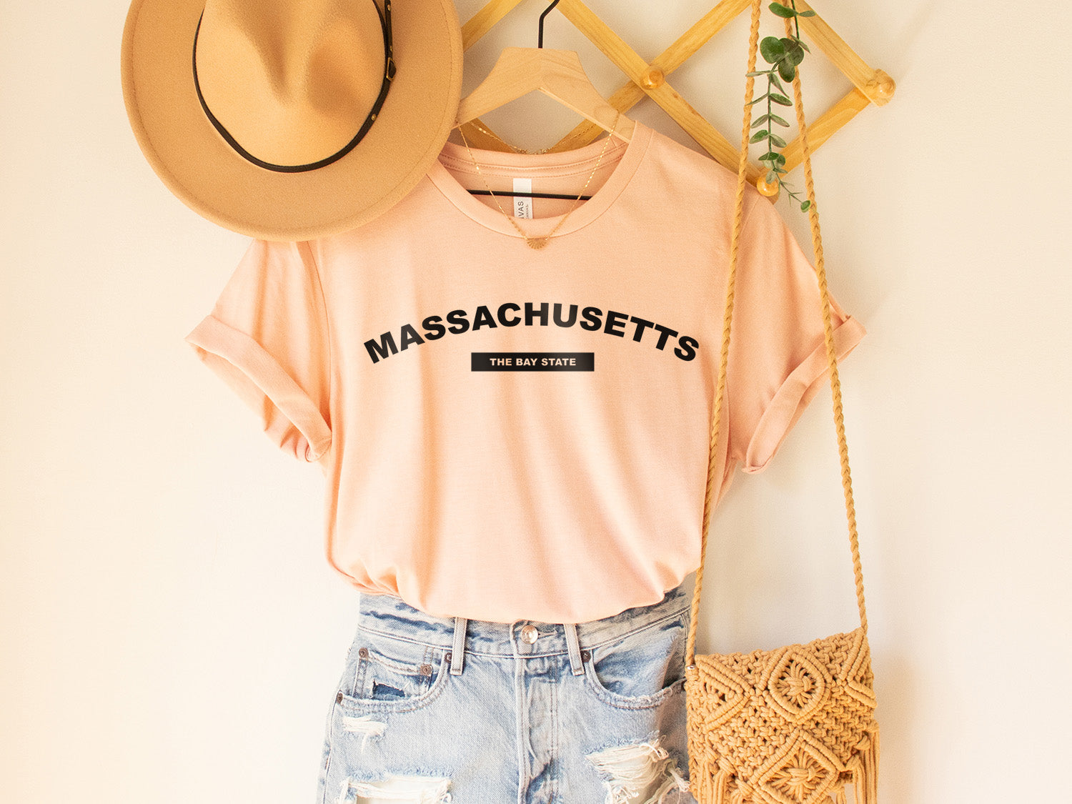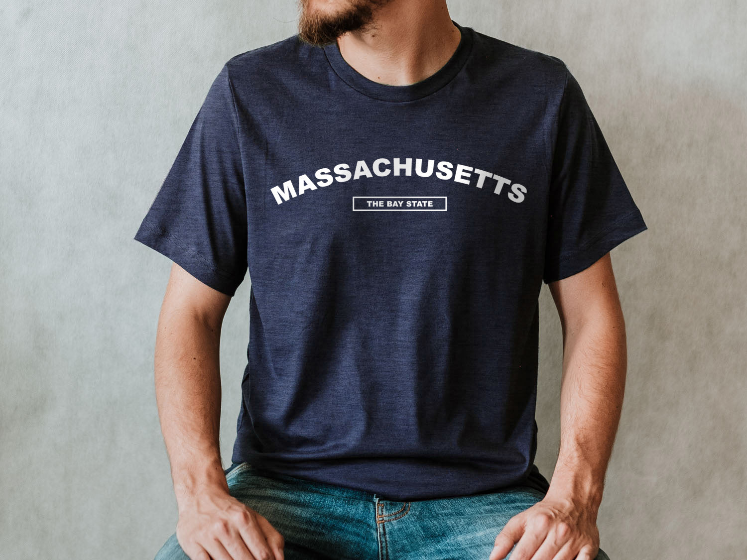 Massachusetts The Bay State T-shirt - United States Name & Slogan Minimal Design Printed Tee Shirt