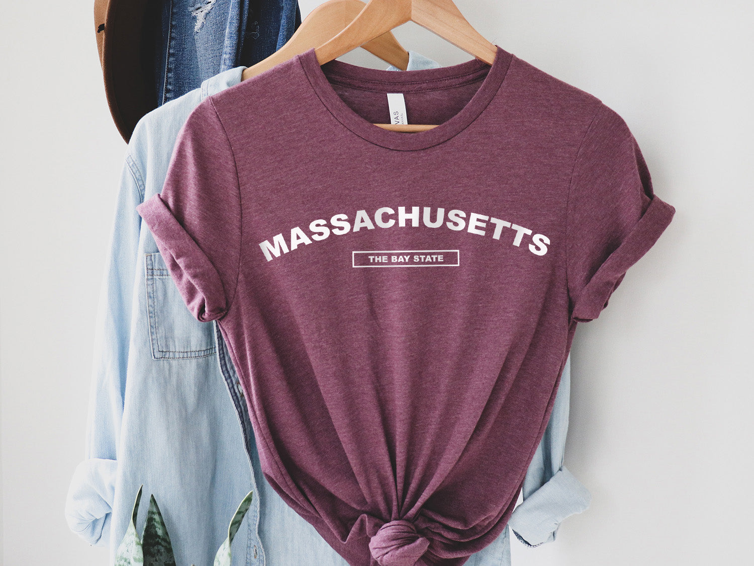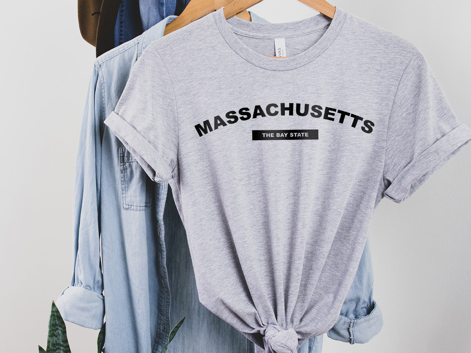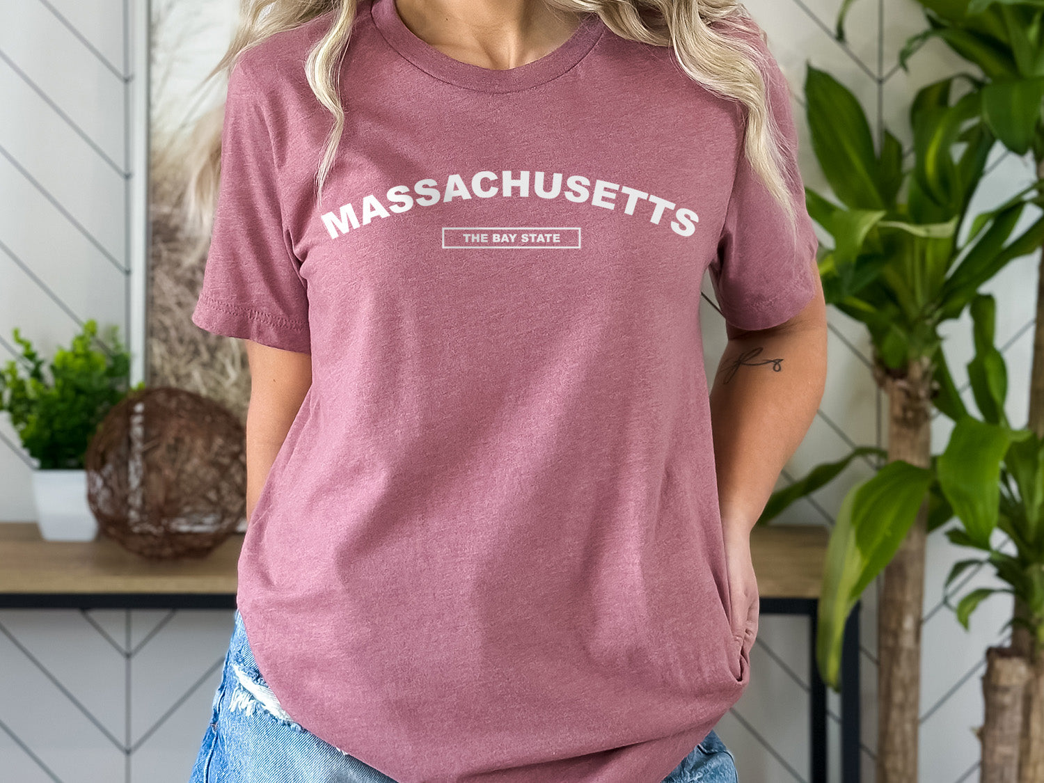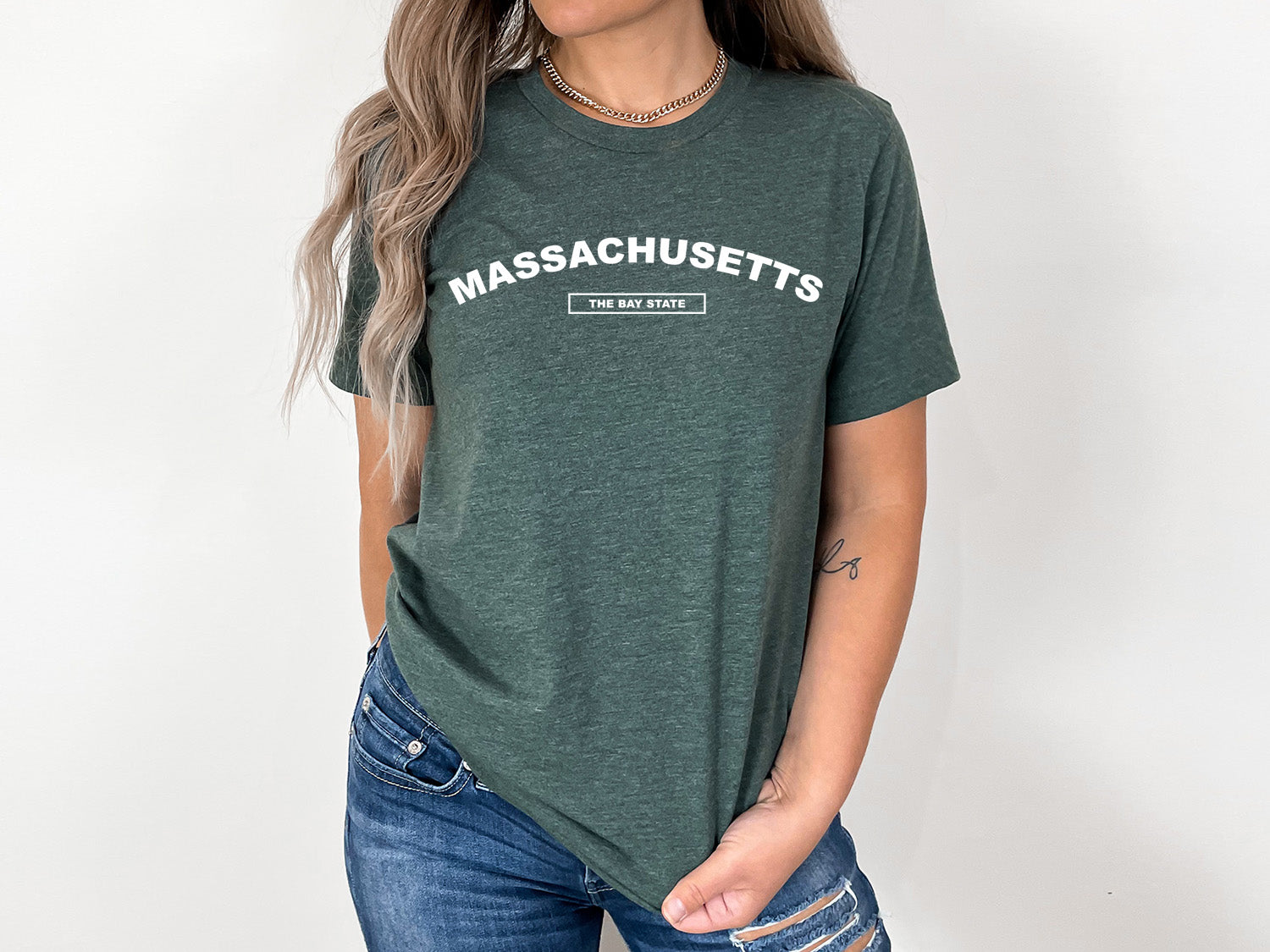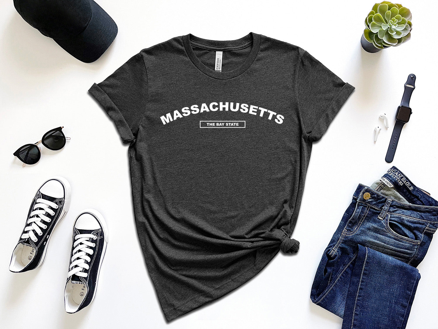 Massachusetts The Bay State T-shirt - United States Name & Slogan Minimal Design Printed Tee Shirt