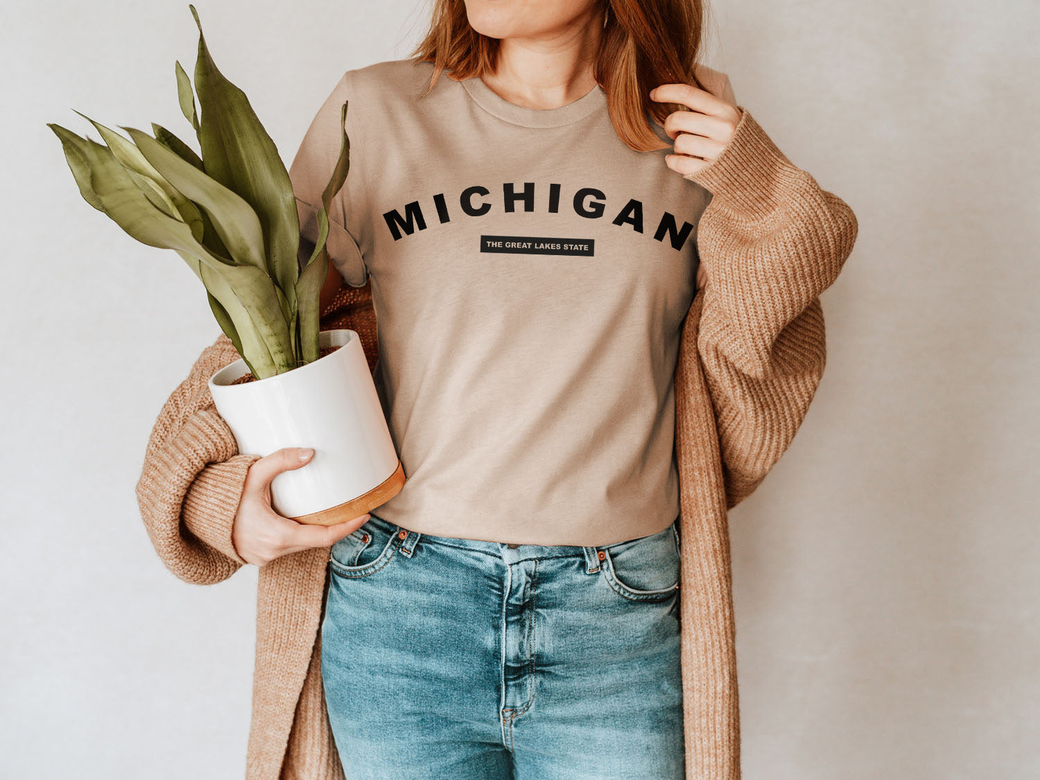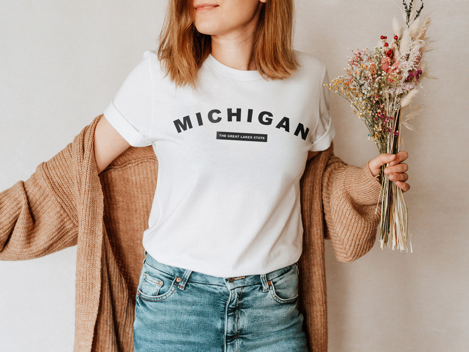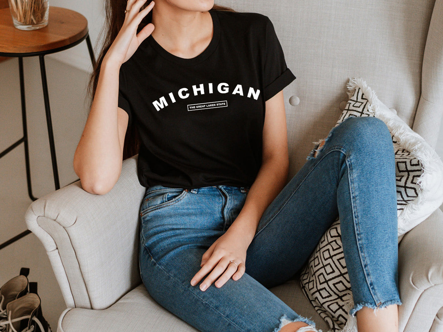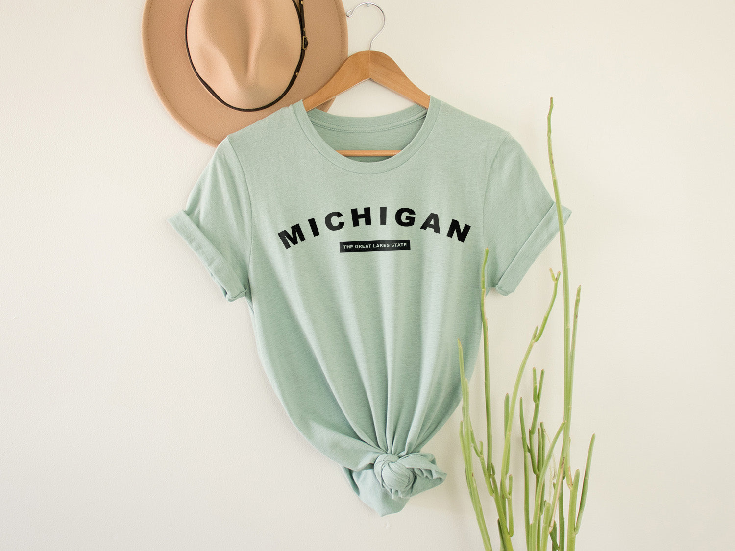 Michigan The Great Lakes State T-shirt - United States Name & Slogan Minimal Design Printed Tee Shirt