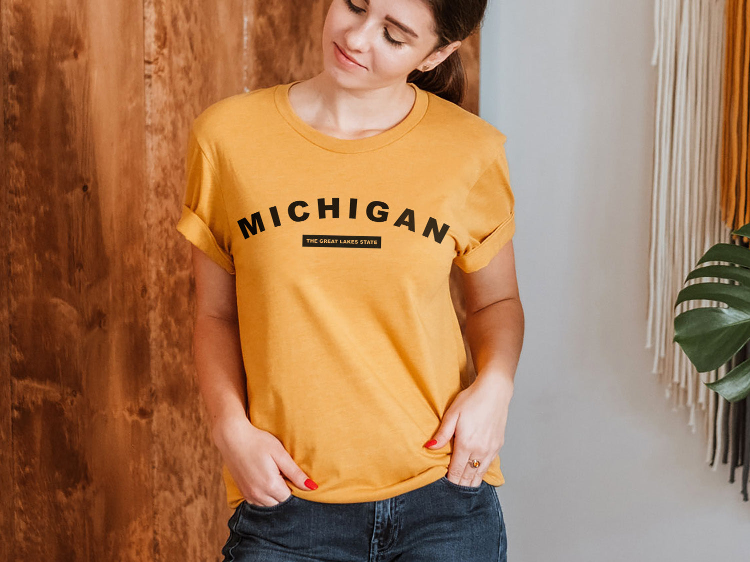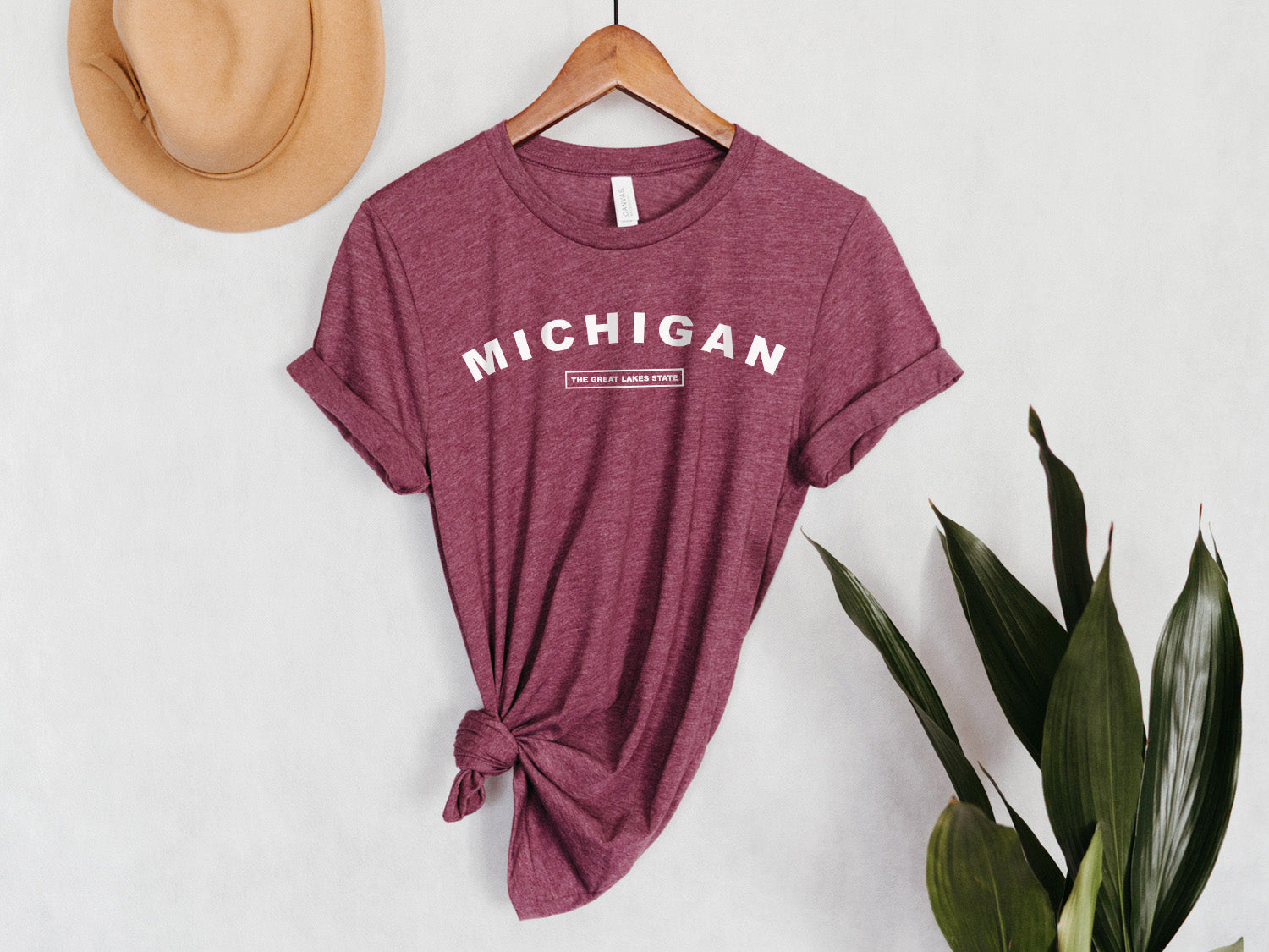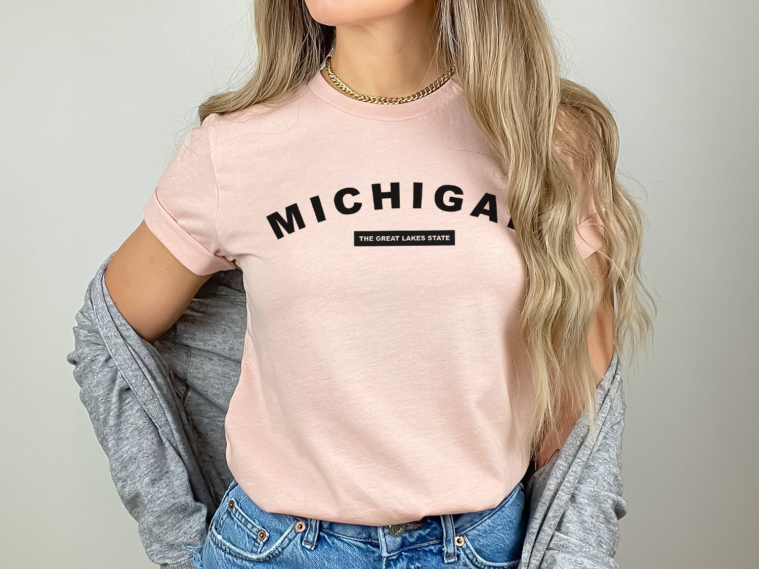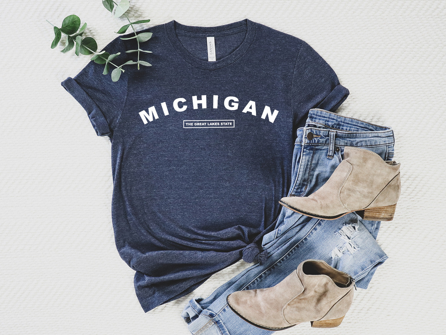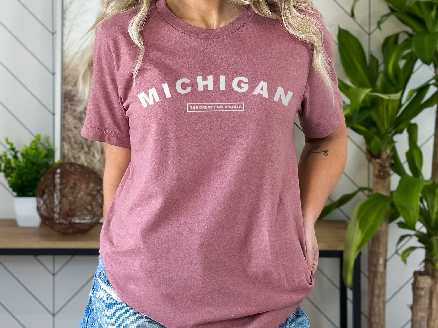 Michigan The Great Lakes State T-shirt - United States Name & Slogan Minimal Design Printed Tee Shirt
