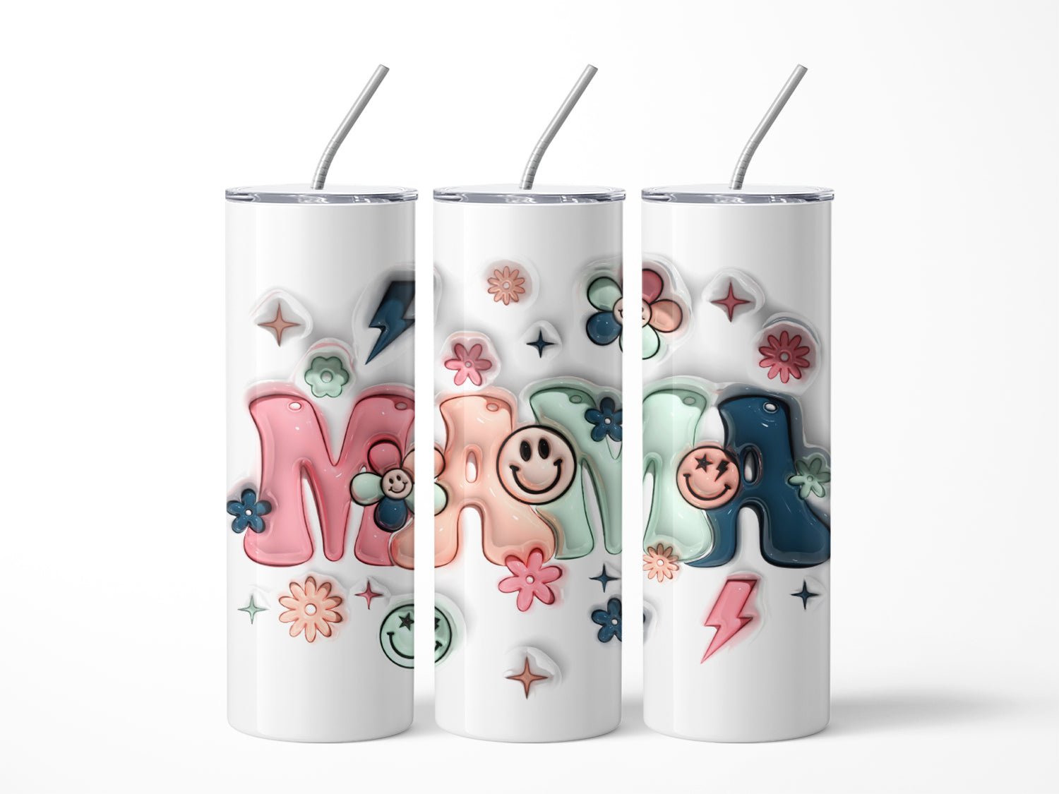 Mama Tumbler - Fun Relax Motivation 3D Inflated Look Design Sublimated 20 oz Stainless Steel Tumbler with Straw