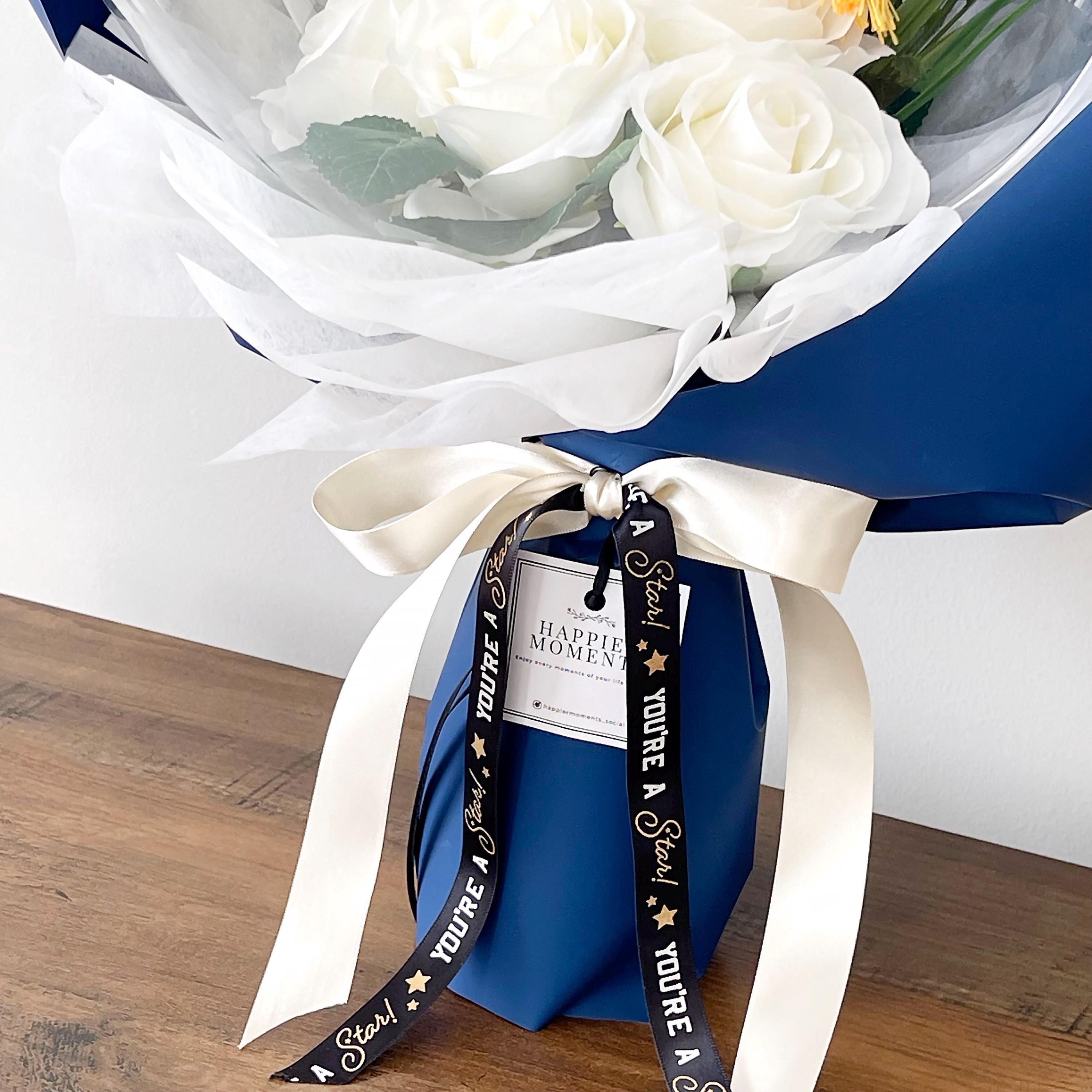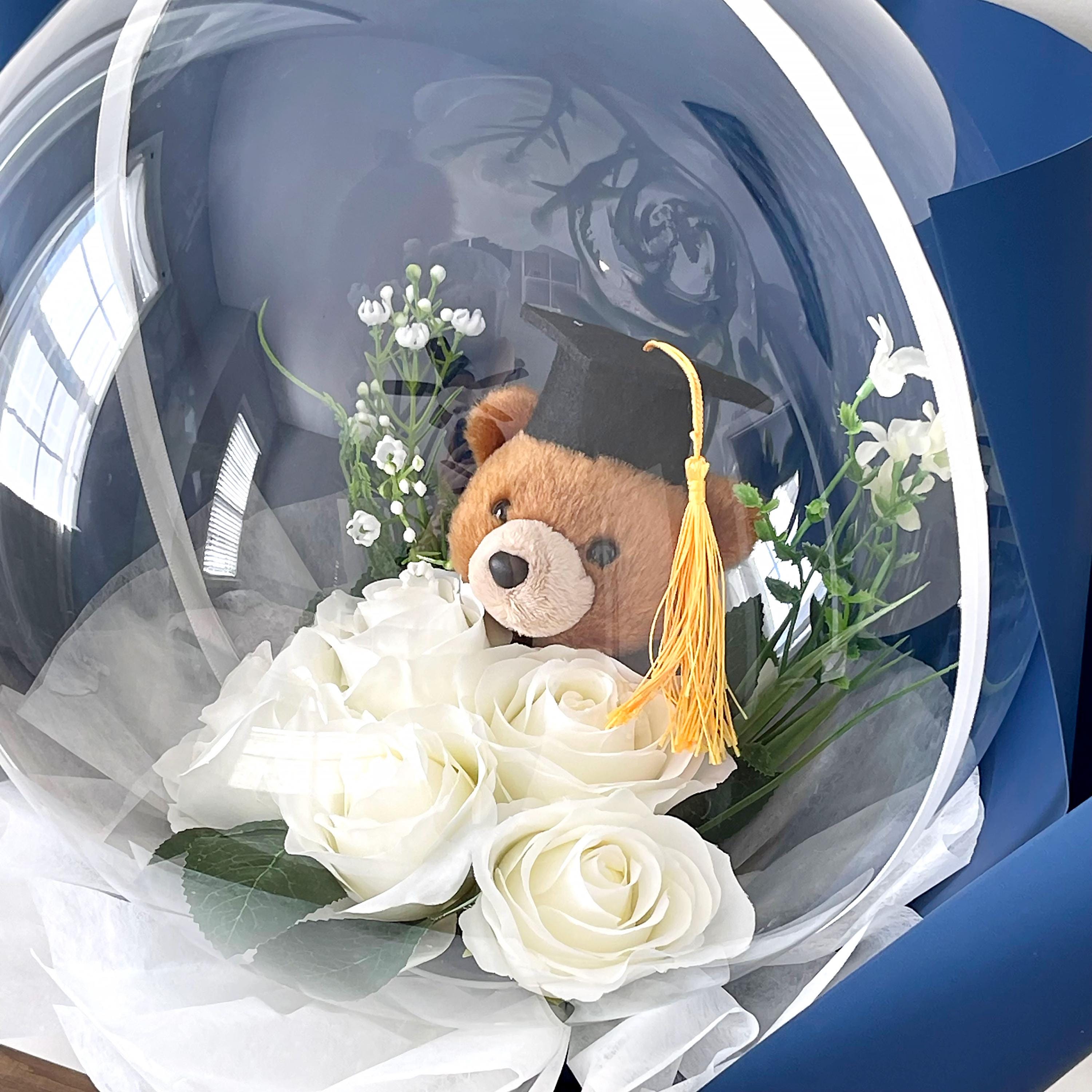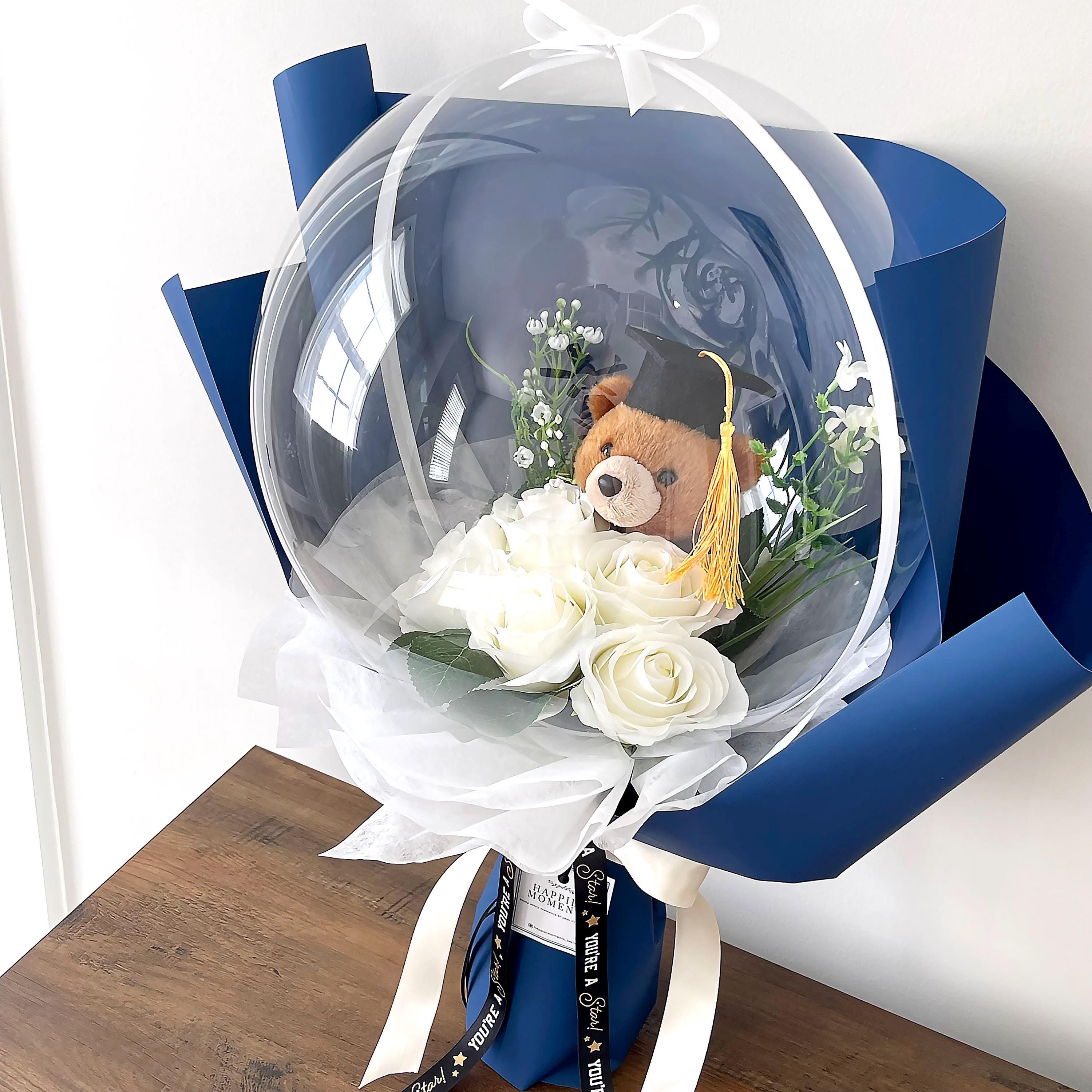 Graduation Teddy Bear White Rose Flower Balloon Bouquet Navy Wrapping paper | Birthday, Mother's Day, Valentine's Day, Anniversary Gift