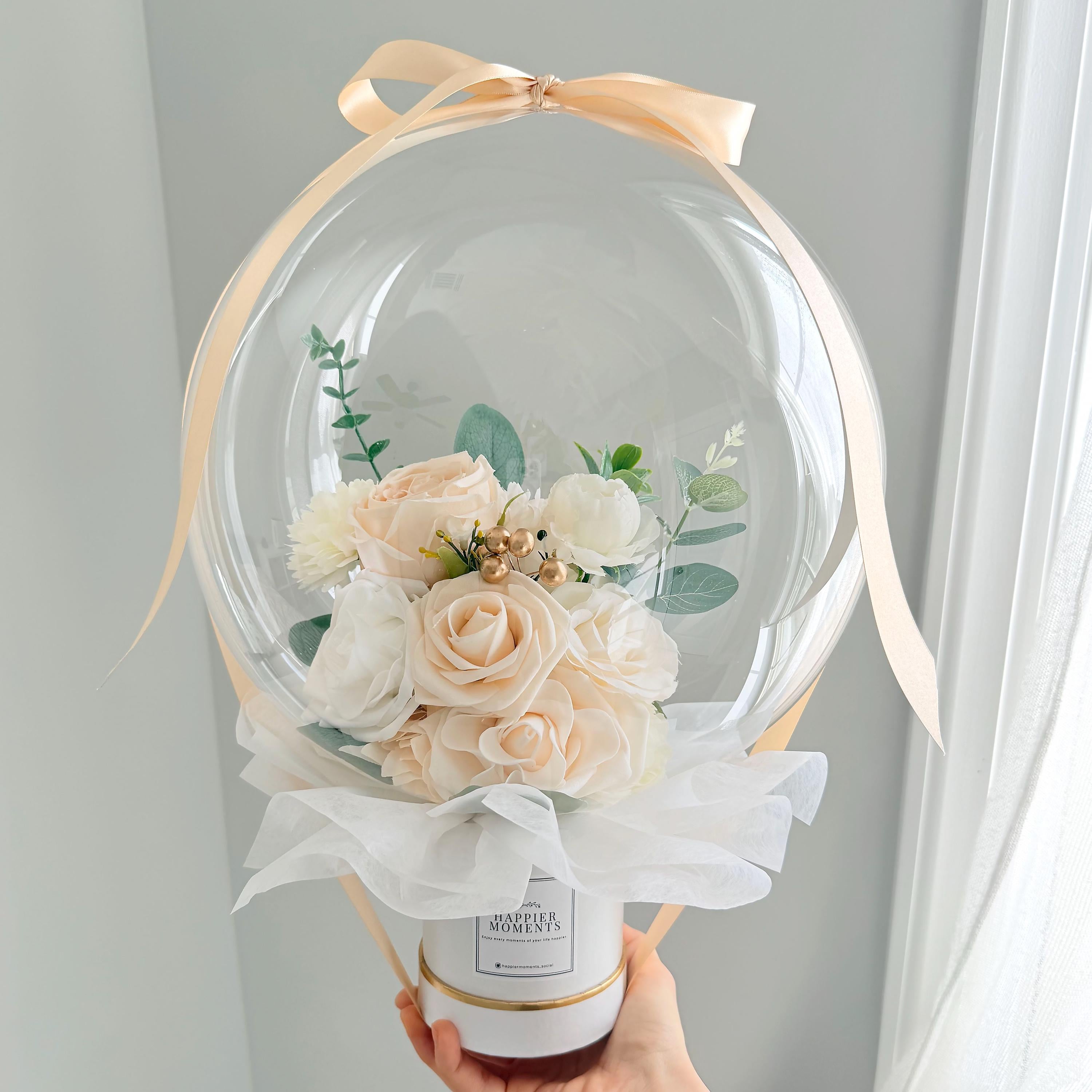 Light Champagne Assorted Flower Balloon Bouquet Gift Box | Birthday Mother's Day Valentine's Day Bridal Shower Baby Shower Anniversary Gift