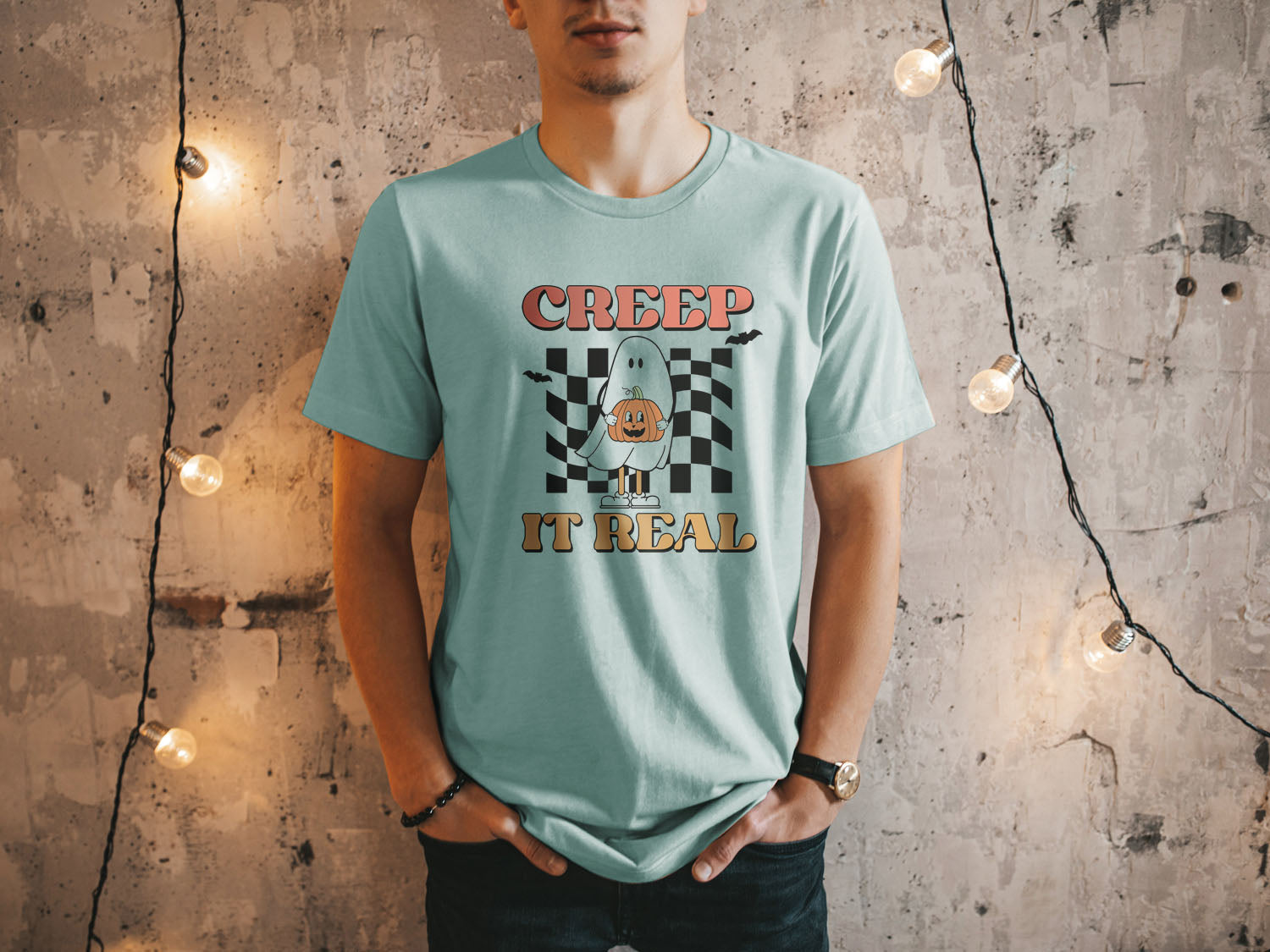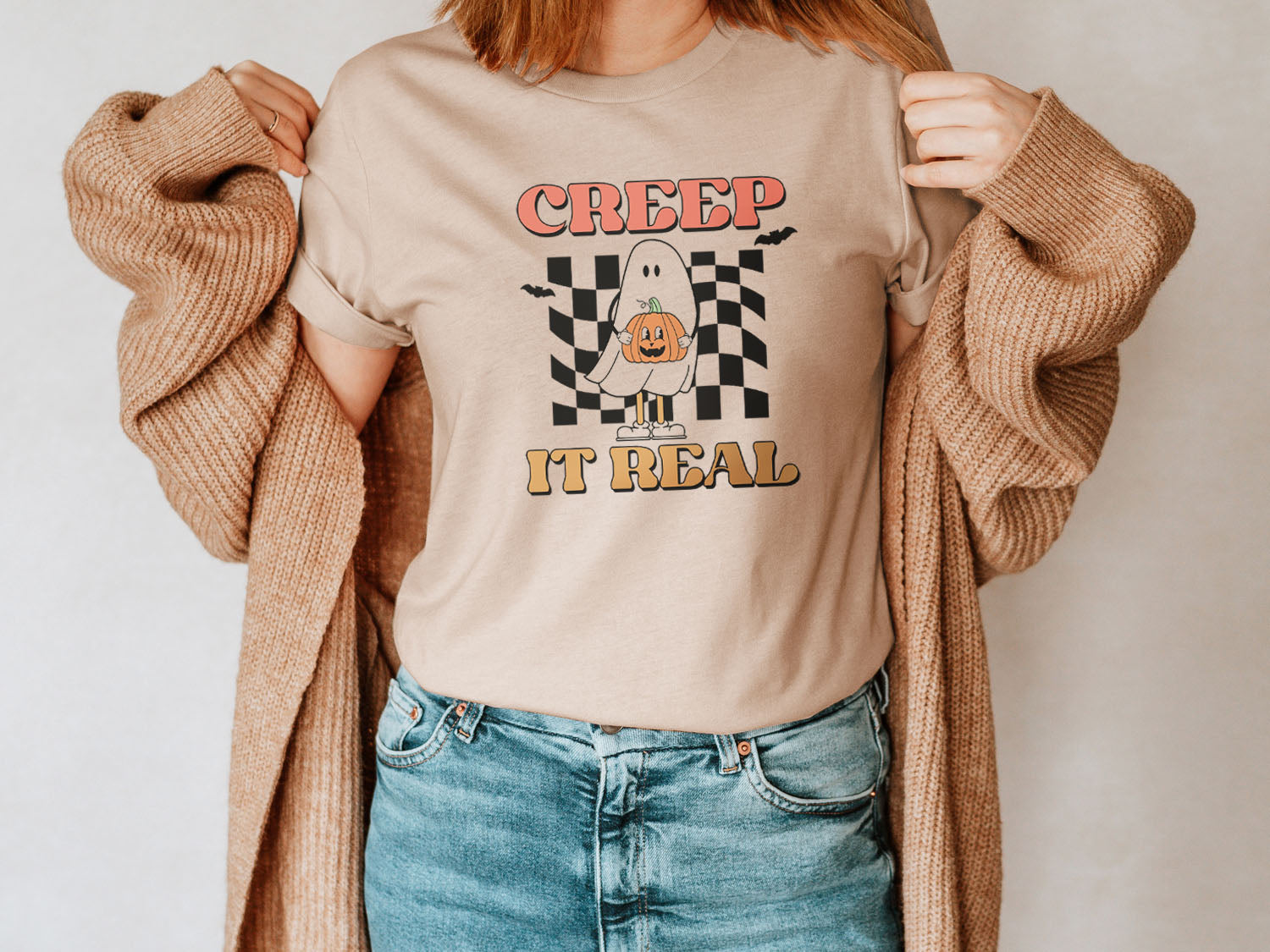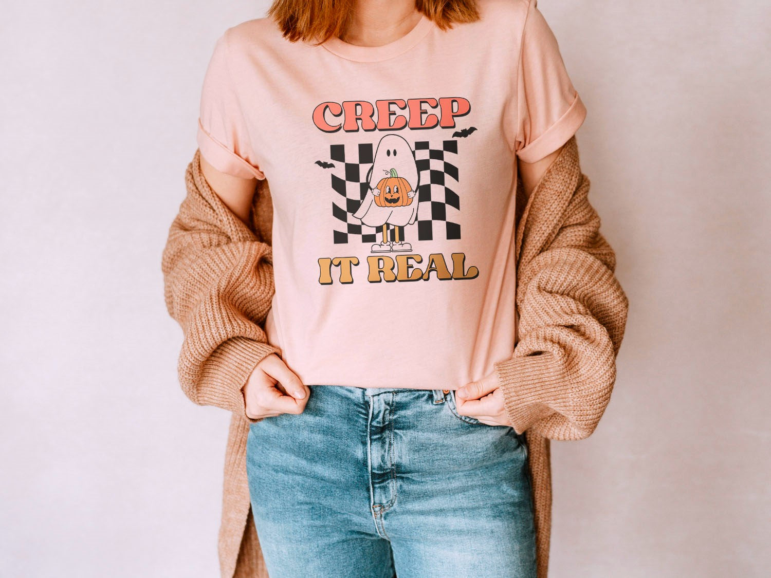 Halloween Ghost Pumpkin Creep It Real T-shirt - Halloween Ghost Pumpkin Witch Retro Vintage Design Printed Tee Shirt