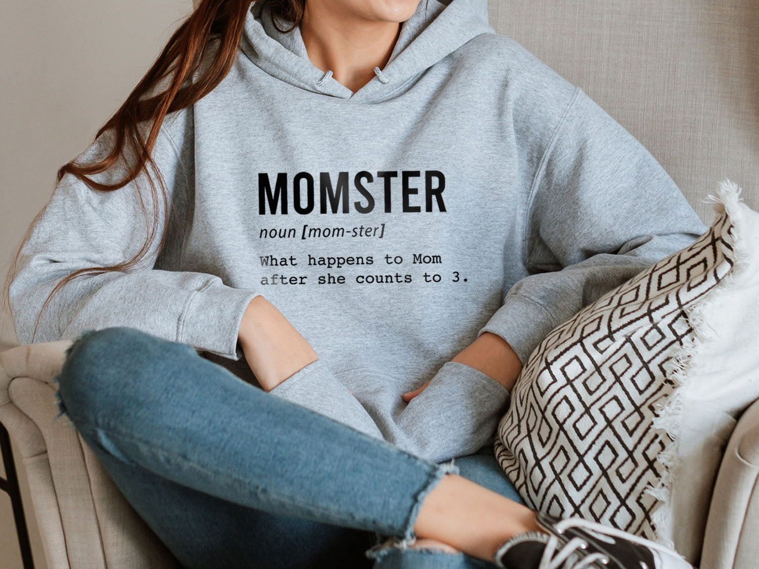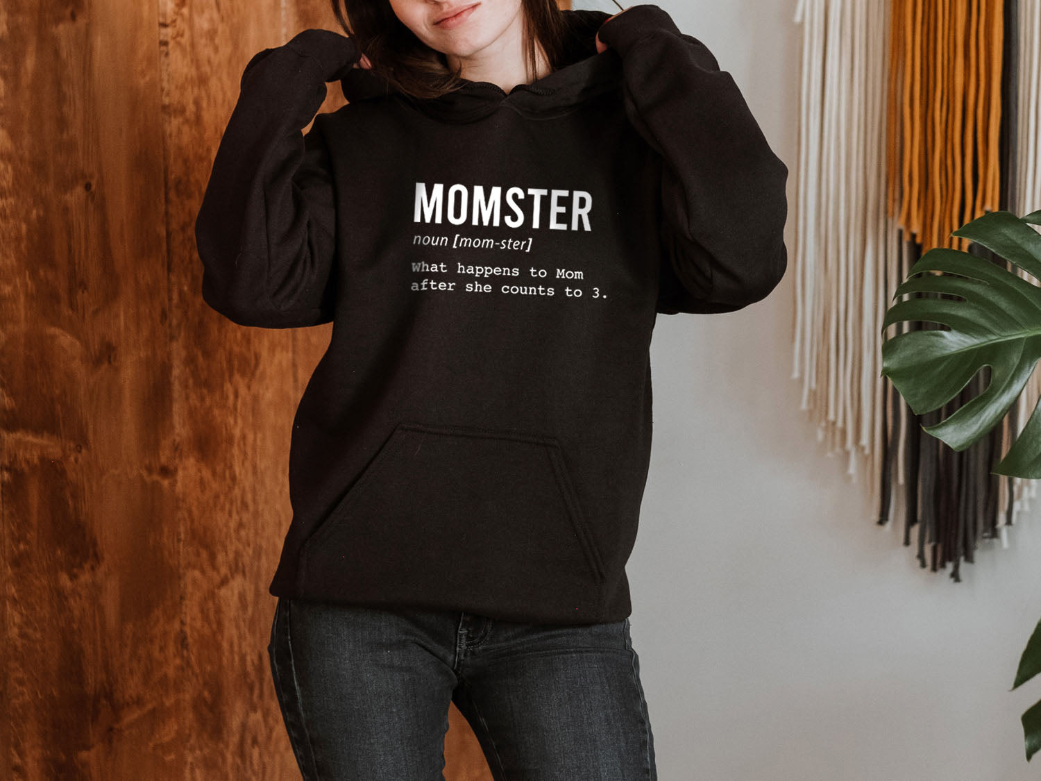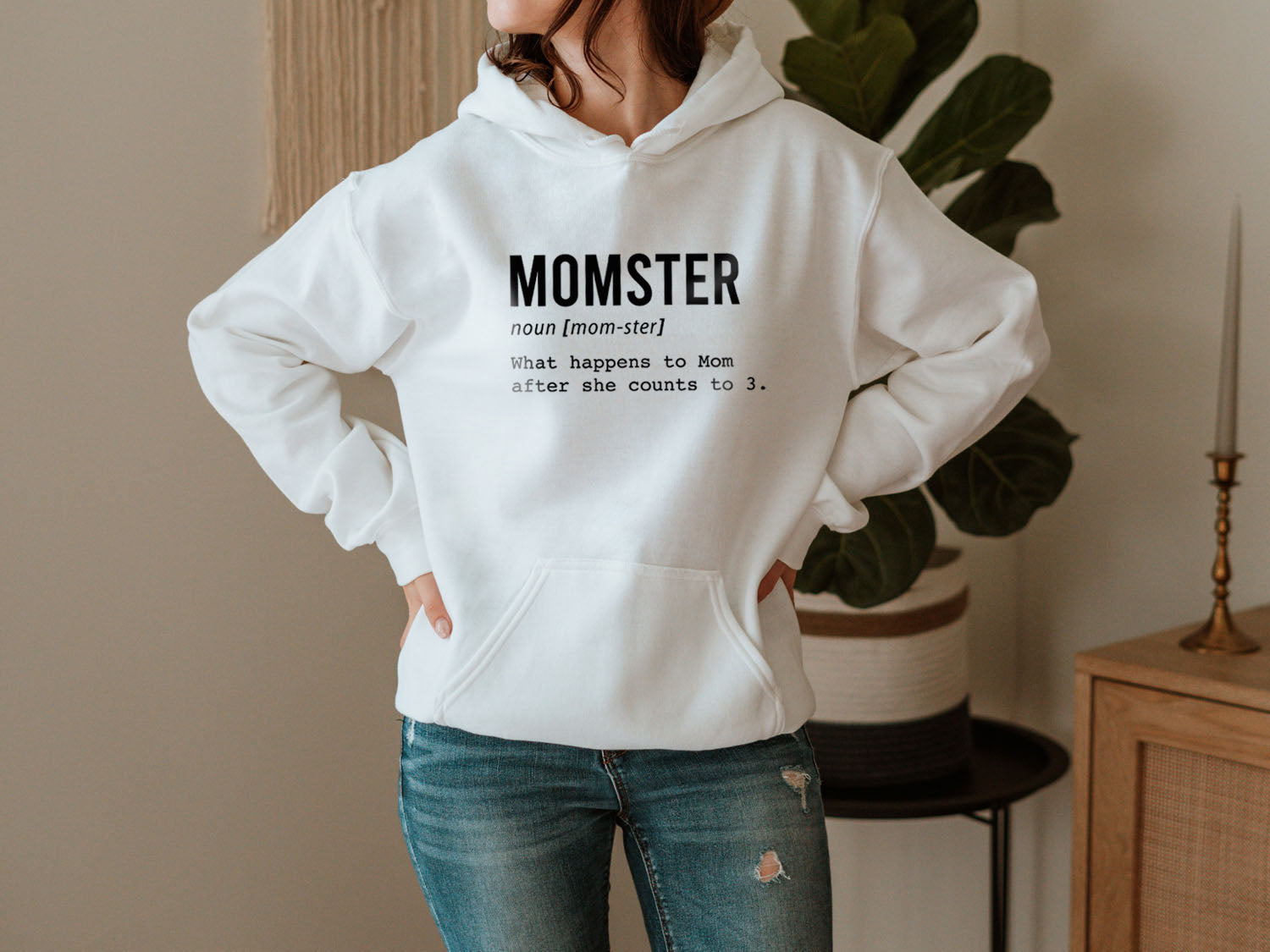 Funny Definition of Momster Hoodie - Funny Family Retro Vintage Design Printed Hoodie