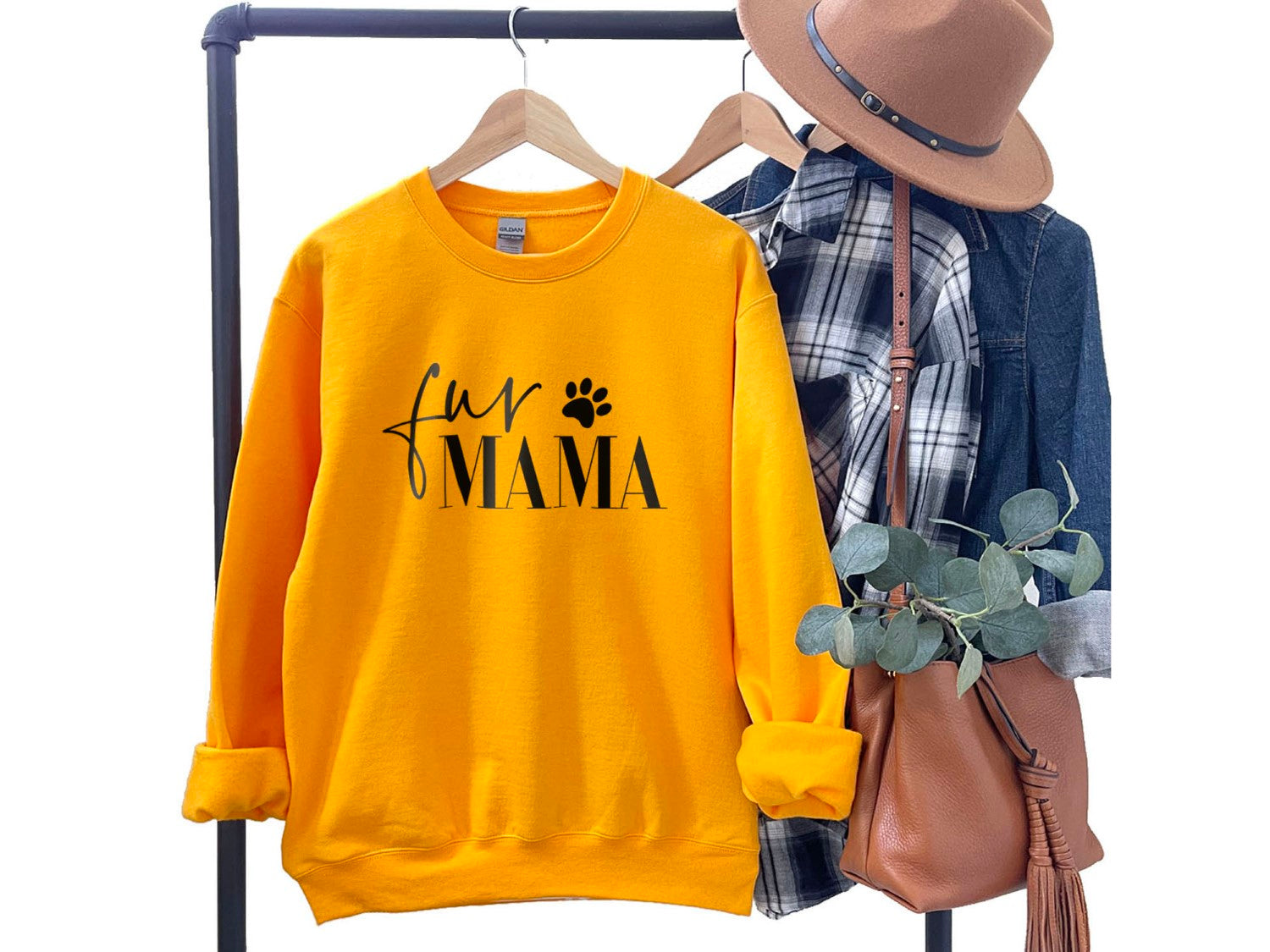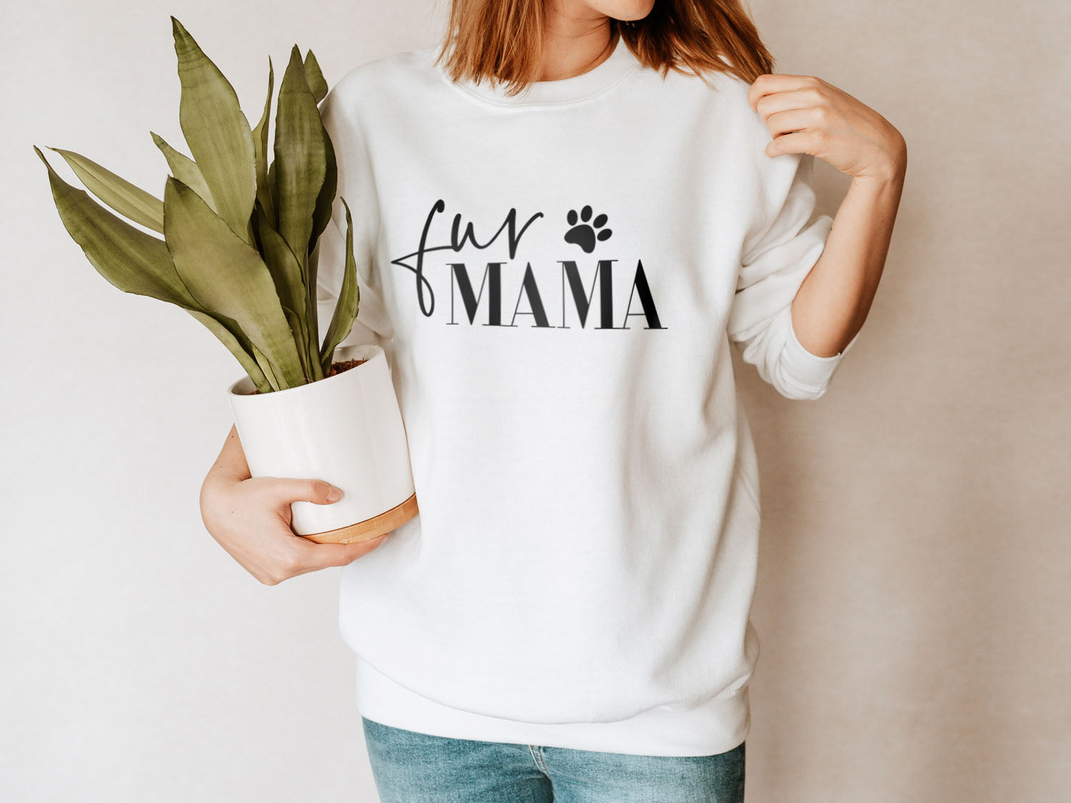 Fur Mama With Paw Sweatshirt - Fun Pet Love Minimal Design Printed Sweatshirt