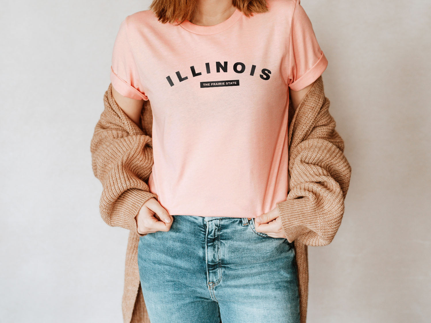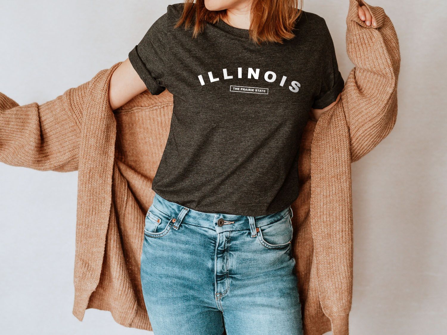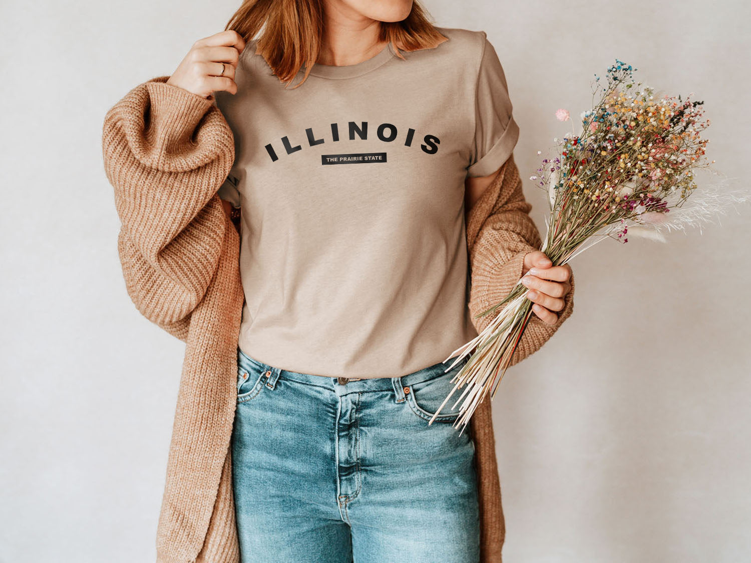Illinois The Prairie State T-shirt - United States Name & Slogan Minimal Design Printed Tee Shirt