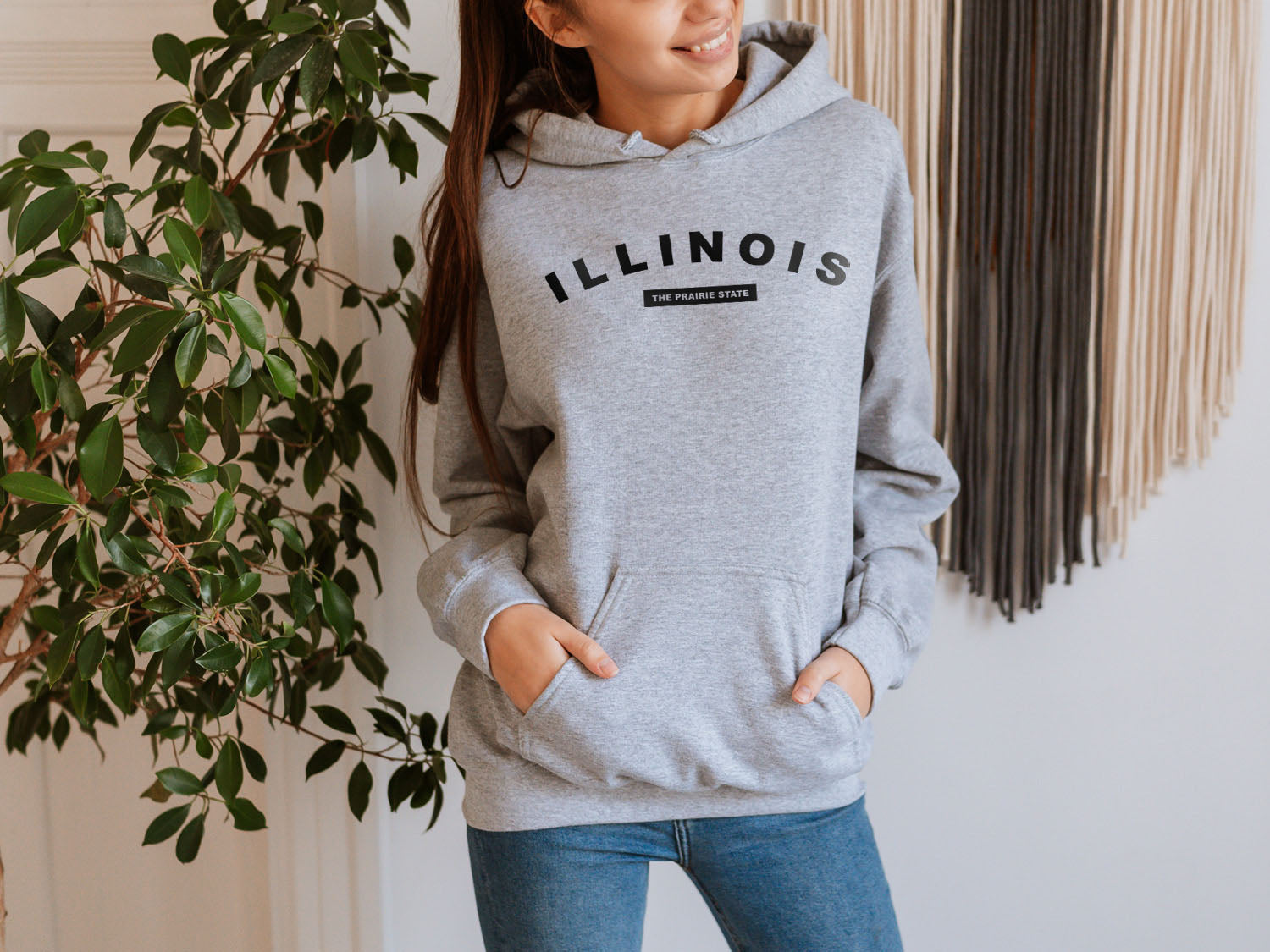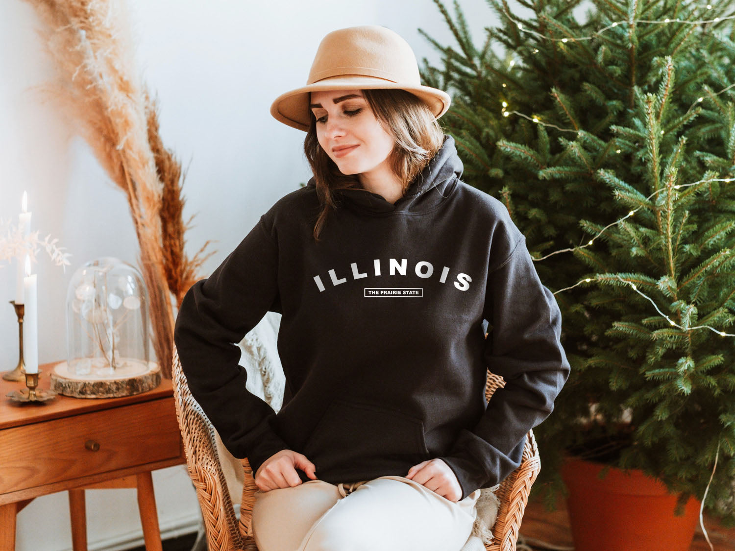Illinois The Prairie State Hoodie - United States Name & Slogan Minimal Design Printed Hoodie
