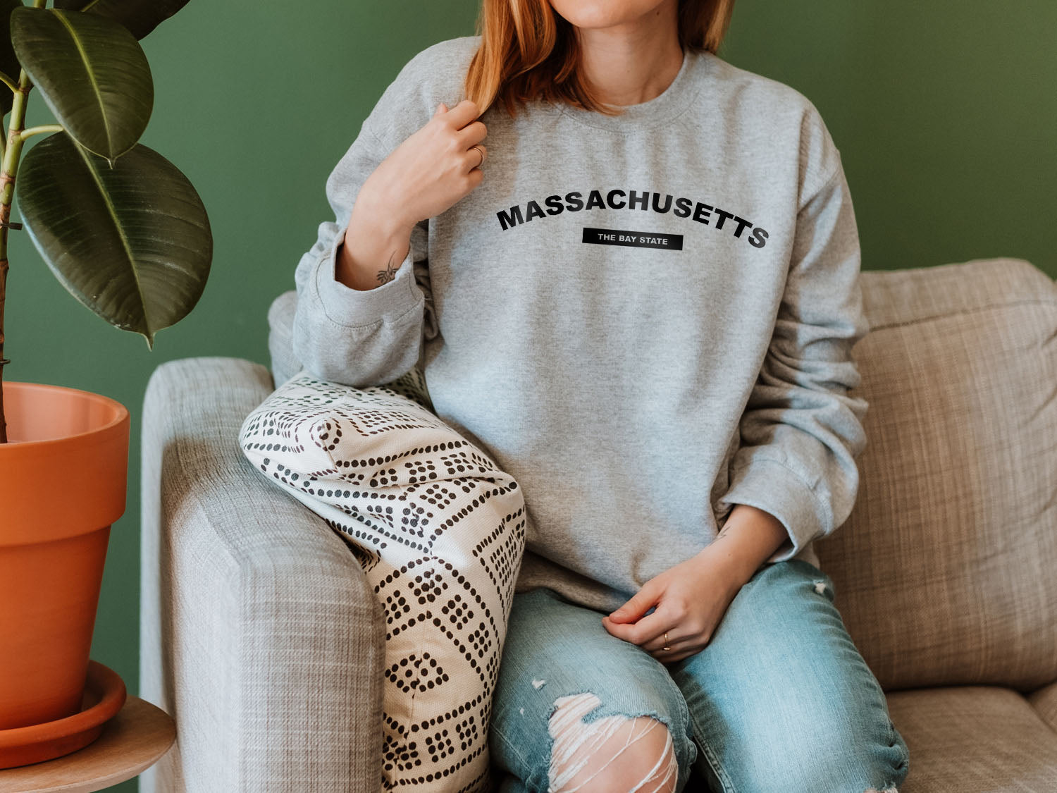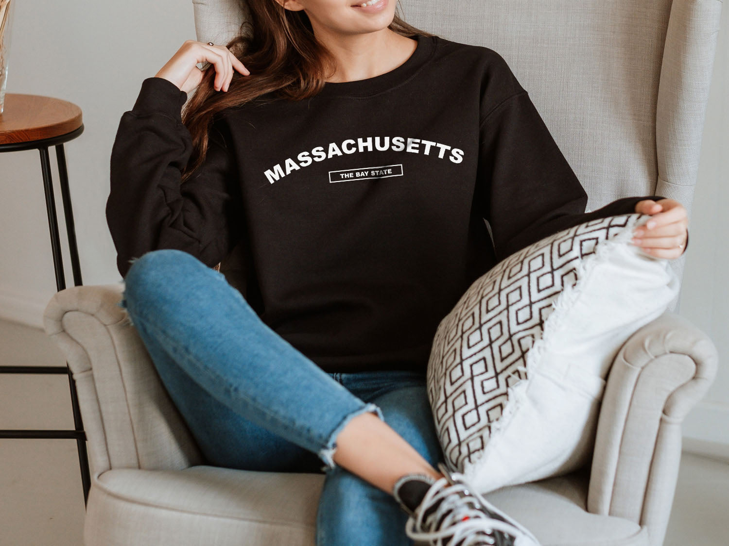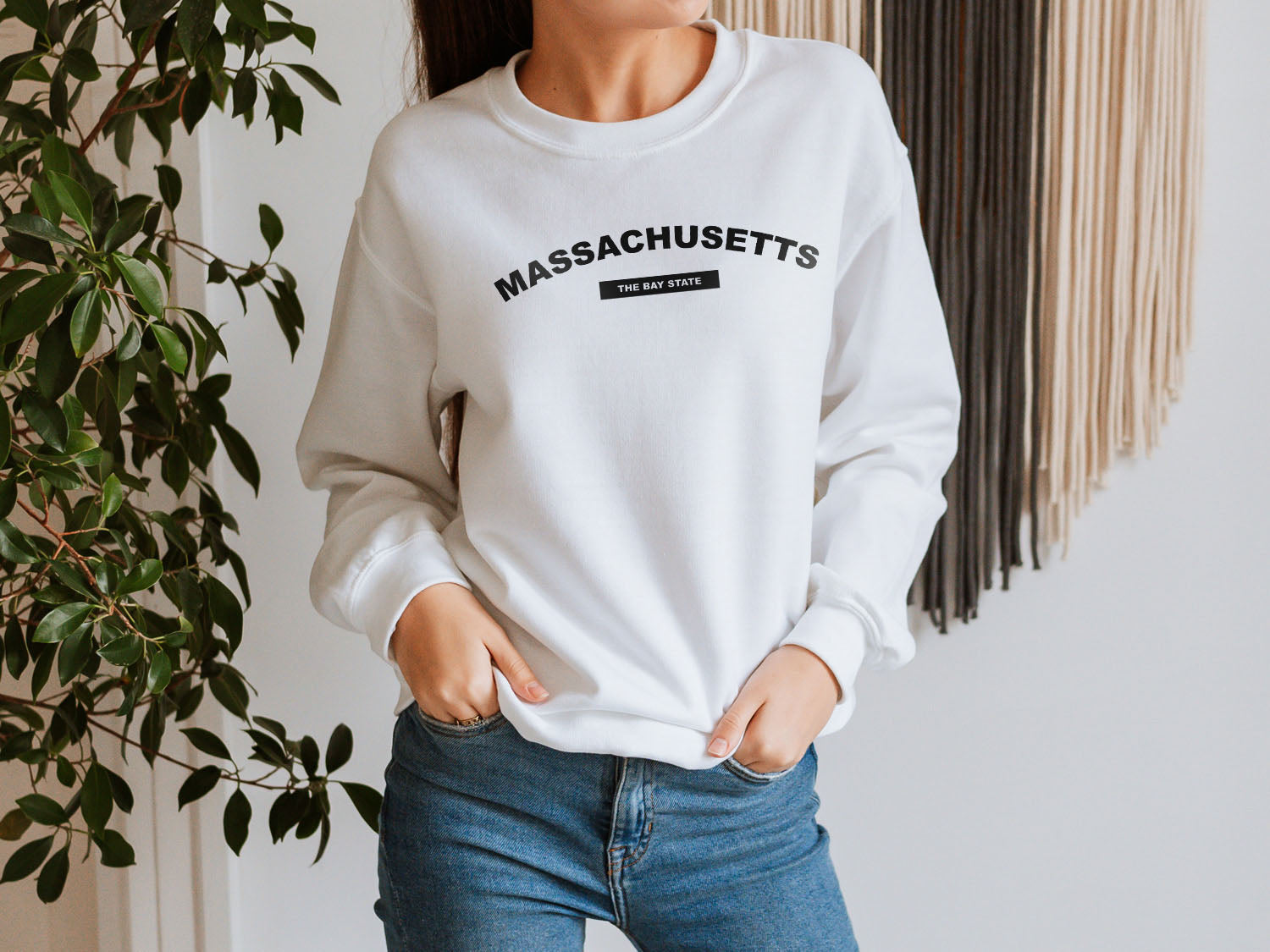 Massachusetts The Bay State Sweatshirt - United States Name & Slogan Minimal Design Printed Sweatshirt