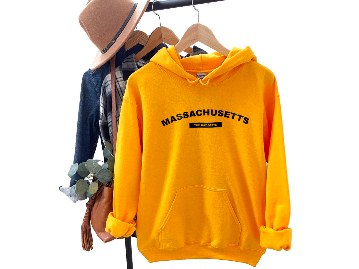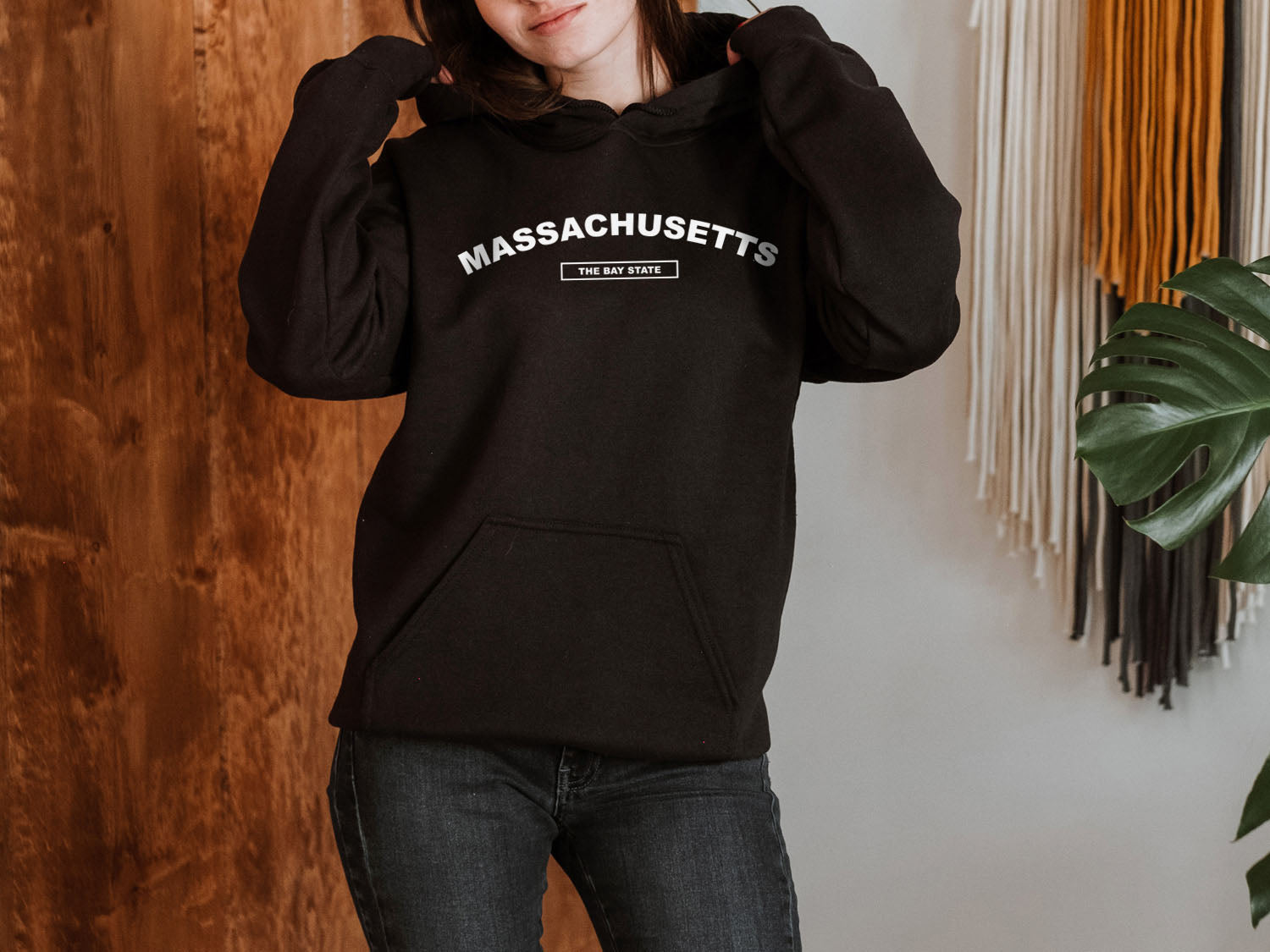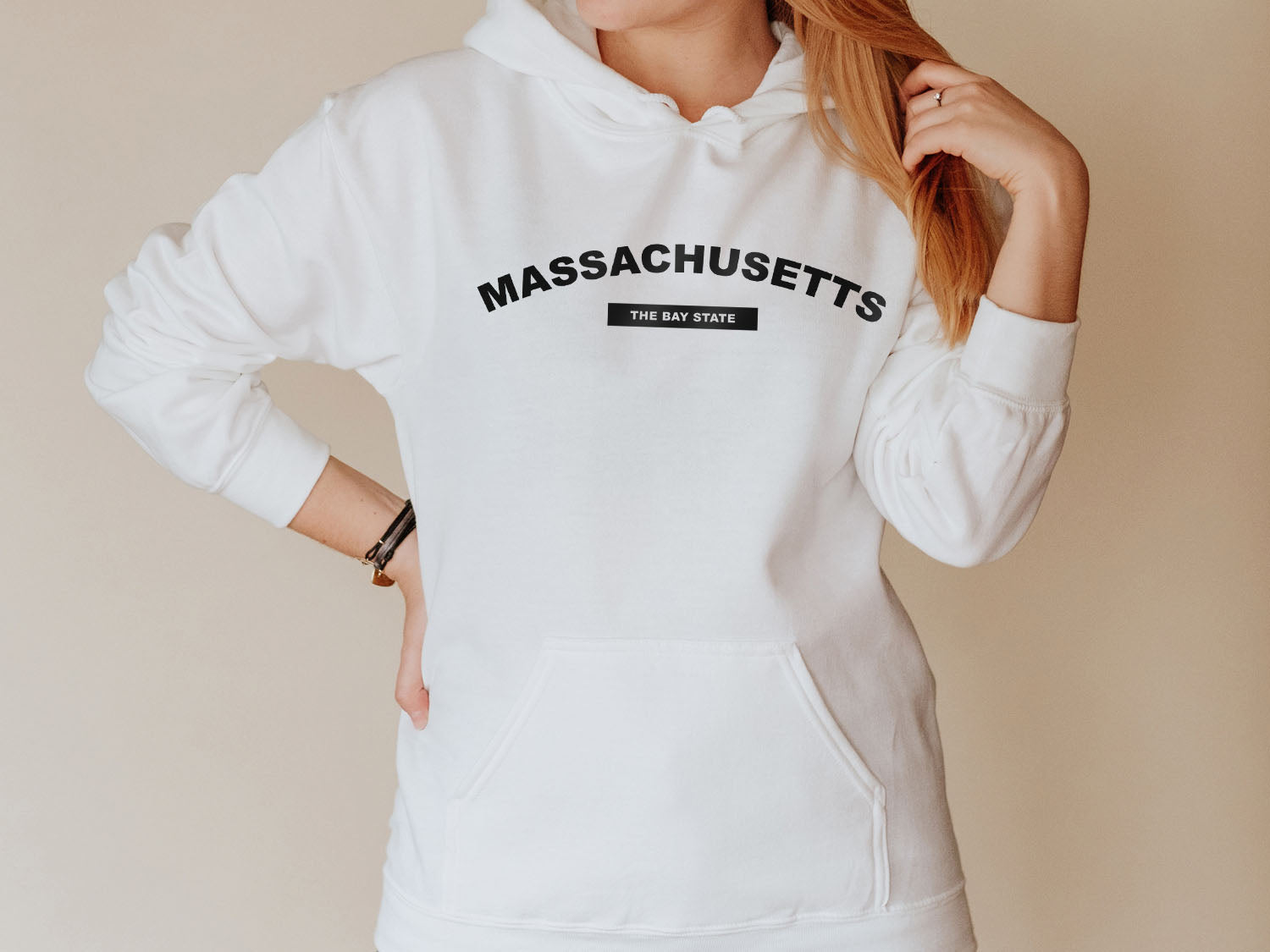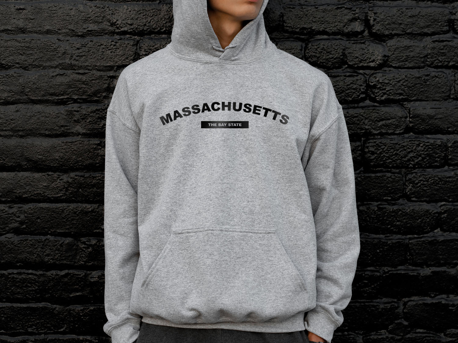 Massachusetts The Bay State Hoodie - United States Name & Slogan Minimal Design Printed Hoodie