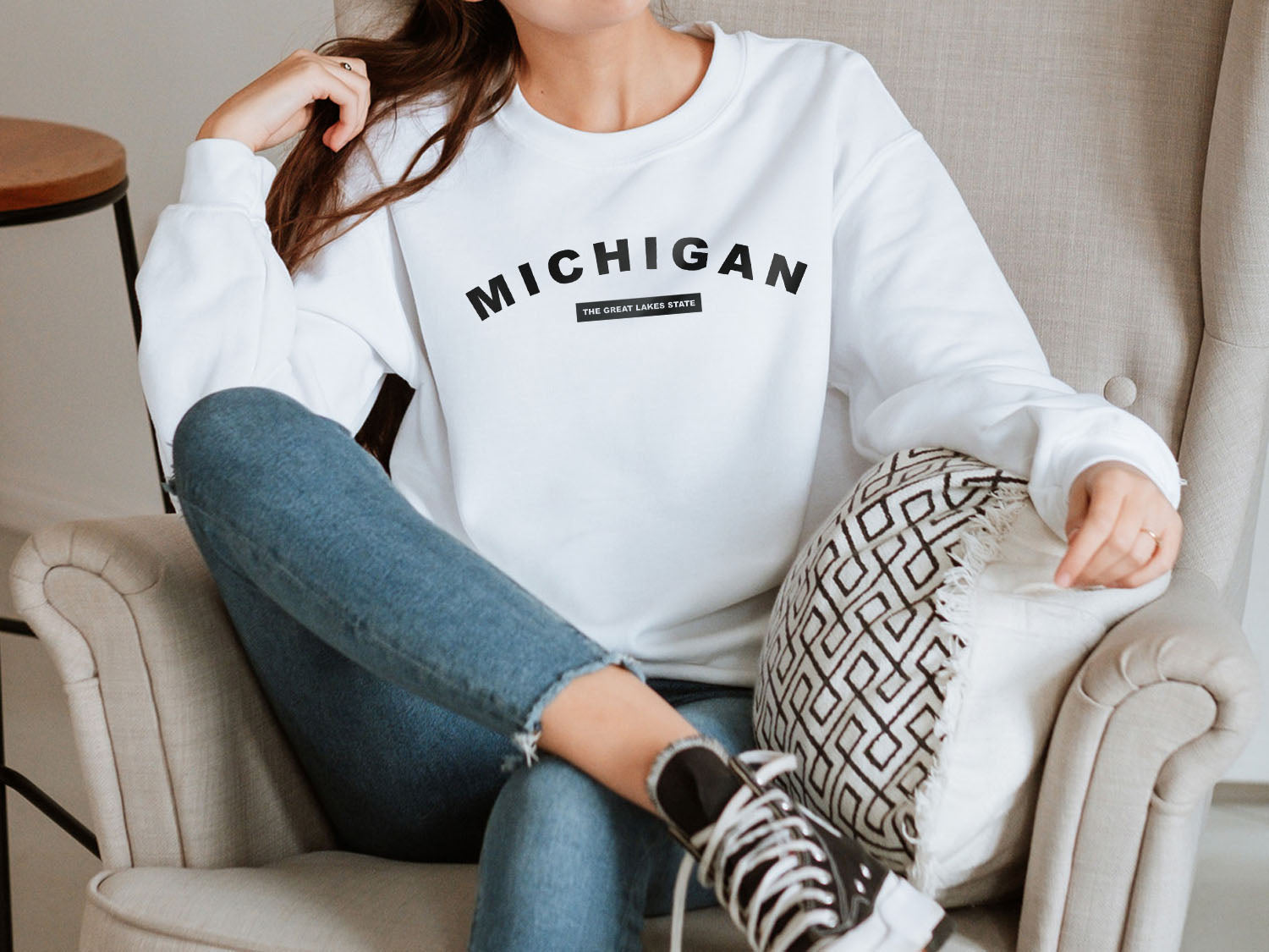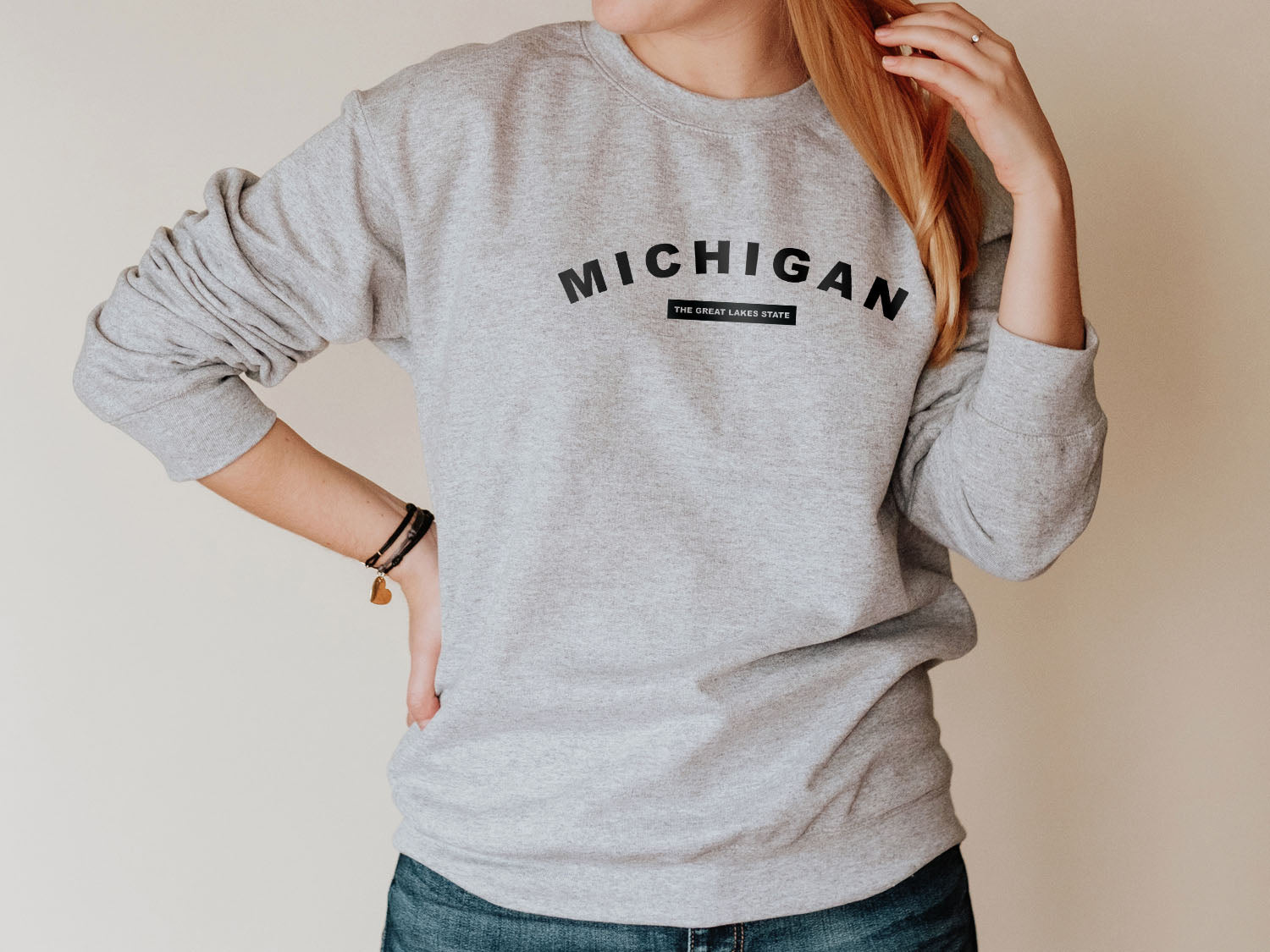 Michigan The Great Lakes State Sweatshirt - United States Name & Slogan Minimal Design Printed Sweatshirt