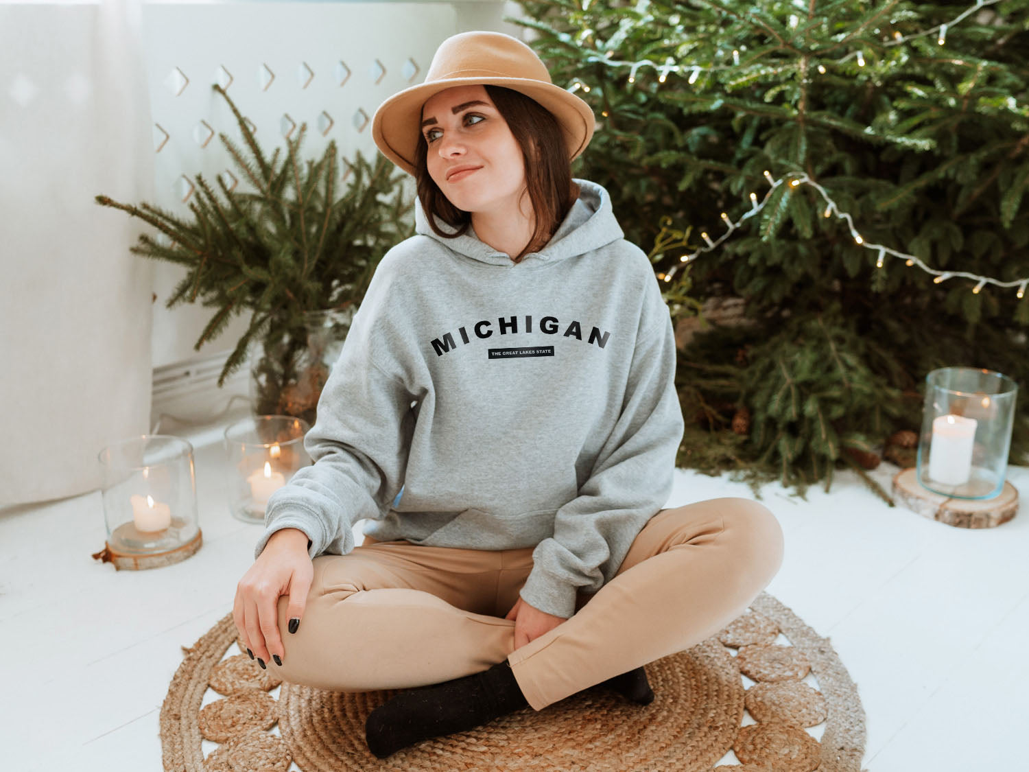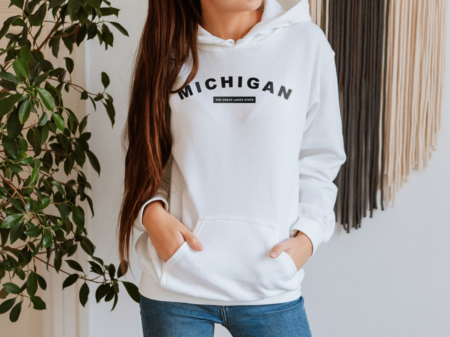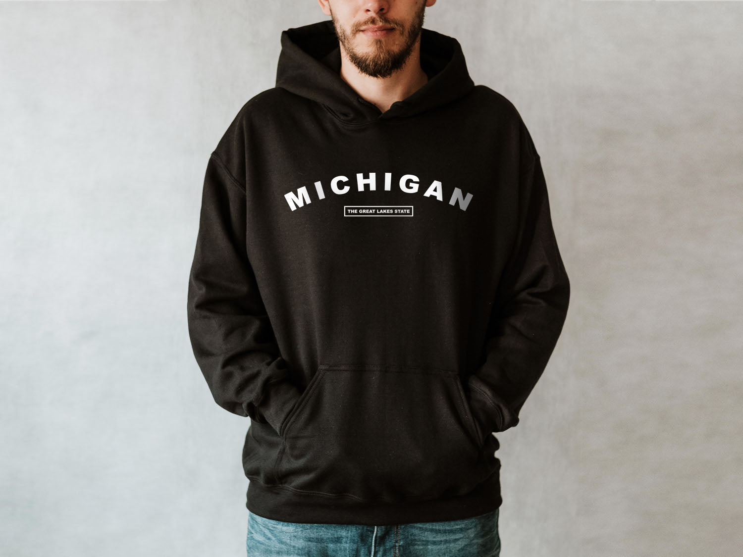 Michigan The Great Lakes State Hoodie - United States Name & Slogan Minimal Design Printed Hoodie