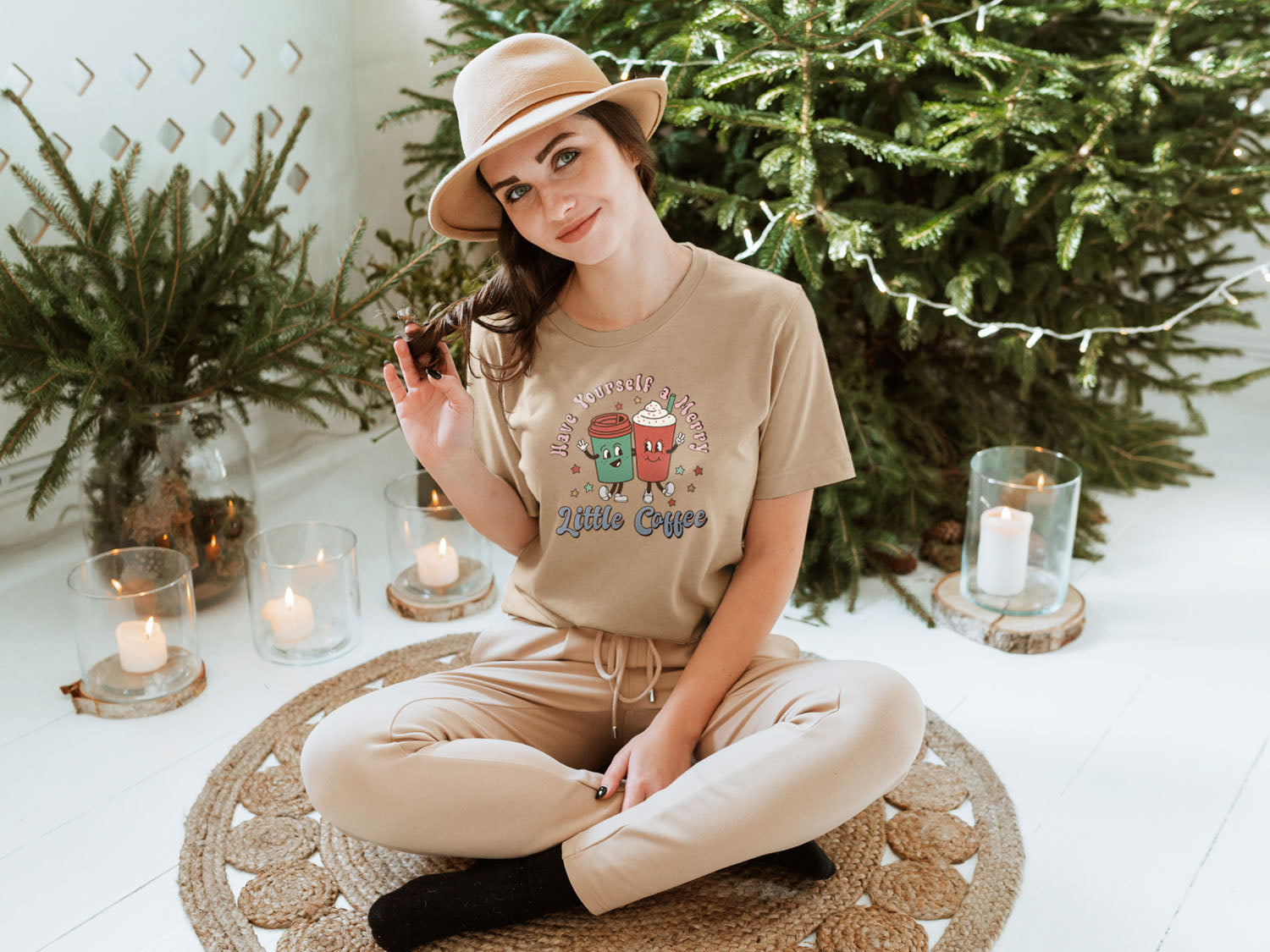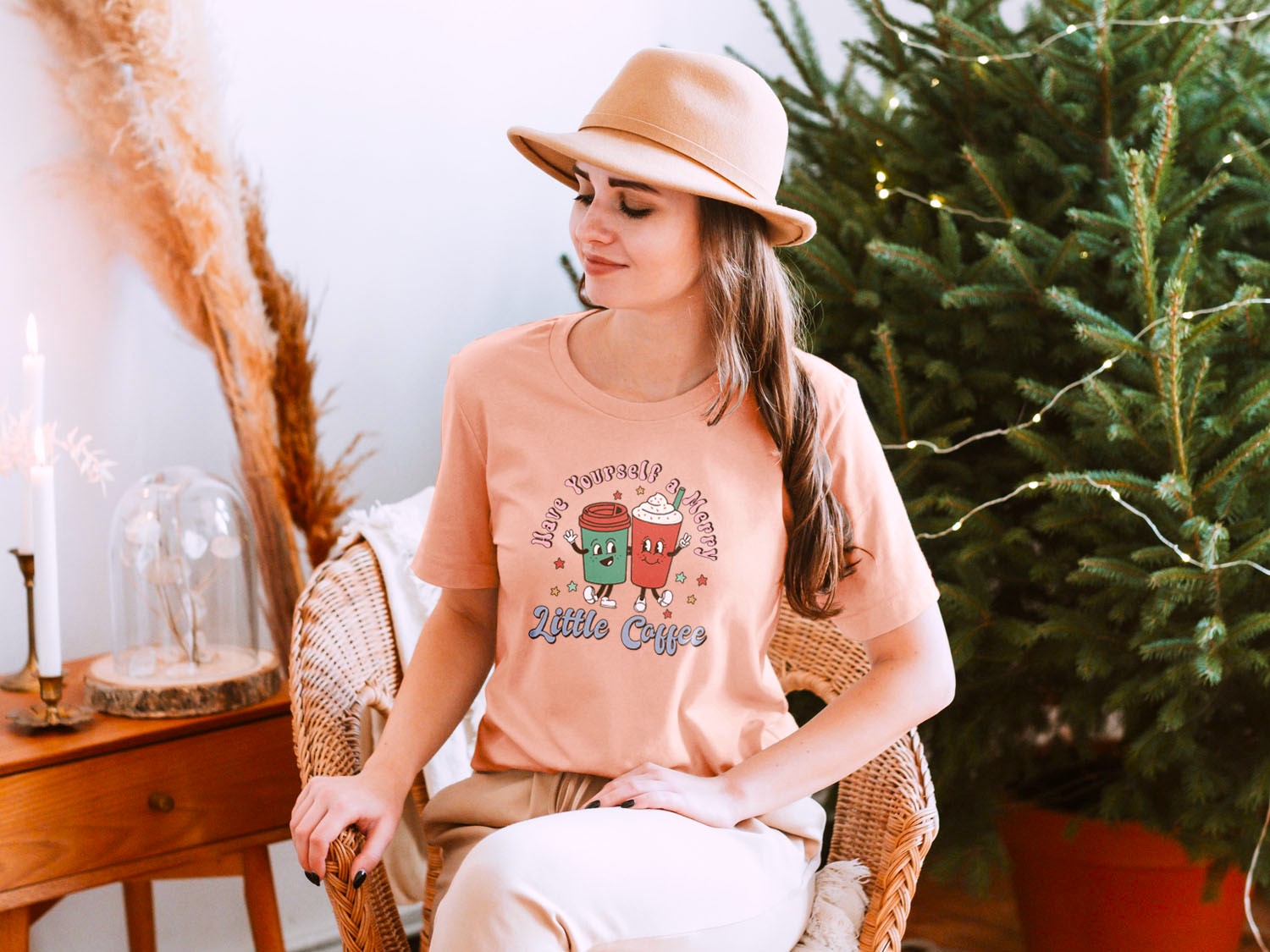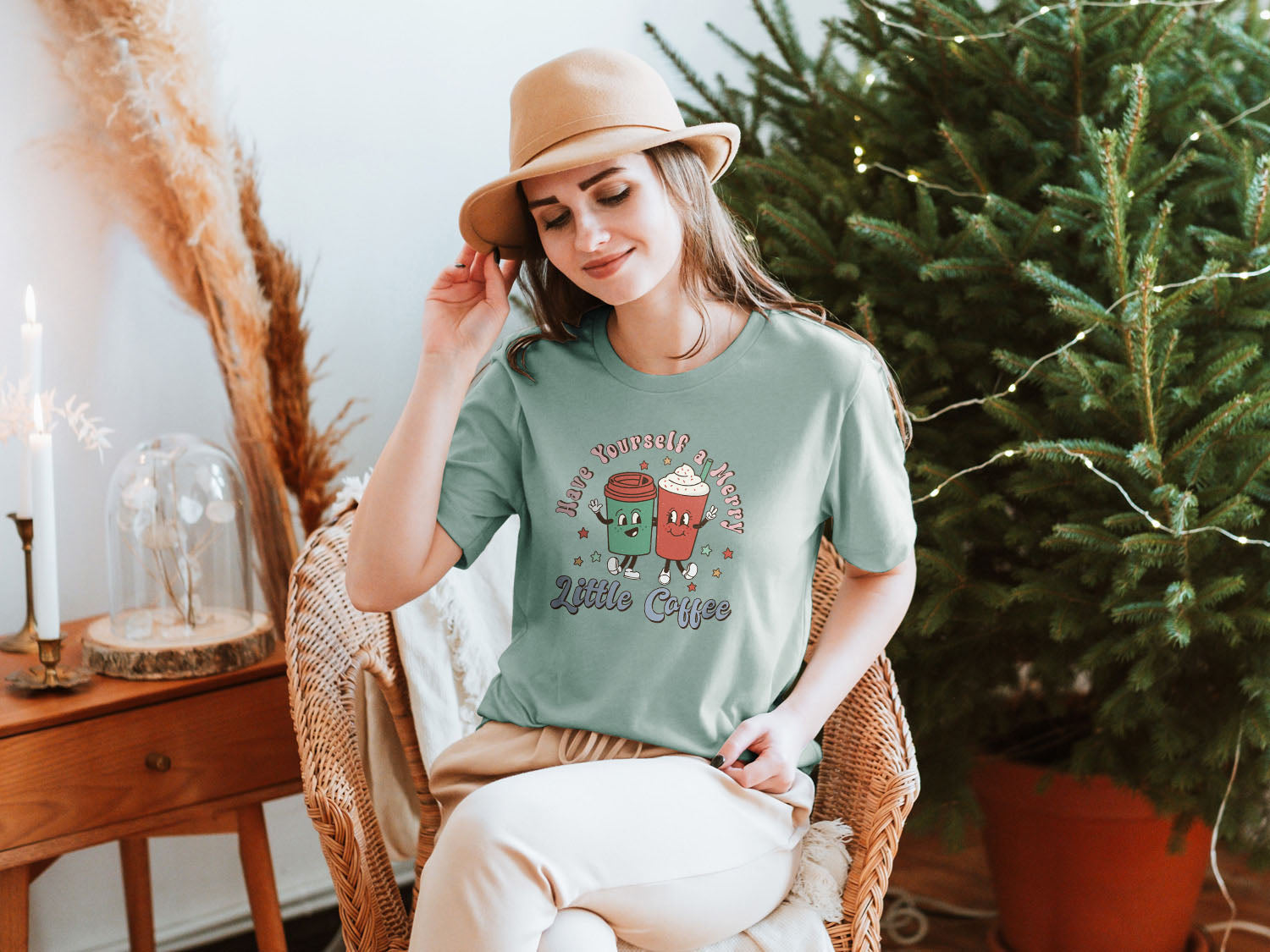 Have Yourself A Merry Little Coffee T-shirt - Christmas Winter Retro Vintage Design Printed Tee Shirt