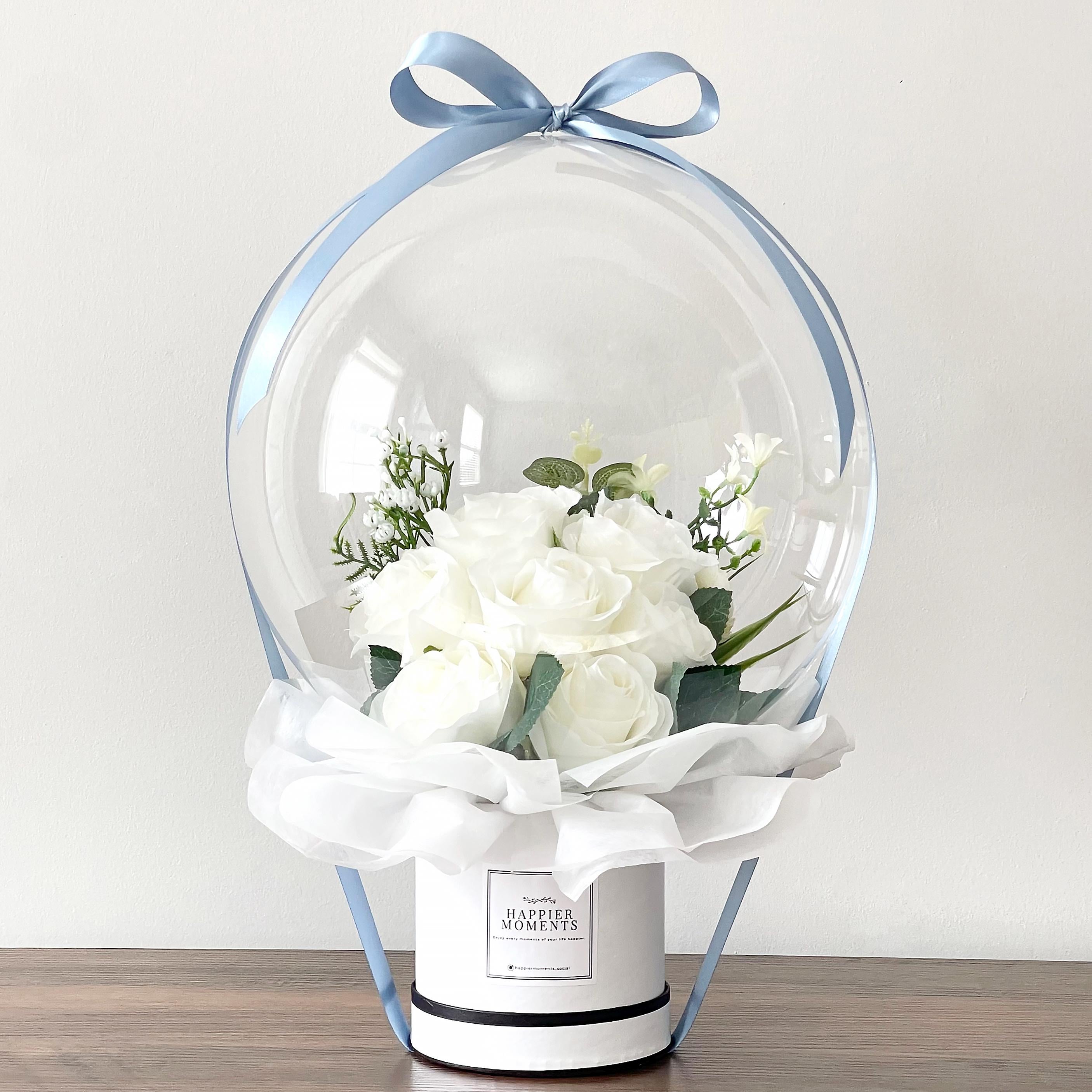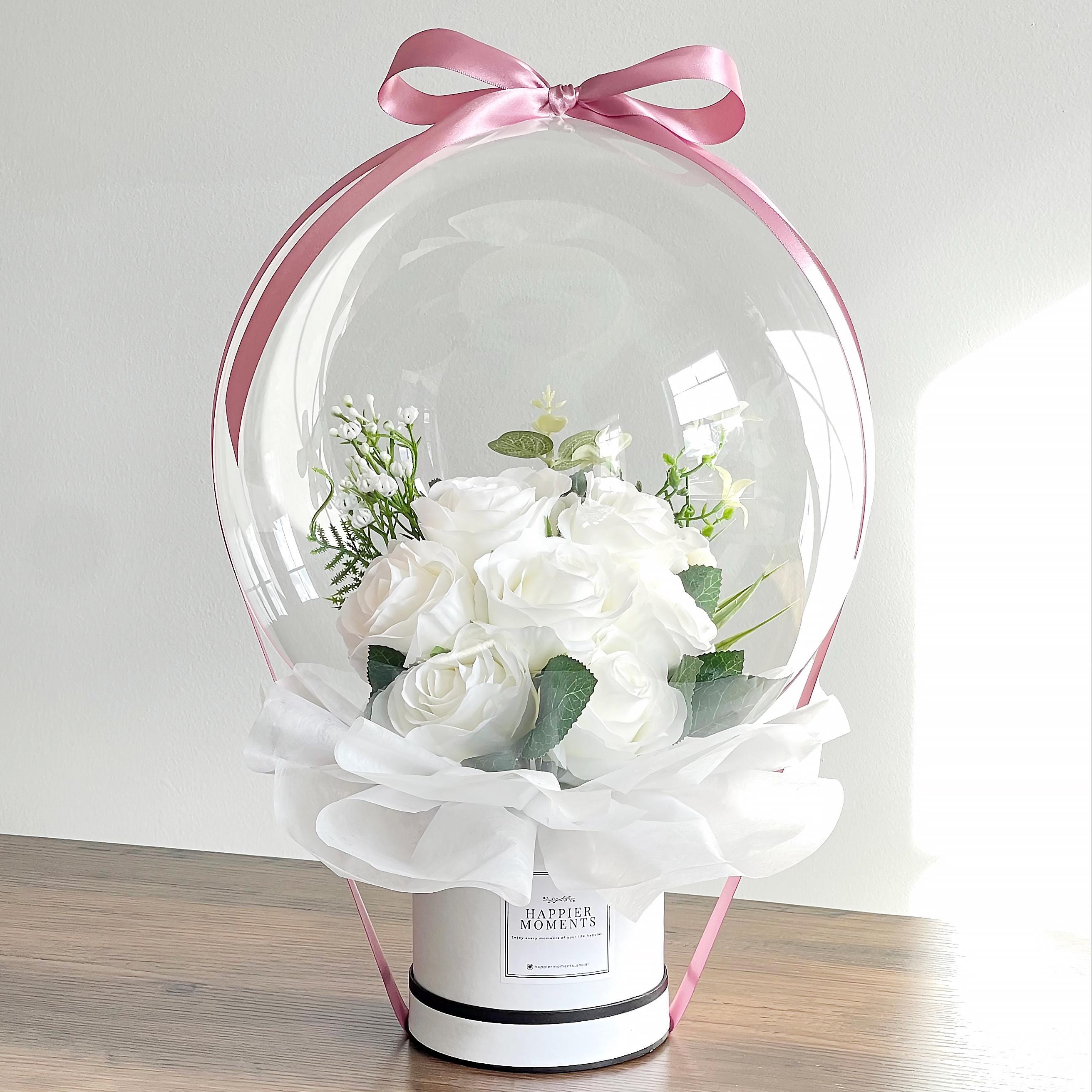White Assorted Flower Balloon Bouquet Gift Box | Birthday Mother's Day Valentine's Day Bridal Shower Baby Shower Anniversary Gift