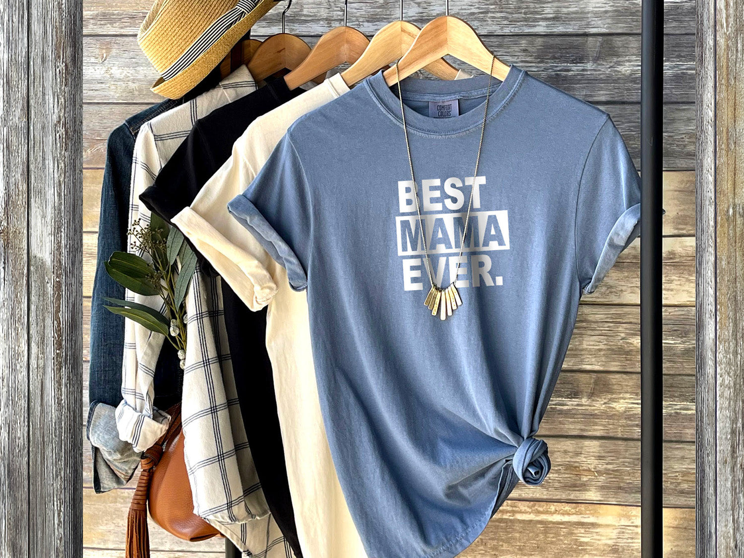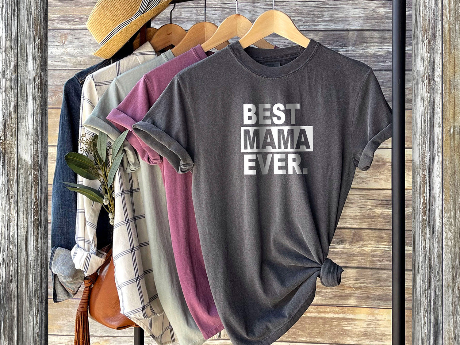 Best Mama Ever T-Shirt - Minimalistic Mother Design Printed Garment Dyed Heavyweight Short Sleeve T-Shirt