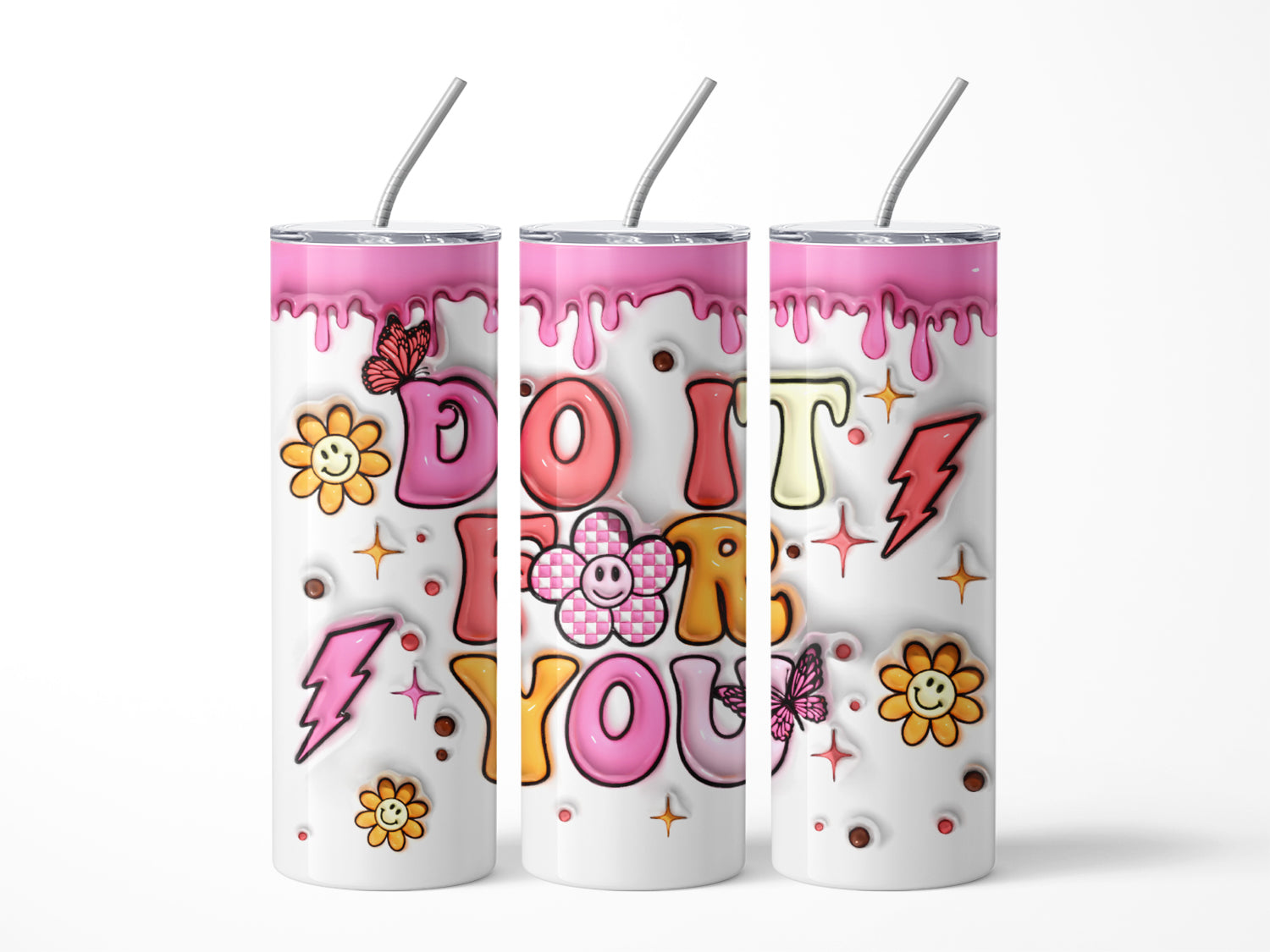 - Do It For You Tumbler - Fun Relax Motivation 3D Inflated Look Design Sublimated 20 oz Stainless Steel Tumbler with Straw.