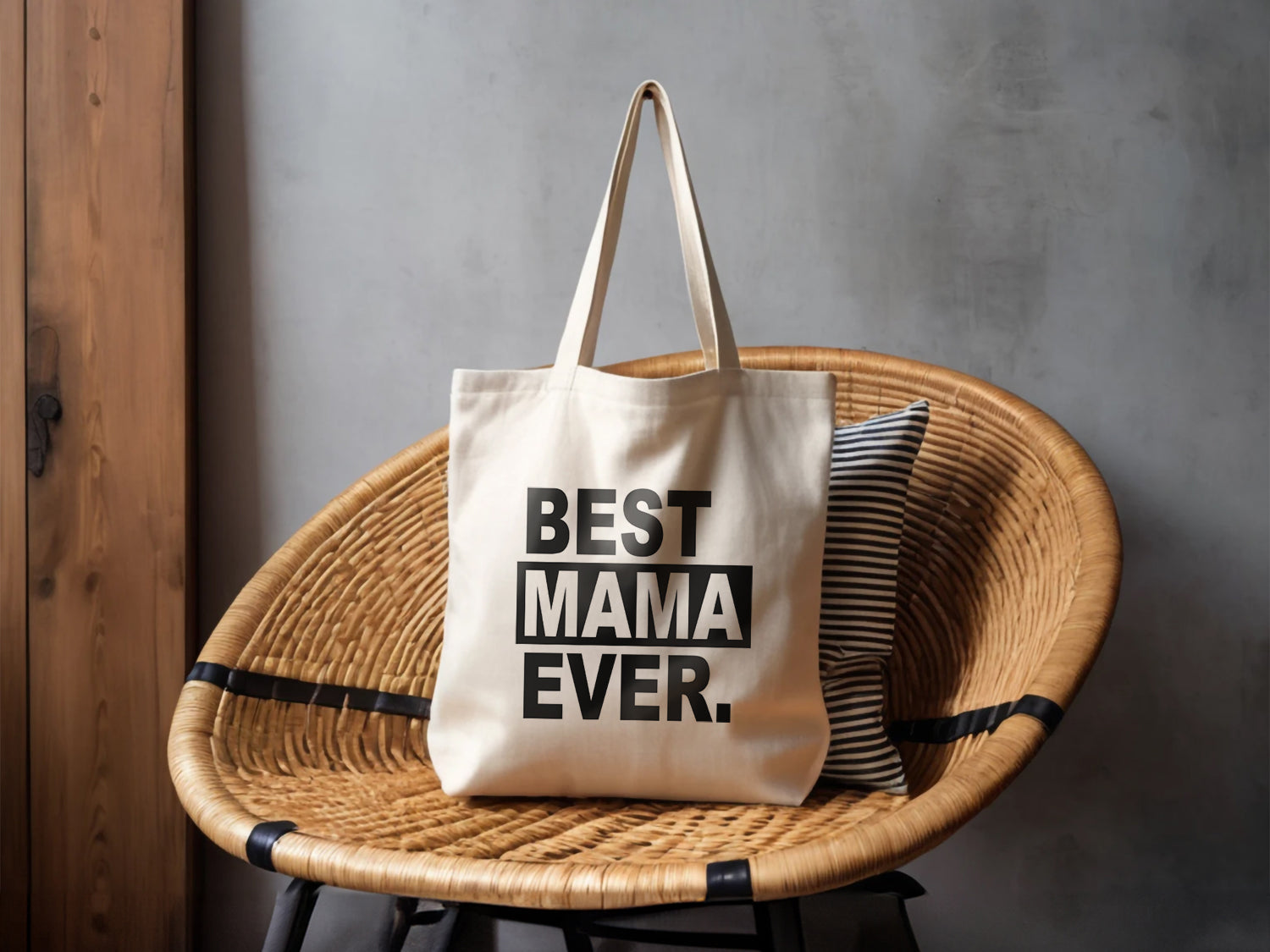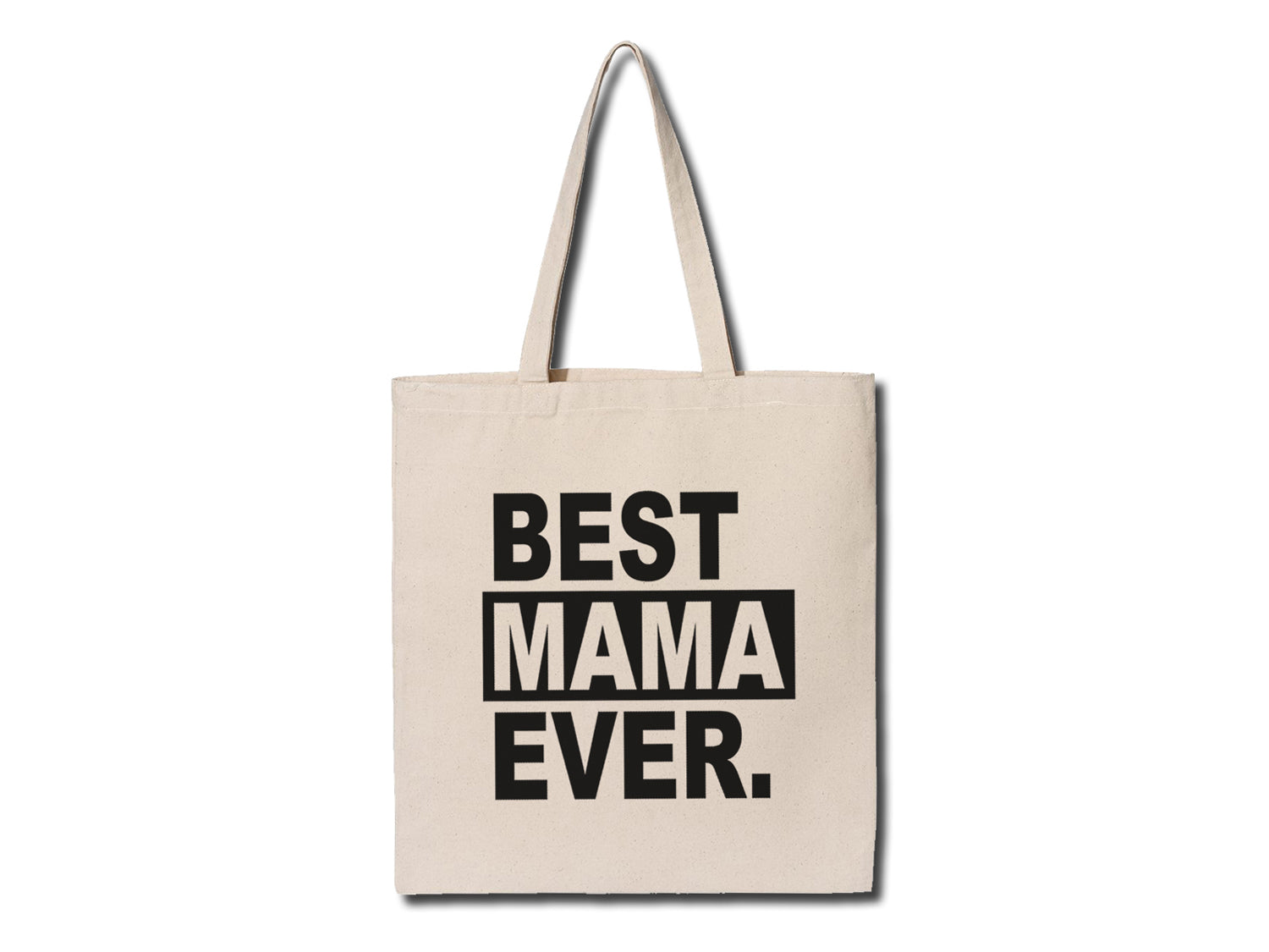 - Best Mama Ever Cotton Natural Canvas Tote Bag - Minimalistic Mother Design Printed Tote Bag