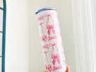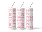Pink Coquette Bows Tumbler - Trendy Coquette Pink Bows Girly Ribbon Design Sublimated 20 oz Stainless Steel Tumbler with Straw