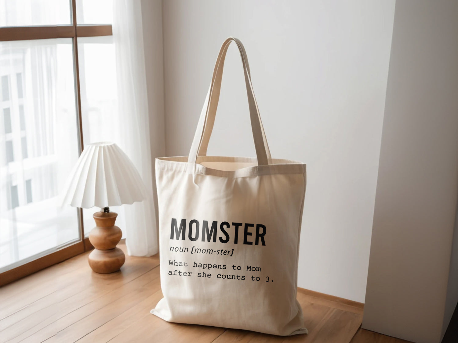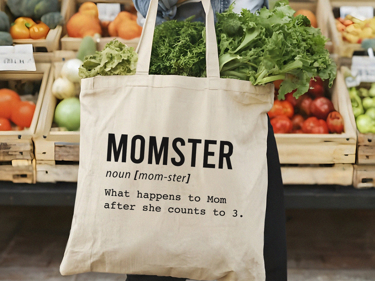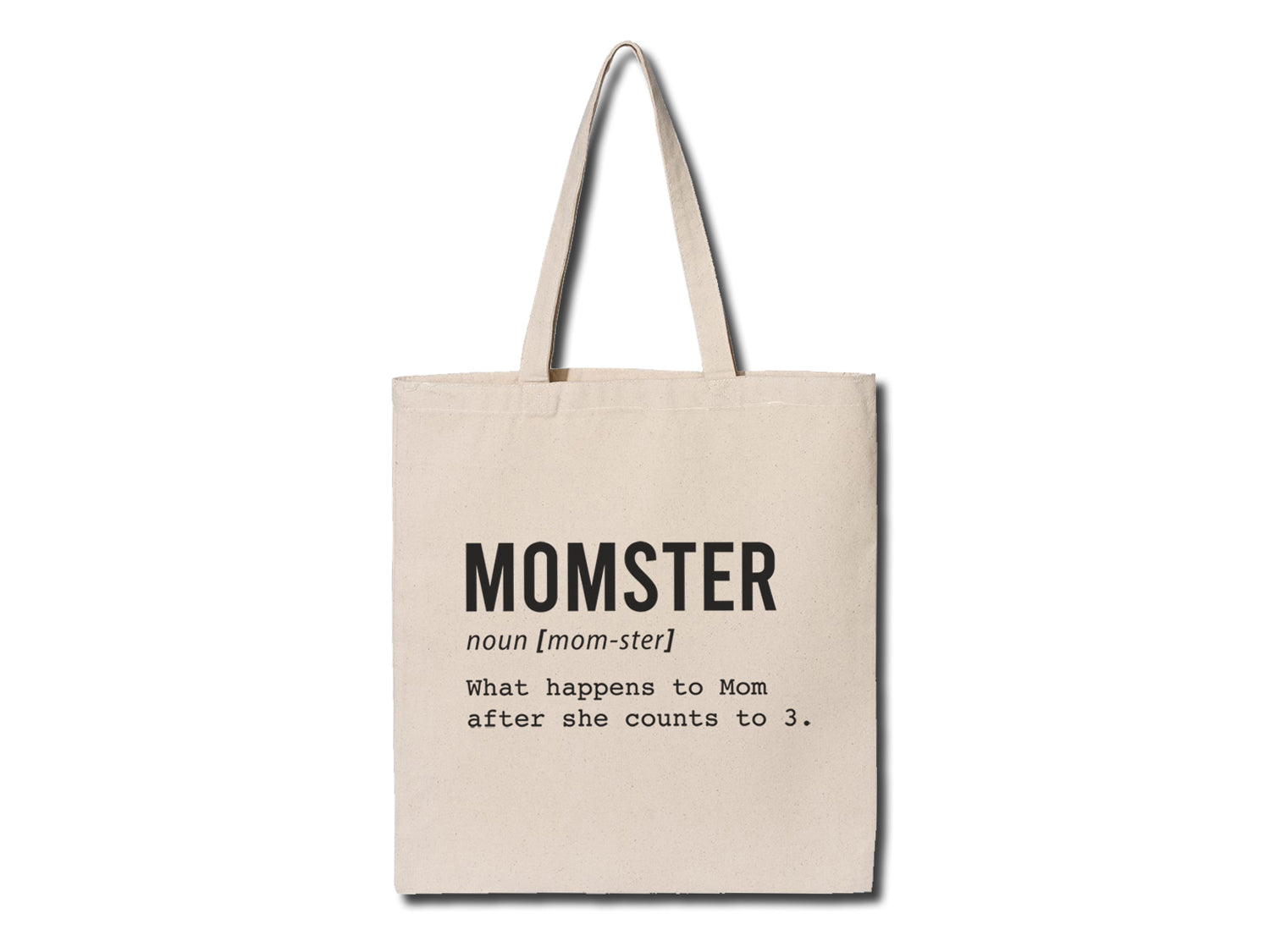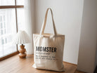 - Funny Definition of Momster Cotton Natural Canvas Tote Bag - Funny Family Retro Vintage Design Printed Tote Bag