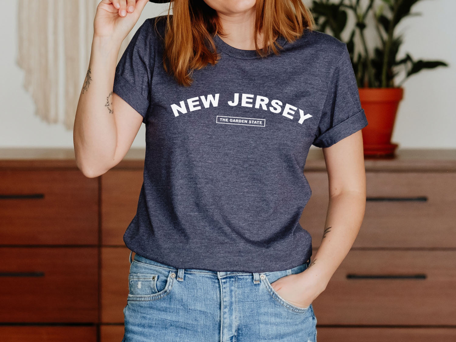 - New Jersey The Garden State T-shirt - United States Name & Slogan Minimal Design Printed Tee Shirt.