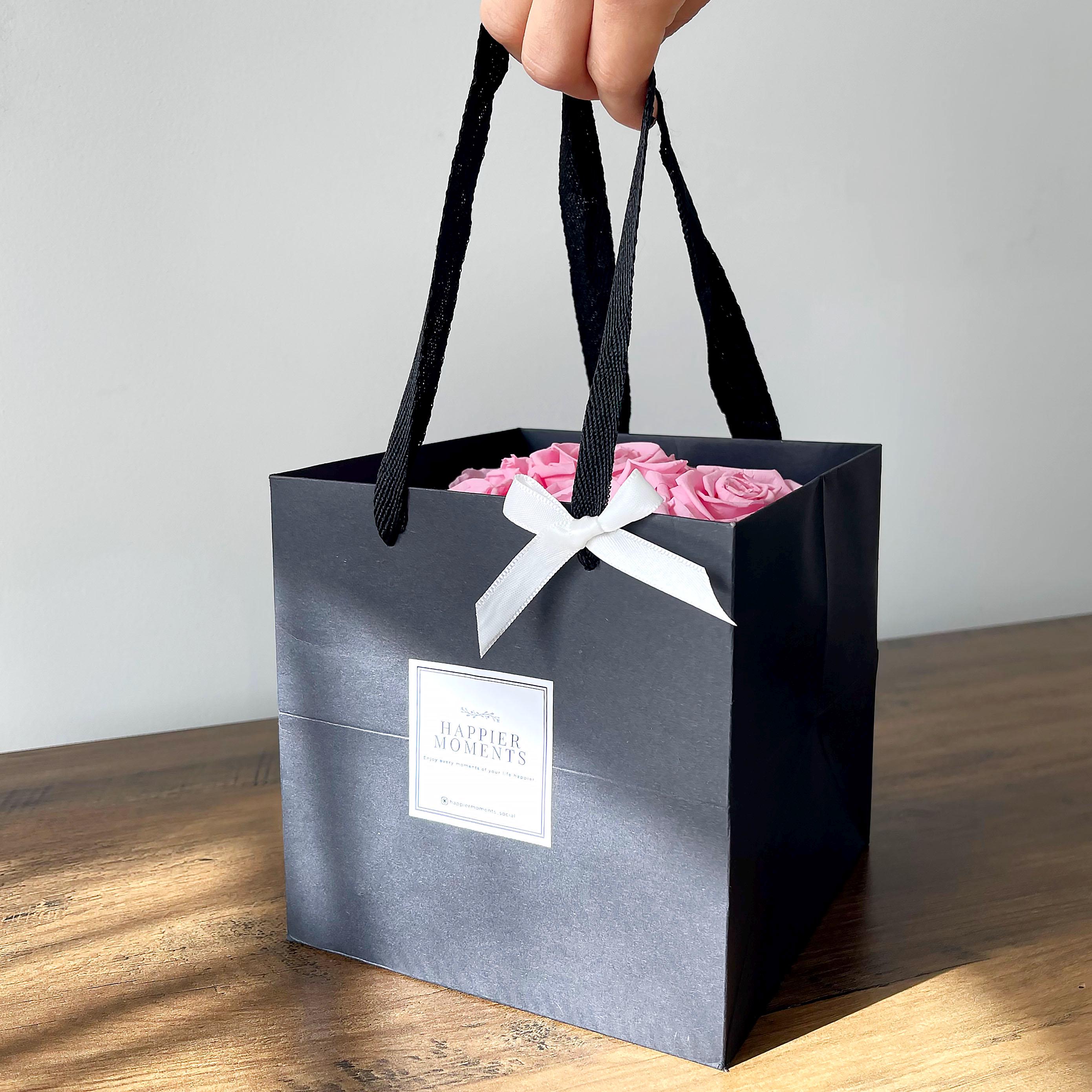 6 Red Preserved Roses Personalized Message Black Round Gift Box | Eternity Roses Birthday Mother's Day Valentine's Day Anniversary Bride Engagement Friends