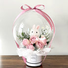 ➼ Bunny Plush, Artificial Flowers, Clear Balloon, Silky Ribbon, Round Gift Box, Tissue Papers