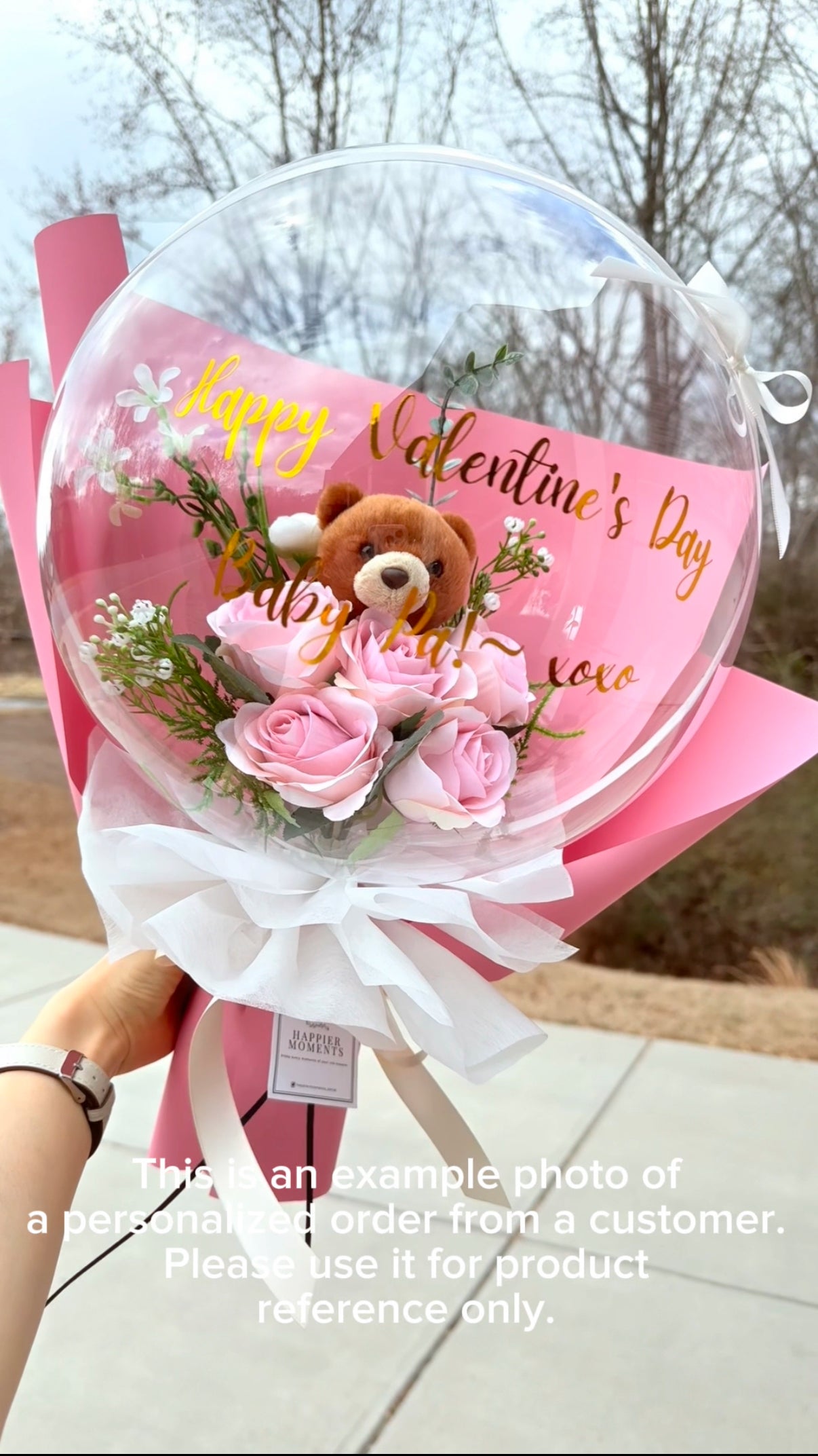 Teddy Bear Pink Rose Flower Balloon Bouquet Pink Flower Wrapping paper | Birthday Mother's Day Valentine's Anniversary Graduation Gift