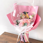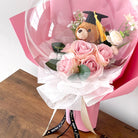 Graduation Teddy Bear Pink Rose Flower Balloon Bouquet Pink Wrapping paper