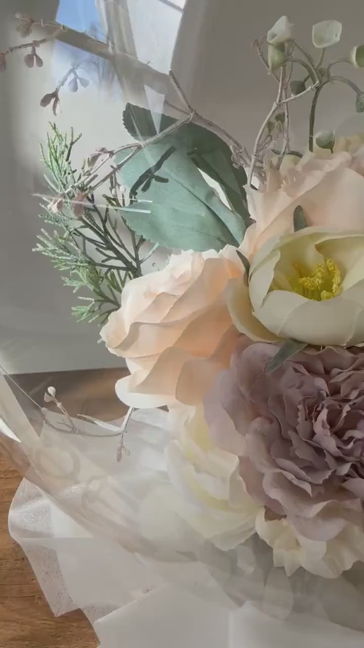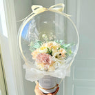 ➼ Artificial Flowers, Clear Balloon, Silky Ribbon, Round Gift Box, Tissue Papers
