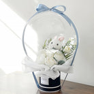 Bunny White Rose Flower Bobo Balloon Bouquet Black Box Blue Ribbon | Birthday Valentine's Day Bridal Baby Shower Anniversary Gift