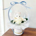 ➼ Bunny Plush, Artificial Flowers, Clear Balloon, Silky Ribbon, Round Gift Box, Tissue Papers