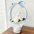 Mini Bunny White Rose Flower Bobo Balloon Bouquet White Box