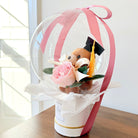 Mini Graduation Teddy Bear Pink Rose Flower Bobo Balloon Bouquet White Box