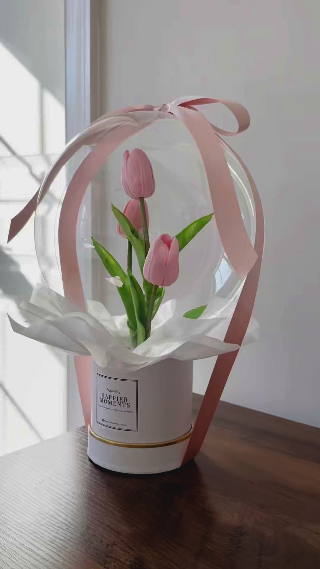 Mini Pink Tulip Flower Bobo Balloon Bouquet White Box