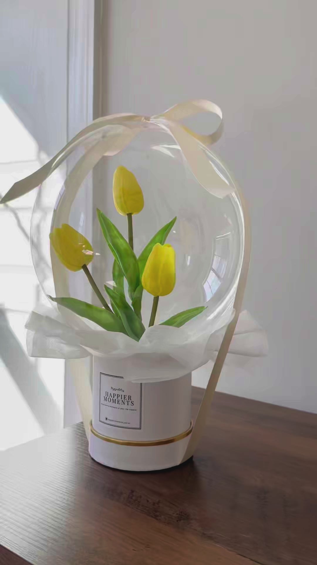 Mini Yellow Tulip Flower Bobo Balloon Bouquet White Box | Birthday Mother's Day Valentine's Day Bridal Shower Baby Shower Anniversary Gift
